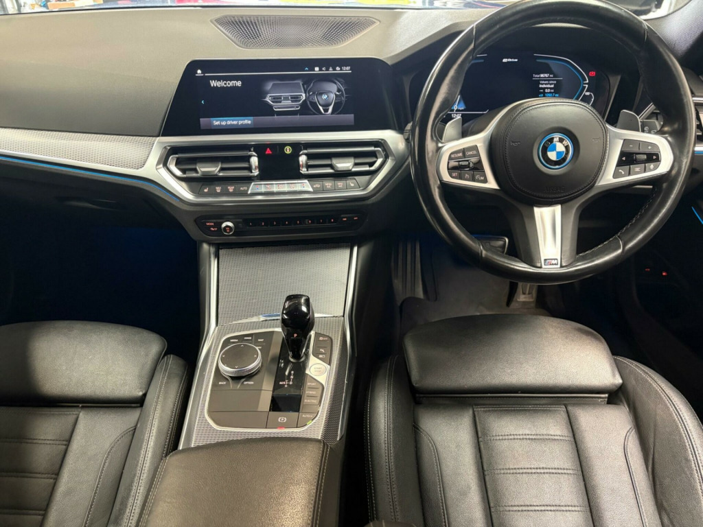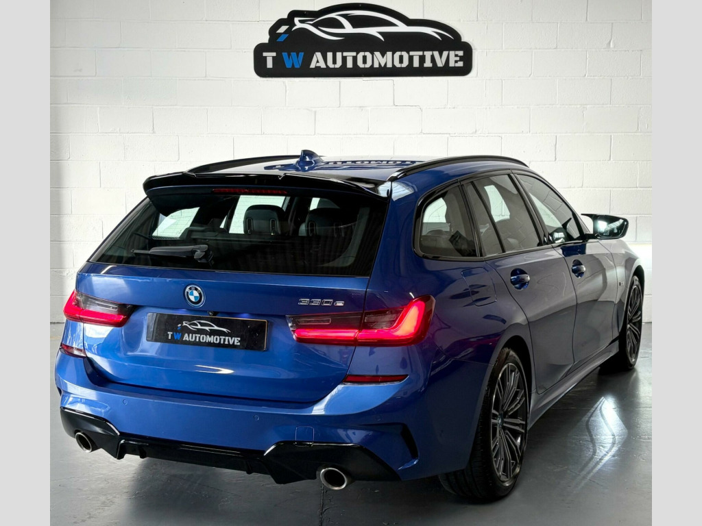 BMW 3 Series 2.0 330e M Sport finished in stunning Portimao blue metallic, comes with 19inch alloys and good tyres all round. Our example is only one owner from new and boasts a full and upto date service history including 3services and will also be serviced before sale. In great condition throughout and has a high specification including navigation system, heated seats, cruise control, park assist, reverse camera plus more! Really does stand out with added body styling including M Performance gloss black splitter and rear diffuser, gloss black kidney grills and mirror caps. Definitely one to be seen and driven to be appreciated! MOT EXPIRY 22/08/2026, ALL MAJOR DEBIT AND CREDIT CARDS ACCEPTED v power socket in front storage compartment, 18in alloy wheels - m light double-spoke style 790 m - bicolour orbit grey, acoustic glazing, active air stream kidney grille, active guard plus, air conditioning - automatic with three-zone, airbags, alarm system - thatcham 1 with remote control and electronic engine immobiliser, ambient lighting with welcome light carpet, armrest - integrated in door trim front and rear and in front on the centre console, armrest - rear centre with two cupholders, attentiveness assistant, automatically dimming rear view mirror, bmw connected package professional, bmw connecteddrive online services, bmw emergency call, bmw individual roof rails high-gloss shadow line, bmw live cockpit professional, bmw mobility system, bmw teleservices, balanced 50-50 weight distribution, battery safety cut-off in the event of an accident, bluetooth hands free with usb audio interface, brake pad wear indicator - front and rear, bumper system - front and rear, central locking switch - doors - fuel filler cap - luggage compartment, centre console rear storage compartment - ventilation grille, check control warning system for monitoring of lights and door-luggage compartment open warning, child proof locking system - rear doors, child seat isofix attachment - rear, condition based service, crash sensor, cruise control with brake function, cup holders in centre console - front - 2 cupholder inserts with clamping elements - inlay matt black, dab digital radio, dsc - dynamic stability control plus, door pockets - front and rear, door sill finishers - aluminium inserts in the front - brushed with bmw designation, drive performance control, driving experience modes, dynamic brake lights, eps - electric power steering, electric windows - front and rear, electro mechanical parking brake, exhaust tailpipes - split left and right - 90mm diameter, exterior mirrors - electrically folding with anti dazzle, exterior parts in body colour, exterior trim - high-gloss shadowline, first aid kit and warning triangle, floor mats - velour - front and rear, glove compartment - illuminated - with separate small compartment, grab handles - integrated in roof lining x4, headlights - adaptive led, headlining - anthracite, heat protection glazing with green tint, instrument cluster, interior lighting, interior trim - aluminium tetragon, led fog lights - front, lashing eyes in luggage compartment x4, luggage compartment - light, m aerodynamics package, m designation on front side panel - left and right, m leather steering wheel, m sport package, model designation on tailgate - right, obc - on-board computer, oil sensor for level and grade - warning by check control system, optimum shift indicator, pdc - park distance control - front and rear, parking assistant, personal profile, preparation for high-beam assistant, rain sensor with automatic headlight activation, rear lights - led, rear seats, remote control - including integrated key, roof mouldings - body colour, seat belt security check for driver and front passenger, seat heating for driver and front passenger, servotronic steering, shark fin aerial, side impact protection, split folding rear seat, sport seats - front, start-stop button with keyless engine start and auto start-stop deactivation button, steering column mechanically and infinitely variably adjustable in height, stereo speaker system, stroke-dependent dampers, sun visors with vanity mirrors and ticket holder, tpms - tyre pressure monitoring system, three-point seat belts - all seats, through-loading system, tool kit located in luggage compartment, two tone horn, tyres - reduced rolling resistance, vehicle key with m-specific designation, visible vin, welcome light, windscreen wipers - with integrated washing jets, idrive controller, vernasca leather - black with grey stitching