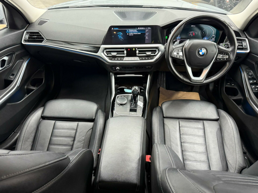 This 2021 BMW 3 Series 330e Sport Pro is a superb example, having had only one owner since new. It features a 2.0 litre petrol plug in hybrid engine, meeting Euro 6 emission standards. The Sport Pro trim enhances its appeal, and you'll appreciate the convenience of Enhanced Bluetooth with Wireless Charging, Lumbar Support for both driver and front passenger, and the Rain Sensor with Automatic Headlight Activation. Parking is made easier with PDC Park Distance Control for both the front and rear, while the Adaptive LED headlights provide excellent visibility.The performance of this 330e Sport Pro is truly impressive, achieving 0-62mph in just 5.9 seconds. This swift acceleration, combined with its plug in hybrid technology, offers a more dynamic and efficient driving experience compared to many other vehicles in its class. The inclusion of features like wireless phone charging and automatic headlight activation further elevates its practicality and modern appeal. hanced bluetooth with wireless charging, sun protection glazing, lumbar support - driver and front passenger, vernasca leather - black with grey stitching, 12v power socket in front storage compartment, 18in alloy wheels - light v-spoke style 780 bicolour orbit grey, acoustic glazing, active air stream kidney grille, active guard plus, air conditioning - automatic with three-zone, airbags, alarm system - thatcham 1 with remote control and electronic engine immobiliser, ambient lighting with welcome light carpet, armrest - integrated in door trim front and rear and in front on the centre console, armrest - rear centre with two cupholders, attentiveness assistant, automatically dimming rear view mirror, bmw connected package professional, bmw connecteddrive online services, bmw emergency call, bmw individual roof rails high-gloss shadow line, bmw live cockpit professional, bmw mobility system, bmw teleservices, balanced 50-50 weight distribution, battery safety cut-off in the event of an accident, bluetooth hands free with usb audio interface, brake pad wear indicator - front and rear, bumper system - front and rear, central locking switch - doors - fuel filler cap - luggage compartment, centre console rear storage compartment - ventilation grille, check control warning system for monitoring of lights and door-luggage compartment open warning, child proof locking system - rear doors, child seat isofix attachment - rear, condition based service, crash sensor, cruise control with brake function, cup holders in centre console - front - 2 cupholder inserts with clamping elements - inlay matt black, dab digital radio, dsc - dynamic stability control plus, door pockets - front and rear, door sill finishers - aluminium inserts in the front - brushed with bmw designation, drive performance control, driving experience modes, dynamic brake lights, eps - electric power steering, electric windows - front and rear, electro mechanical parking brake, exhaust tailpipes - split left and right - 90mm diameter, exterior mirrors - electrically folding with anti dazzle, exterior parts in body colour, exterior trim - high-gloss shadowline, first aid kit and warning triangle, floor mats - velour - front and rear, front bumper with specific design elements in black high-gloss, glove compartment - illuminated - with separate small compartment, grab handles - integrated in roof lining x4, headlights - adaptive led, heat protection glazing with green tint, instrument cluster, interior lighting, interior trim - black high gloss, interior trim - high-gloss black with pearl chrome finisher, led fog lights - front, lashing eyes in luggage compartment x4, luggage compartment - light, model designation on tailgate - right, obc - on-board computer, oil sensor for level and grade - warning by check control system, optimum shift indicator, pdc - park distance control - front and rear, parking assistant, personal profile, preparation for high-beam assistant, rain sensor with automatic headlight activation, rear bumper with specific design elements in black high-gloss, rear lights - led, rear seats, remote control - including integrated key, roof mouldings - body colour, seat belt security check for driver and front passenger, seat heating for driver and front passenger, servotronic steering, shark fin aerial, side impact protection, split folding rear seat, sport multi-function leather steering wheel - three spoke, sport seats - front, start-stop button with keyless engine start and auto start-stop deactivation button, steering column mechanically and infinitely variably adjustable in height, stereo speaker system, stroke-dependent dampers, sun visors with vanity mirrors and ticket holder, t-shaped design element right and left in black high-gloss, tpms - tyre pressure monitoring system, three-point seat belts - all seats, through-loading system, tool kit located in luggage compartment, two tone horn, tyres - reduced rolling resistance, visible vin, welcome light, windscreen wipers - with integrated washing jets, idrive controller