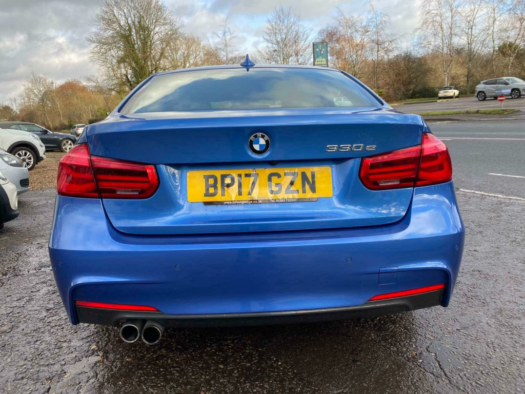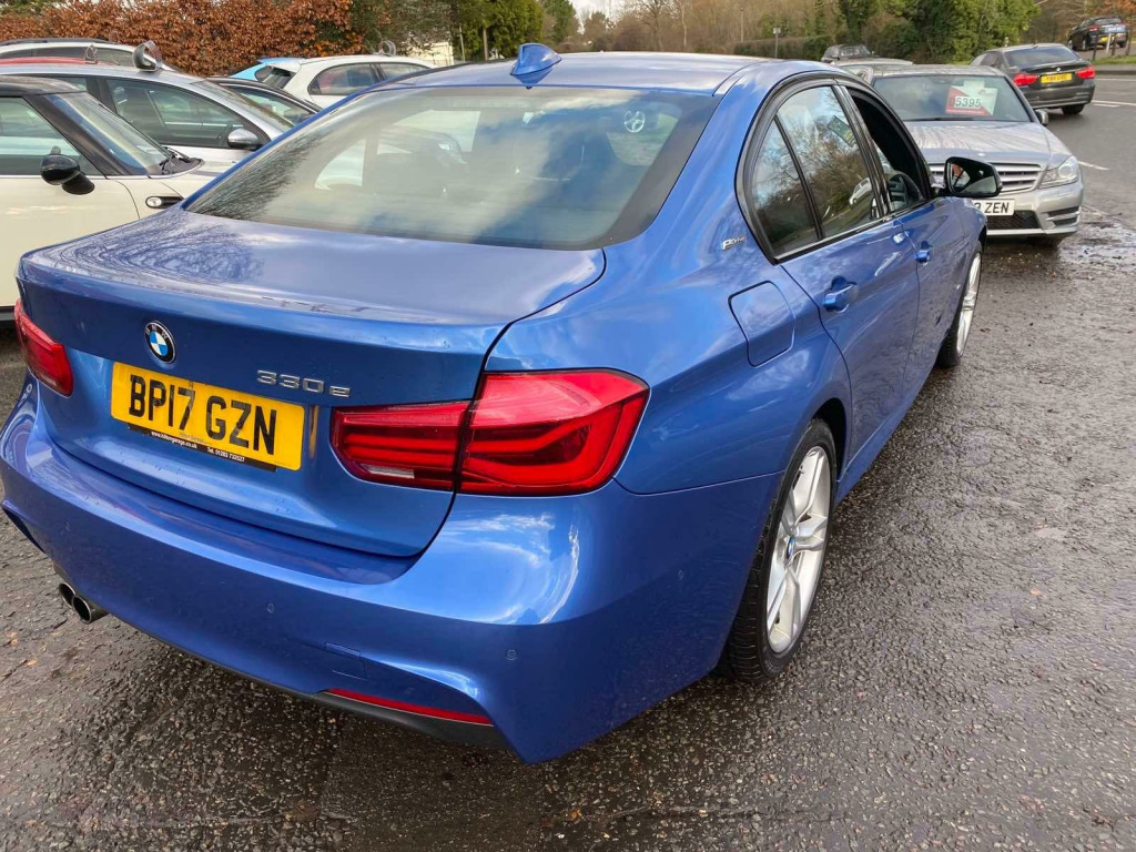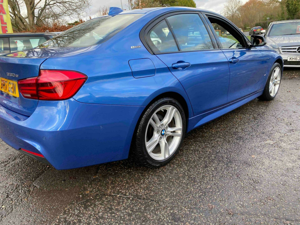 The car has got: AIR CON,AUTO CLIMATE CONTROL,AUTOMATIC LIGHTS,BLUETOOTH, CRUISE CONTROL,DAB,HEATED SEATS,MEDIA CONNECTIVITY,,Radio cdThis 2017 BMW 3 Series 330e M Sport boasts a single owner and a full service history, with its last service completed on 2025-08-12 at 112,453 miles, and an MOT valid until May 2026. This Euro 6 compliant plug-in hybrid features a 2.0 litre petrol engine and comes equipped with the M Sport trim, offering a heated steering wheel, a reversing assist camera, and the Advanced Parking Package for enhanced convenience. The Interior Comfort Package and front armrest with sliding adjustment further contribute to a refined driving experience.The 330e M Sport variant stands out with its blend of efficient plug-in hybrid technology and sporty M Sport styling, indicating a superior approach to performance and economy compared to conventional models. The comprehensive provenance, including a clear vehicle history check and a complete service record, assures potential buyers of the vehicle's well maintained condition. This combination of advanced features and meticulous care makes this BMW 3 Series a compelling choice for those seeking a premium and practical saloon. v power socket in front centre console and passenger footwell, 18in alloy wheels - light m star spoke - 400m, 3.5mm auxiliary input point in centre console for auxiliary playing devices, 6.5in colour display screen, air conditioning - automatic with two-zone control, airbags, alarm system - thatcham 1 with remote control and engine immobiliser, ambient lighting - switchable bmw classic orange - cold white - led, armrest - front - folding with storage compartment, armrest - rear centre with two cupholders, automatic transmission with gearshift paddles, automatically dimming rear view mirror, bmw connecteddrive online services, bmw emergency call, bmw navigation system, bmw professional radio - single cd and mp3, battery safety cut off, bluetooth hands free with usb audio interface, bottle holders integrated into door trim storage compartments - front - up to 1 litre, brake pad wear indicator - front and rear, bumper system front and rear - replaceable deformation elements for impacts up to 9mph, central locking switch - doors - fuel filler cap - luggage compartment, charging cable - mode 2 - 5 metres with storage bag, charging flap in body colour located on the front left side, charging socket with led corona charging status light, check control warning system for monitoring of lights and door-luggage compartment open warning, child proof locking system - rear doors, child seat isofix attachment - rear, condition based service, crash sensor - activating central locking release - hazard warning lights - battery safety cut off - interior lighting, cruise control with brake function, cup holders - two in front with sliding lid, dab digital radio, dsc - dynamic stability control plus, direction indicator - side repeaters - integrated in exterior mirrors, door sill finishers - m designation - front, drive performance control - eco pro - comfort - sport and sport plus, dynamic brake lights, electric windows - front and rear, electronic service booklet, exhaust tailpipe - dual round - left with chrome finisher, extended lighting, extended storage, exterior mirrors - heated - electrically adjustable, exterior parts in body colour, exterior trim - high-gloss shadowline, first aid kit and warning triangle, floor mats - velour, full black panel display, full black-panel instrument cluster with hybrid-specific contents - including edrive lettering on start-up, glove box opener with chrome spider, grab handles - integrated in roof lining x4, handbrake and gear knob - leather, headlining - anthracite, heat protection glazing with green tint, heated windscreen washer jets, high level third brake light, indicator lenses - clear, integrated owners handbook - within idrive menu, interior lighting, interior trim - aluminium hexagon with estoril blue matt finisher, kidney grille - chrome with extra wide black - high gloss vertical slats, led fog lights - front, led headlights, lashing eyes in luggage compartment x4, lights-on warning by audio warning signal when ignition is switched off, luggage compartment - light, m aerodynamic bodystyling, m sport package, m sport suspension, media package - bmw business, model designation - edrive on the tailgate-left side and c-pillar left and right, mountings for lashing eyes, non smokers package, obc - on-board computer, oil sensor for level and grade - warning by check control system, pdc - park distance control - front and rear, personal profile, pollen filter, power socket - 12v in luggage compartment, rain sensor with automatic headlight activation, reading lights - front and rear with soft light, rear lights - led, rear seat headrests - three, remote control including integrated key - 2, remote control with integrated key with insert in blue, run flat tyres, seat belt security check for driver, servotronic, shark fin, side armrests - front and rear integrated into door trim, side exterior m designation badges, side impact protection, sport multi-function leather steering wheel - black stitching - gearshift paddles, sport seats - front, standard seat for driver and passenger with manual adjustment, start-stop button with comfort go keyless engine start and auto start-stop deactivation button, steering column with manual reach and rake adjustment, storage compartment in rear centre console - front and rear door trims and under luggage compartment, sun visors with illuminated vanity mirrors and ticket pocket, suspension - front aluminium, tpms - tyre pressure monitoring system, three-point seat belts - all seats, tool kit located in luggage compartment, twin horns, tyres - reduced rolling resistance, visible vin, welcome light, windscreen wipers - two-speed with adjustable intervals, edrive button, edrive services, idrive controller - 8 favourite buttons, iperformance exterior styling 