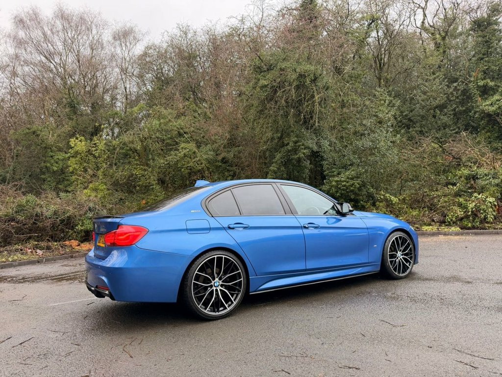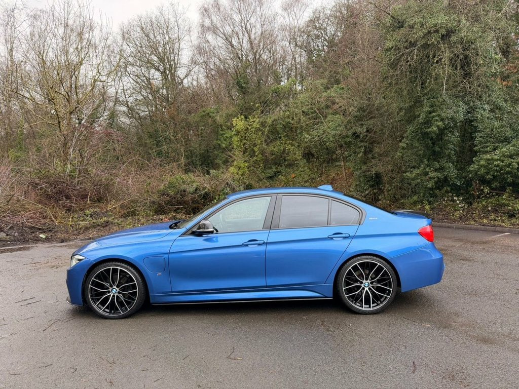 3 SERIES 2.0 330e 7.6kWh M Sport Saloon Auto (252ps) Finished in metallic blue, this BMW 330e M Sport combines performance, efficiency and premium comfort in a stylish plug-in hybrid saloon. Offering smooth automatic driving with the benefit of electric-assisted power, it is an ideal choice for both city and motorway use. This example is enhanced with desirable upgrades including a carbon front lip and M Performance styling kit, giving it an aggressive and modern stance. Sitting on striking 20" alloy wheels, it looks every bit as sporty as it drives. The vehicle benefits from a full service history, providing confidence it has been well maintained throughout its life. As expected for the age and mileage, there are a few age-related marks, but overall it presents very well. This vehicle came into part exchange at our sister site, Cheshire Motorworks, and represents an excellent opportunity to own a high-spec plug-in hybrid M Sport at outstanding value. Specification highlights include: • Metallic blue finish • Full service history • M Sport styling and trim • Plug-in hybrid petrol drivetrain (252ps) • Automatic transmission • Carbon front lip • M Performance body kit • 20" alloy wheels • Black leather interior • BMW iDrive infotainment system • Premium saloon comfort with sporty character A great value M Sport plug-in hybrid with the right extras, strong road presence, and excellent upkeep. CAL 12V Power Socket in Front Centre Console, 18in Alloy Wheels - Light M Star Spoke -, 6.5in Colour Display Screen, AC Plug Type 2, Access to BMW Connected Plus (12 Month S, Air Conditioning - Automatic with Two-Zo, Airbags, Alarm System - Thatcham 1 with Remote Co, Ambient Lighting - Switchable BMW Classi, Armrest - Front - Folding with Storage C, Armrest - Rear Centre with Two Cupholder, Automatically Dimming Rear View Mirror, BMW ConnectedDrive Online Services, BMW Emergency Call, BMW Navigation System, BMW Professional Radio - Single CD and M, Battery Safety Cut Off, Bluetooth Hands Free with USB Audio Inte, Bottle Holders Integrated into Door Trim, Brake Pad Wear Indicator - Front and Rea,