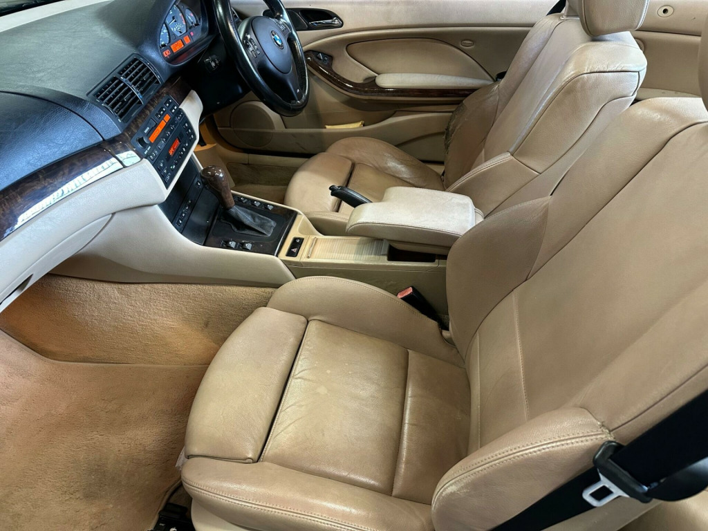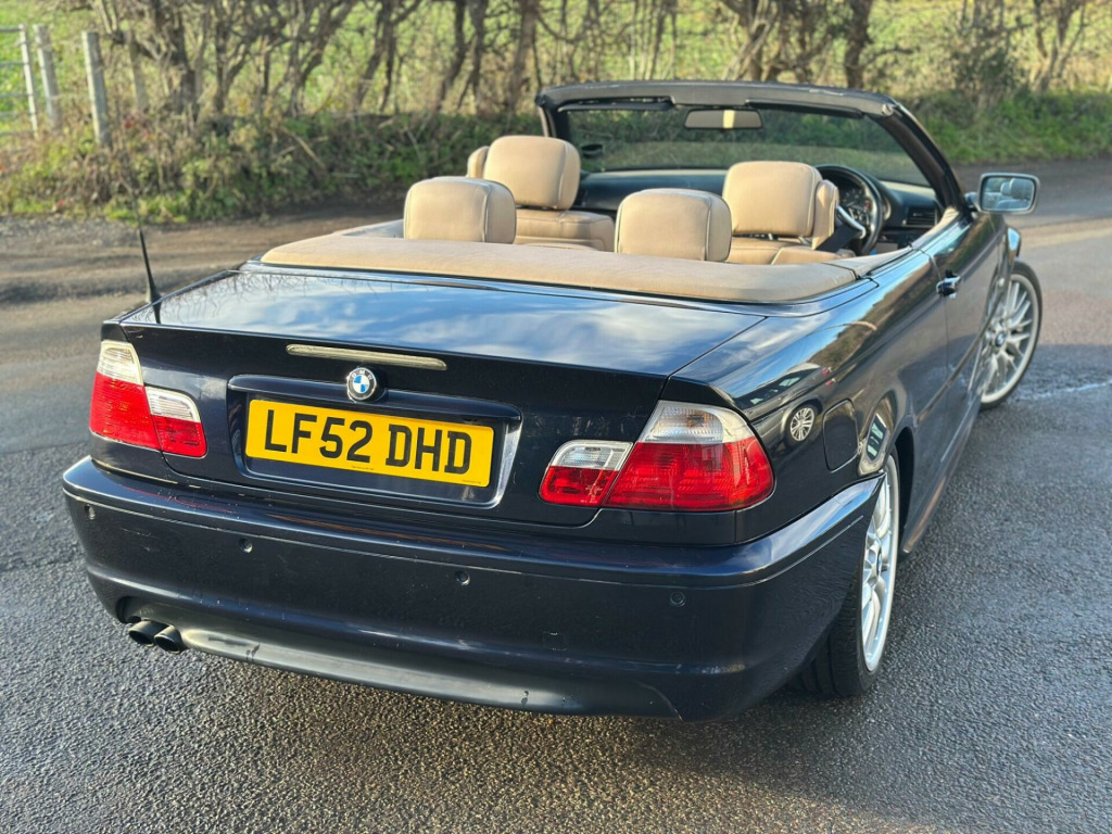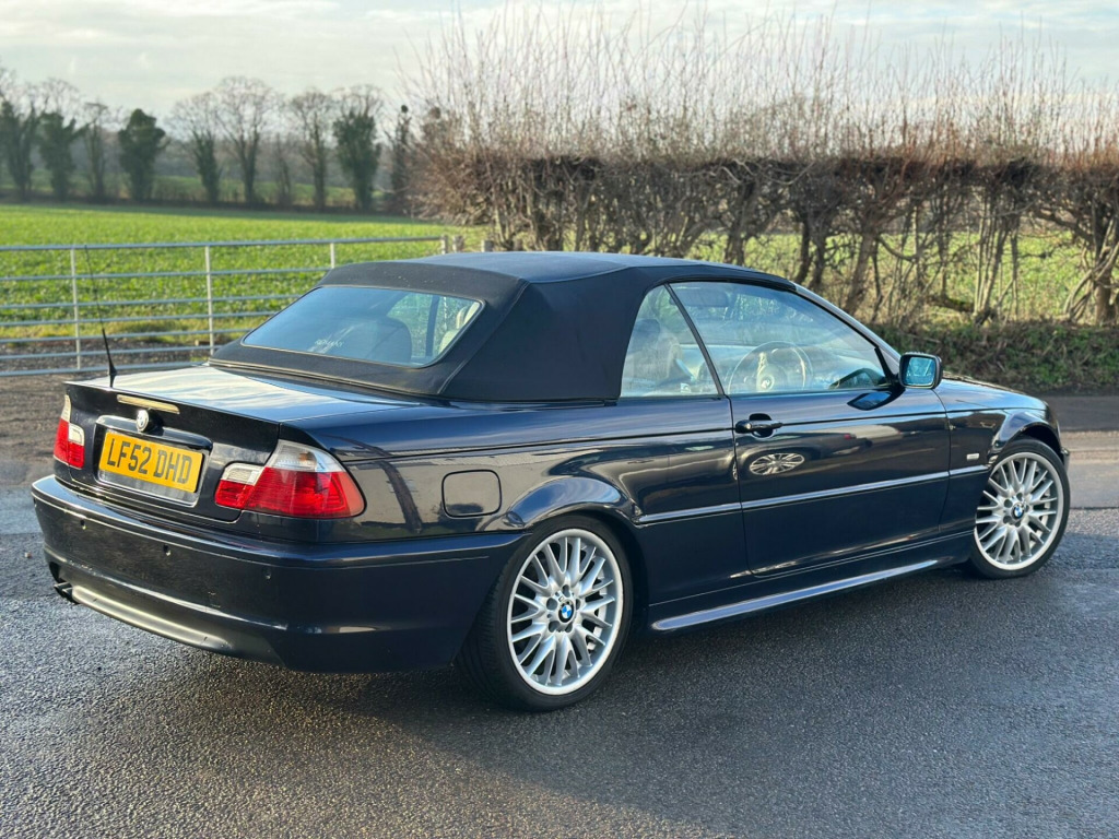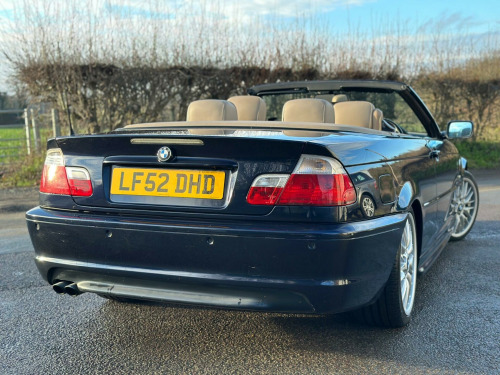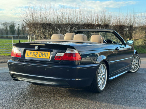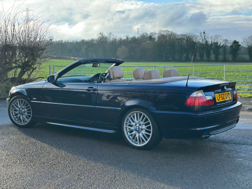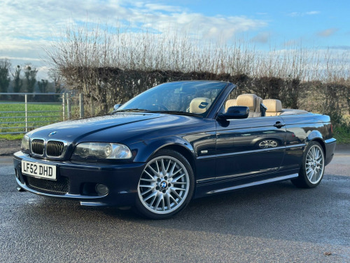 Comprehensive Service History Including A Fresh Service, Long MOT with no advisoriesThis 2002 BMW 3 Series 325Ci 325 Sport is presented in excellent condition, offering a superb driving experience. Powered by a responsive 2.5 litre petrol engine, this model benefits from the desirable 325 Sport trim, enhancing its already sporty appeal.This particular 325Ci is in a low insurance group, making it an attractive option for many drivers. The combination of its powerful yet efficient engine and the sporty 325 Sport specification ensures it stands out from other vehicles in its class, providing a rewarding and enjoyable ownership proposition.. 18'' Sport Alloy Wheels, Full Tan Leather Interior, Rear Parking Sensors, Electric Adjustable Front Seats with Memory, Air-Conditioning (Automatic), Cruise Control, Remote Central Locking, 2 Keys, Electric Windows (Front/Rear), Audio Remote Control, Multi Function Leather Sport Steering Wheel, Alarm, Immobiliser, Front Fog Lights, Traction Control, Anti-Lock Brakes, On Board Computer, Seat Height Adjustment, Air Bag Driver, Air Bag Passenger, Power-Assisted Steering, HPI Clear, Leather Upholstery, Front Seats Heating, Xenon Headlights & Headlamp Cleaning System, Electric Folding Side Mirrors, Blue Fabric Hood.