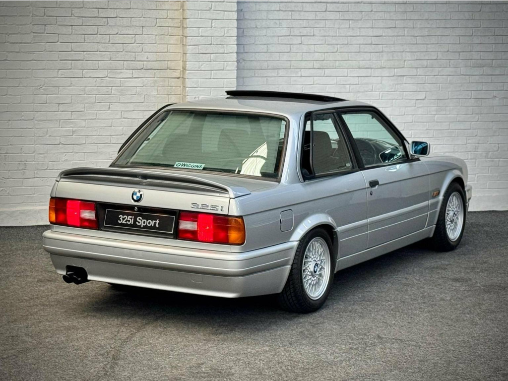 Stunning example of the iconic BMW E30 325i Sport which has been restored back to its glory, 1991/J BMW E30 325i Sport , , This E30 era BMW 325i Sport is a superbly presented example of the marques stylish modern classic performance car, offering the compelling blend of a naturally aspirated straight-six, a rear-wheel-drive chassis, and an involving manual gearbox. This would make an impressive and sought-after addition to any enthusiasts stable and it should prove to be a nostalgic companion for spirited B-road blasts. , Features:, - Finished in stunning Stirling Silver metallic, - Black leather sports interior, - Genuine M-Tech II body kit complete with boot spoiler, - 15 inch BBS alloy wheels and wrapped with Continental Sport Contact tyres, - 5 speed manual gearbox, - Electric sunroof, - Sports steering wheel, - Electric windows, - Electric door mirrors, - On board computer, - Rear blind (rare), - Remote central locking (2 keys), - No cracks on the dashboard, - The car what was already a very good example and has been turned into something very special and has been restored over the span of 15 years, 105,800 miles and accompanying the sale is a file of invoices, toolkit, boot tidy and spare wheel. Worldwide export can be arranged, Nationwide delivery, Please call/text for more information 07813 956566