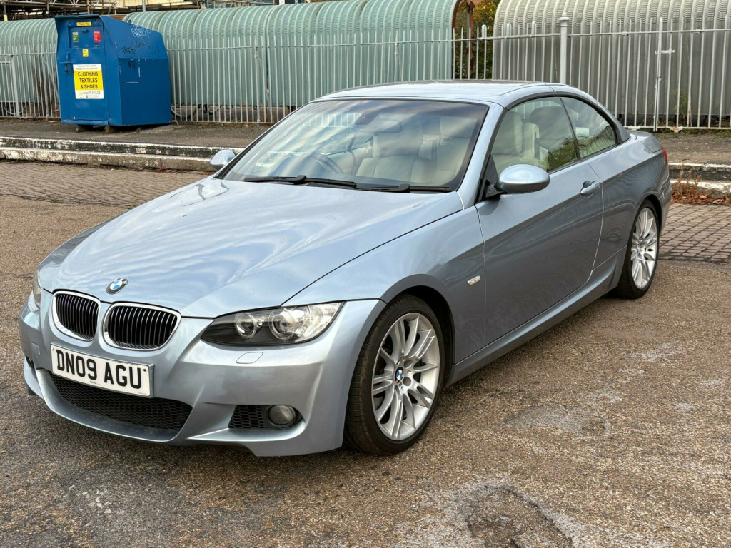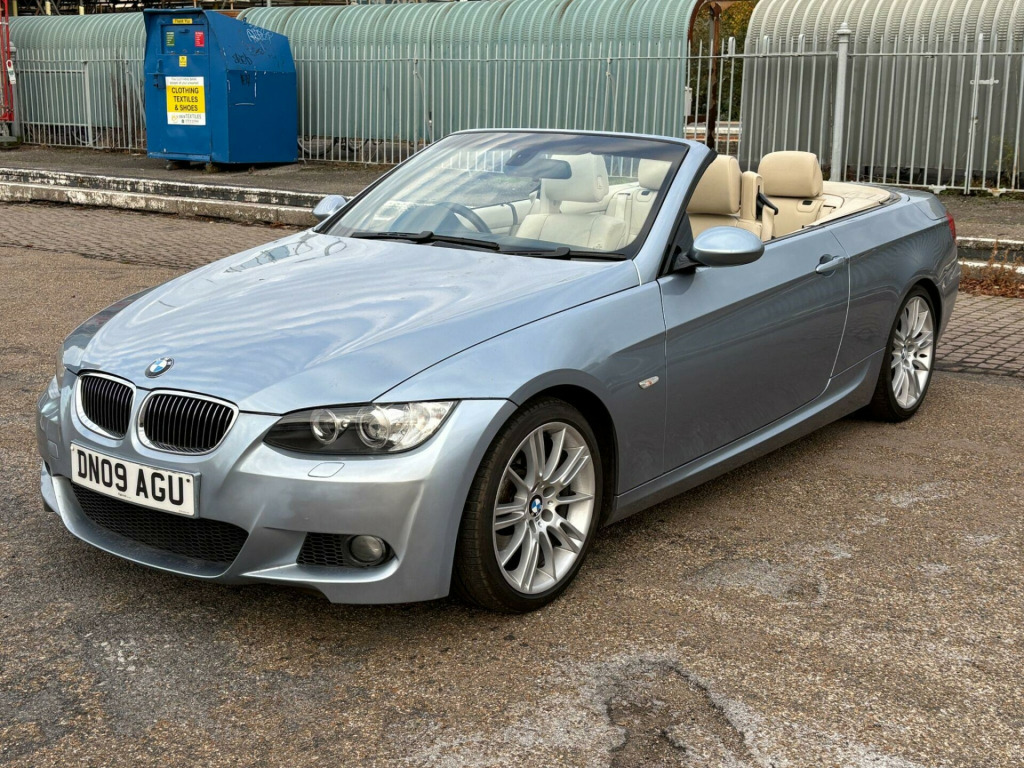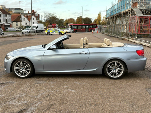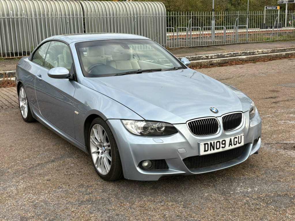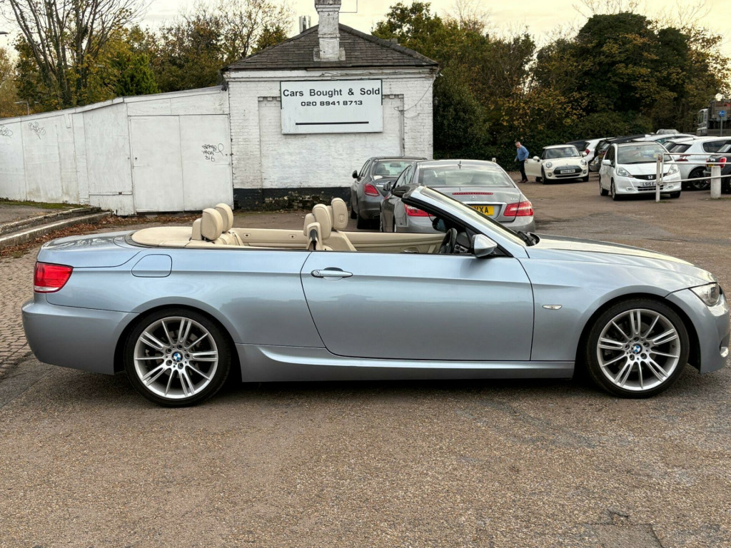 BMW 325i M Sport, Convertible Automatic. 3 Litre, Petrol, ULEZ Compliant, in Light Blue Metallic with Cream Leather Sports Seats, 85,000 Miles with Service History ONLY 2 Owners, the last Owner has Owned for 12 Years, Heated Seats along with all the M Sport Features, HPi Clear, 2 Keys, Warranty. Glenbournes Hampton Court Motor Centre KT8 9AE TEL : 0203 968 0956 or 07836 221295 ated front seats, electric folding door mirrors, dark grey poplar wood trim, front passenger isofix childseat attachment, leather- dakota- cream beige, 18in light star spoke alloy wheel- style 193 m, aluminium glacier silver interior trim, bmw assist, bmw connecteddrive- assist, bmw connecteddrive- online, bmw online services, bmw professional radio & cd & mp3, brushed aluminium interior trim, chrome line exterior trim, cruise control, delete smokers pack, fine brushed aluminium interior trim, high gloss shadow line, m sport package, m sports suspension, model designation deletion, pas, rear parking distance control, smokers pack, standard suspension, voice control system when with bluetooth interface