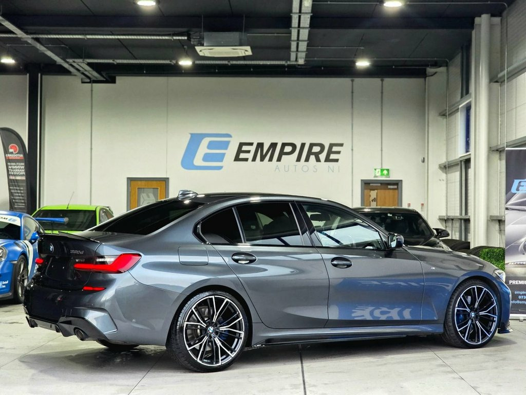 STUNNING MINERAL GREY BMW 330D G20 SALOON M-SPORT. FINISHED WITH THE M PERFORMANCE STYLING KIT, M PERFORMANCE BLUE CALIPERS AND M PERFORMANCE SEAT BELT STITCHING, M SPORT PLUS PACK. UPGRADED 20" ALLOYS ARE AN OPTIONAL EXTRA (£1,295) STUNNING CONDITION THROUGHOUT, FULL BMW HEALTH INSPECTION CARRIED OUT BY A BMW SPECIALIST. 6 MONTHS WARRANTY. PART EXCHANGE WELCOME, UK WIDE DELIVERY AVAILABLE, 30 MINUTES FROM BELFAST DOCKS, 20 MINUTES FROM BEFLAST INTERNATIONAL AIRPORT. 12V Power Socket in Front Storage Compar, 18in Alloy Wheels - M Light Double-Spoke, Acoustic Glazing, Active Air Stream Kidney Grille, Active Guard Plus, Air Conditioning - Automatic with Three-, Airbags, Alarm System - Thatcham 1 with Remote Co, Ambient Lighting with Welcome Light Carp, Armrest - Integrated in Door Trim Front , Armrest - Rear Centre with Two Cupholder, Attentiveness Assistant, BMW Connected Package Professional, BMW ConnectedDrive Online Services, BMW Emergency Call, BMW Live Cockpit Professional, BMW TeleServices, Balanced 50-50 Weight Distribution, Battery Safety Cut-Off in the Event of a, Bluetooth Hands Free with USB Audio Inte, Brake Pad Wear Indicator - Front and Rea,
