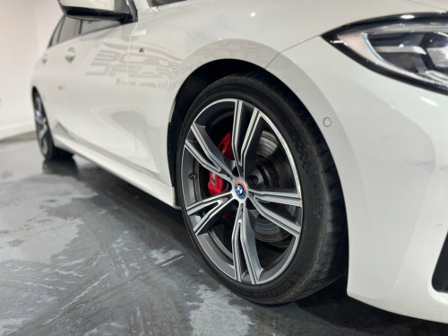 BMW 3 Series 3.0 330d MHT M Sport Saloon 4dr Diesel Hybrid Auto Euro 6 (s/s) (286 PS). A powerful and refined M Sport saloon with mild hybrid efficiency, supplied with two keys and a BMW iDrive service history recorded at 4, 42, 44, and 48 thousand miles. Specification includes alloy wheels, front and rear parking sensors, electric folding mirrors, automatic lights, cruise control, Tacoma Red leather interior, heated front seats, climate control, keyless start, DAB radio, ambient interior lighting, Bluetooth, sat nav, Apple CarPlay, and reverse camera. A high-performance diesel hybrid with premium comfort and standout spec. 12V Power Socket in Front Storage Compar, 18in Alloy Wheels - M Light Double-Spoke, Acoustic Glazing, Active Air Stream Kidney Grille, Active Guard Plus, Air Conditioning - Automatic with Three-, Airbags, Alarm System - Thatcham 1 with Remote Co, Ambient Lighting with Welcome Light Carp, Armrest - Integrated in Door Trim Front , Armrest - Rear Centre with Two Cupholder, Attentiveness Assistant, Automatically Dimming Rear View Mirror, BMW Connected Package Professional, BMW ConnectedDrive Online Services, BMW Emergency Call, BMW Live Cockpit Professional, BMW Mobility System, BMW TeleServices, Battery Safety Cut-Off in the Event of a, Bluetooth Hands Free with USB Audio Inte, Brake Pad Wear I
