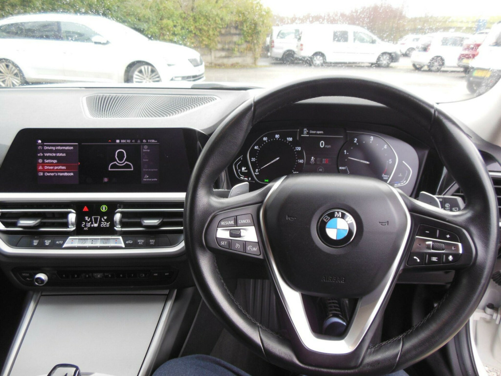 This 2021 BMW 330d Sport is a Euro 6 compliant vehicle, offering an efficient 3.0L Diesel Hybrid engine paired with a capable Four Wheel Drive system. This model comes equipped with an electric towbar, perfect for those needing to tow, and automatic three zone air conditioning for optimal comfort for all occupants. Inside, you will find the BMW Live Cockpit Plus, which includes Bluetooth connectivity, and a comprehensive Parking Assistant system. This system features front and rear sensors and Park Distance Control, making manoeuvring in tight spaces significantly easier.The Sport trim level ensures a dynamic driving experience, and this particular 330d variant benefits from a low insurance group, which can help to reduce ownership costs. The combination of its advanced hybrid technology, all wheel drive, and sophisticated parking aids demonstrates a higher level of specification and capability compared to many other vehicles in its class.. 12V Power Socket in Front Storage Compartment, 18in Alloy Wheels - Light V-Spoke Style 780 Bicolour Orbit Grey, Acoustic Glazing, Active Air Stream Kidney Grille, Active Guard Plus, Air Conditioning - Automatic with Three-Zone, Airbags, Alarm System - Thatcham 1 with Remote Control and Electronic Engine Immobiliser, Ambient Lighting with Welcome Light Carpet, Armrest - Integrated in Door Trim Front and Rear and in Front on the Centre Console, Armrest - Rear Centre with Two Cupholders, Attentiveness Assistant, Automatically Dimming Rear View Mirror, BMW Connected Package Professional, BMW ConnectedDrive Online Services, BMW Emergency Call, BMW Individual Roof Rails High-Gloss Shadow Line, BMW Live Cockpit Plus, BMW Mobility System, BMW TeleServices, Balanced 50-50 Weight Distribution, Battery Safety Cut-Off in the Event of an Accident, Bluetooth Hands Free with USB Audio Interface, Brake Pad Wear Indicator - Front and Rear, Bumper System - Front and Rear, Central Locking Switch - Doors - Fuel Filler Cap - Luggage Compartment, Centre Console Rear Storage Compartment - Ventilation Grille, Check Control Warning System for Monitoring of Lights and Door-Luggage Compartment Open Warning, Child Proof Locking System - Rear Doors, Child Seat ISOFIX Attachment - Rear, Condition Based Service, Crash Sensor, Cruise Control with Brake Function, Cup Holders in Centre Console - Front - 2 Cupholder Inserts with Clamping Elements - Inlay Matt Black, DAB Digital Radio, DSC - Dynamic Stability Control Plus, Door Pockets - Front and Rear, Door Sill Finishers - Aluminium Inserts in the Front - Brushed with BMW Designation, Drive Performance Control, Driving Experience Modes, Dynamic Brake Lights, EPS - Electric Power Steering, Electric Windows - Front and Rear, Electro Mechanical Parking Brake, Exhaust Tailpipes - Split Left and Right - 90mm Diameter, Exterior Mirrors - Electrically Folding with Anti Dazzle, Exterior Parts in Body Colour, Exterior Trim - High-Gloss Shadowline, First Aid Kit and Warning Triangle, Floor Mats - Velour - Front and Rear, Front Bumper with Specific Design Elements in Black High-Gloss, Glove Compartment - Illuminated - With Separate Small Compartment, Grab Handles - Integrated in Roof Lining x4, Headlights - Adaptive LED, Heat Protection Glazing with Green Tint, Incorrect Fuelling Protection System, Instrument Cluster, Interior Lighting, Interior Trim - Black High Gloss, Interior Trim - High-Gloss Black with Pearl Chrome Finisher, LED Fog Lights - Front, Larger Fuel Tank, Lashing Eyes in Luggage Compartment x4, Luggage Compartment - Light, Model Designation on Tailgate - Right, OBC - On-Board Computer, Oil Sensor For Level and Grade - Warning by Check Control System, Optimum Shift Indicator, PDC - Park Distance Control - Front and Rear, Parking Assistant, Personal Profile, Preparation For High-Beam Assistant, Rain Sensor with Automatic Headlight Activation, Rear Bumper with Specific Design Elements in Black High-Gloss, Rear Lights - LED, Rear Seats, Remote Control - Including Integrated Key, Roof Mouldings - Body Colour, Seat Belt Security Check for Driver and Front Passenger, Seat Heating for Driver and Front Passenger, Servotronic Steering, Shark Fin Aerial, Side Impact Protection, Split Folding Rear Seat, Sport Multi-Function Leather Steering Wheel - Three Spoke, Sport Seats - Front, Start-Stop Button with Keyless Engine Start and Auto Start-Stop Deactivation Button, Steering Column Mechanically and Infinitely Variably Adjustable in Height, Stereo Speaker System, Stroke-dependent Dampers, Sun Visors with Vanity Mirrors and Ticket Holder, T-Shaped Design Element Right and Left in Black High-Gloss, TPMS - Tyre Pressure Monitoring System, Three-Point Seat Belts - All Seats, Through-Loading System, Tool Kit Located in Luggage Compartment, Two Tone Horn, Tyres - Reduced Rolling Resistance, Visible VIN, Welcome Light, Windscreen Wipers - with Integrated Washing Jets, iDrive Controller, Towbar - Electric, Lumbar Support - Dri.
