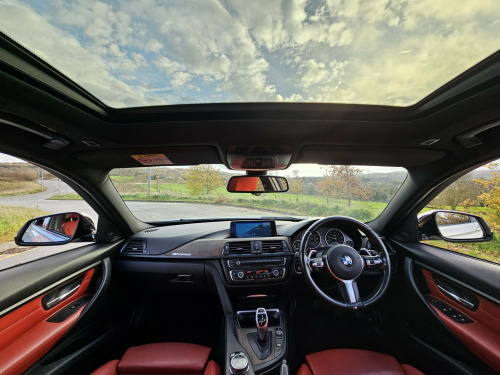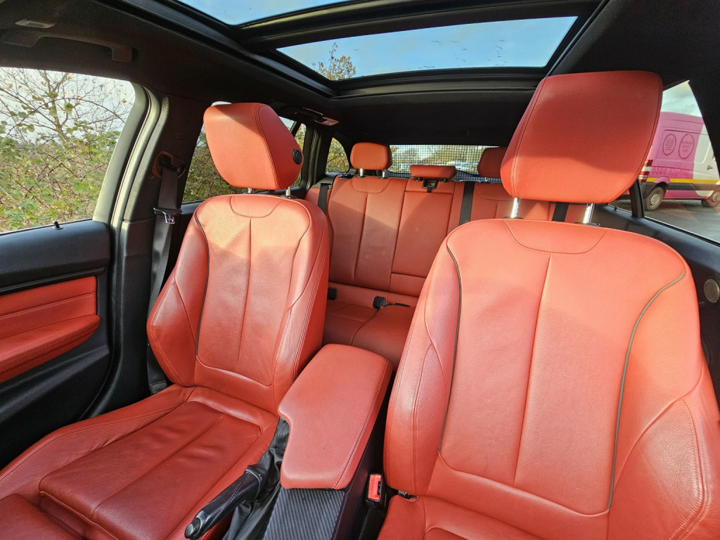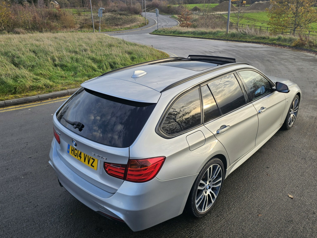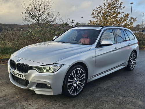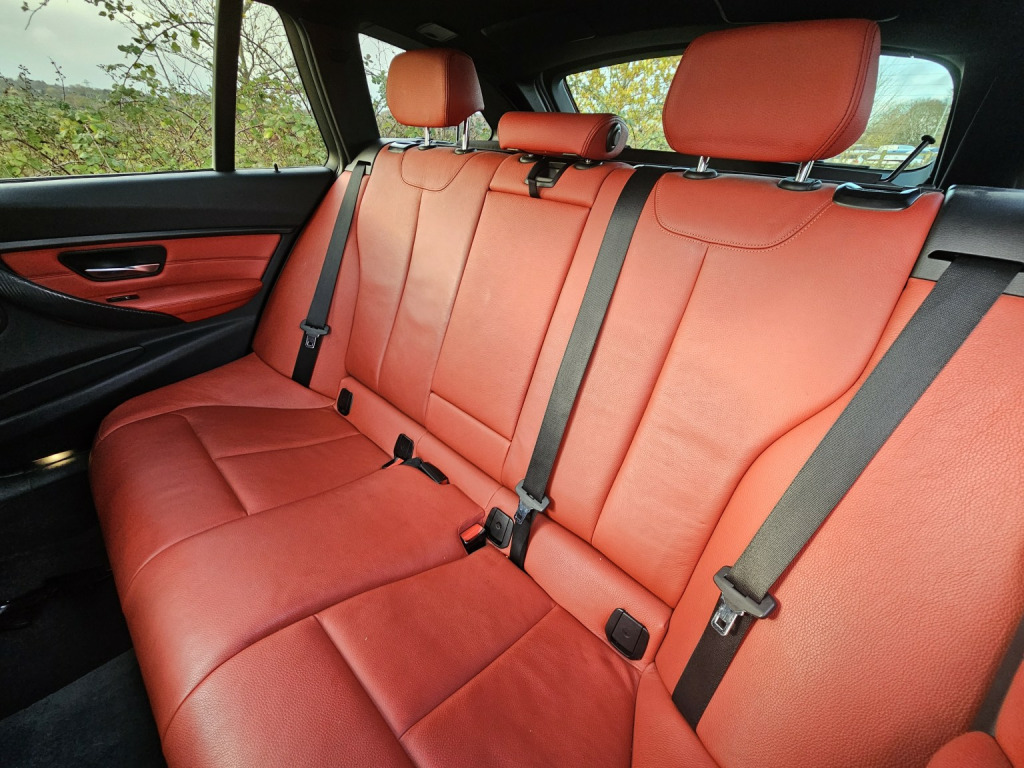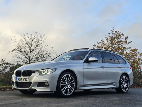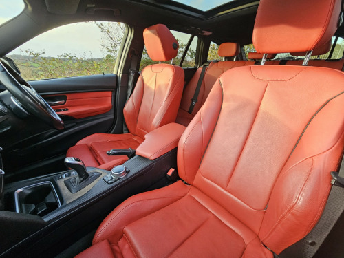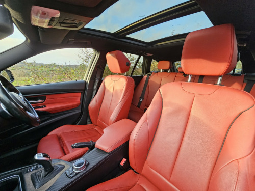 *BMW 330d xDrive M Sport Touring Estate with M Sport Plus Package, *3.0 straight 6-cylinder diesel engine with ZF 8 speed automatic gearbox, *2014 14 Plate, *258 bhp, *117,000 miles with full BMW main dealer service history (9x Digital Stamps in iDrive), *Glacier silver with coral red leather seats, *Upgrade Alcantara and Carbon Fibre interior trim, *Fully refurbished unmarked diamond cut 19 403M alloy wheels, *Dunlop SP Sport Maxx GT run flat tyres with excellent tread, *M Performance brakes with blue callipers , *Professional Sat Nav, *Professional Media Package, *Harman Kardon sound system, *Enhanced Bluetooth, *Retractable electric tow bar, *Privacy glass, *Fully adaptive headlights with high beam assistant, *Panoramic glass sunroof, *Visibility package, *Electric Heated Seats, *4 x electric windows & mirrors, *Digital climate control, *Adaptive cruise control, *Multifunction Steering wheel, *Front & rear parking sensors, *Reversing Camera, *isofix seats, *Shadowline grill, *Additional Extras – Roof bars, original front grill / gloss black M Performance front splitter