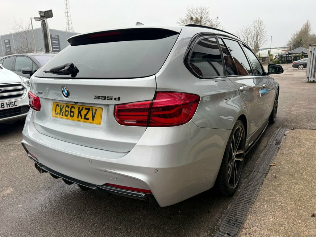 .....This truly is a lovely example of the stylish and desirable BMW 3 SERIES 3.0 335d M Sport Touring 5dr Diesel Auto xDrive Euro 6 (s/s) (313 ps) in a beautiful shade of silver with sporty 19" alloy wheels and good tyres!!! The vehicles modern interior has been well maintained, she has stylishly full leather seating and the vehicle has many extras including air conditioning, Bluetooth, cruise control, auto lights, auto climate control, front and rear parking sensors, DAB/CD/AUX/Radio stereo system, electric windows. air bags, abs, remote central locking, isofix, multi function steering wheel, paddle shift, voice control, sat nav, heated seats, x4 electric windows and many more as listed!!! This HPI clear vehicle will also include a fresh 12 month MOT pre collection, has service history, 2 keys and looks and drives superbly!! OPEN 7 DAYS A WEEK.. LOW RATE FINANCE AVAILABLE IN UNDER 1 HOUR...TOP WARRANTY PACKAGES AVAILABLE!!! £0 ADMIN FEE CHARGED ON ALL IN HOUSE FINANCE AGREEMENTS! 12V Power Socket in Front Centre Console, 18in Alloy Wheels - Light M Star Spoke -, 3.5mm Auxiliary Input Point in Centre Co, 6.5in Colour Display Screen, Air Conditioning - Automatic with Two-Zo, Airbags, Alarm System - Thatcham 1 with Remote Co, Ambient Lighting - Switchable BMW Classi, Armrest - Front - Folding with Storage C, Armrest - Rear Centre with Two Cupholder, Automatically Dimming Rear View Mirror, BMW ConnectedDrive Online Services, BMW Emergency Call, BMW Navigation System, BMW Professional Radio - Single CD and M, Battery Safety Cut Off, Bluetooth Hands Free with USB Audio Inte, Bottle Holders Integrated into Door Trim, Brake Pad Wear Indicator - Front and Rea, Bumper System F