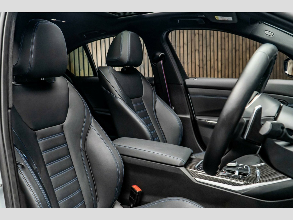 This 2023 BMW 3 Series M340d presents an exceptional opportunity with its remarkably low mileage of just 15,500 miles. This Euro 6 compliant model boasts a powerful 3.0L Diesel Hybrid engine paired with a sophisticated Four Wheel Drive system, offering both efficiency and dynamic performance. Inside, you'll find premium Carbon Fibre interior trim, enhancing the cabin's sporty feel. The Technology Package adds convenience with Bluetooth connectivity, a Head Up Display, and wireless phone charging, while the Comfort Pack includes keyless entry and a heated steering wheel for added ease. Enjoy the open air with the electric glass sunroof, and keep your devices powered up with the convenient wireless charging tray.Experience exhilarating performance with the M340d's impressive acceleration, reaching 0-62mph in a mere 4.6 seconds, a figure that highlights its sporting prowess compared to many other vehicles in its class. This impressive speed is matched by its economical nature, further enhanced by its low insurance group rating, making it a sensible choice for discerning drivers. The combination of its advanced hybrid technology, all wheel drive capability, and comprehensive feature set makes this BMW 3 Series a truly compelling proposition.. 12V Power Sockets, 19in Alloy Wheels - M Light Double-Spoke Style 792 - M Bicolour Jet Black with Mixed Tyres and Runflat Tyres, Acoustic Glazing, Active Guard Plus, Adaptive LED Headlights, Adaptive M Suspension, Air Conditioning - Automatic, Airbags, Alarm System, Ambient Lighting, Armrest, Attentiveness Assistant, Automatic Start-Stop Button, Automatically Dimming Rear View Mirror, BMW Emergency Call, BMW ID, BMW Live Cockpit Plus, BMW TeleServices, BMW iDrive, Battery in Luggage Compartment, Bumper System, Centre Armrest in Rear - Folding with 2 Cup Holders, Centre Lock Switch, Closing System with Central Locking, Condition Based Service, Connected Package Pro, ConnectedDrive Services, Crash Sensor, Cruise Control with Brake Function, Cup Holders - Centre Console x2, DAB Tuner, DSC - Dynamic Stability Control Plus, Door Sill Strips, Double-Jointed Spring-Strut Front Axle, Driving Experience Switch, Electric Windows - Front and Rear, Electro Mechanical Parking Brake, Electronic Engine Immobiliser, Exhaust Tailpipe Finishers - Visible, Exterior Items, Exterior Trim - Extended High-Gloss Shadowline, Exterior Trim - High-Gloss Shadowline, Floor Mats in Velour, Follow-Me-Home Function, Fuel Tank Breather System, Glove Compartment - Illuminated, Headlight Beam-Throw Control, Headlining - Anthracite, HiFi Speaker System - Digital Amplifier - 205W Amplified Power, High-Beam Assistant, Instrument Panel in Sensatec, Interior Lighting, Interior Trim - Aluminium Rhombicle, Interior and Exterior Mirror Package, Larger Fuel Tank, Lashing Eyelets in Luggage Compartment, Luggage Compartment - Light, M Aerodynamics Package, M Lights Shadow Line, M Rear Spoiler, M Seat Belts, M Sport Brakes with Red Calipers, M Sport Differential, M Sport Exterior Styling, M Sport Leather Steering Wheel, Model Logo, Multifunction for Steering Wheel, Oil Sensor For Level and Grade, Parking Assistant, Plastic Fuel Tank, Power Sockets, Preparation for Driver Assistance, Rear Backrest - Foldable and Dividable by 40-20-40, Rear Lights - LED, Reversing Light, Run Flat Tyres, Safety Battery Terminal Clamp, Seat Backrest Width Adjustment - Driver, Seat Heating for Driver and Front Passenger, Seats - Manual Adjustment for Height - Fore and Aft Position - Seat Depth - Backrest Tilt and Head Restraint Height, Shifting Point Display, Smartphone Integration, Speed Limiter, Split Folding Rear Seat, Sport Seats - Front, Steering Column Adjustment, Steering Wheel - Gearshift Paddles, Storage Compartment Package, Sun Protection Glazing, Sun Visors with Ticket Holder and Illuminated Vanity Mirror, TPMS - Tyre Pressure Monitoring System, Third Brake Light, Tool Kit Located in Luggage Compartment, Variable Sport Steering, Warning Triangle, Washer Jets - Heated, Welcome Light, Technology Package, Electric Glass Sunroof, Comfort Pack, Harman Kardon Surround Audio Sound System, Interior Trim - Carbon Fibre, Steering Wheel - Heated, Wireless Charging Tray, Vernasca Leather - Black with Blue Stitching.