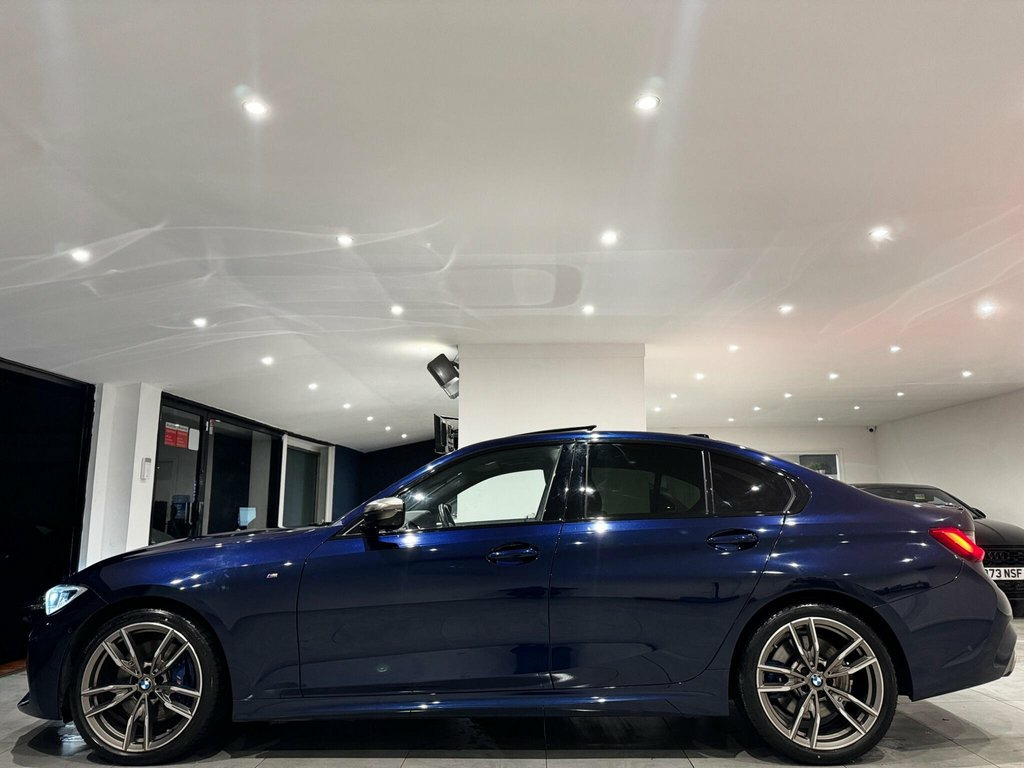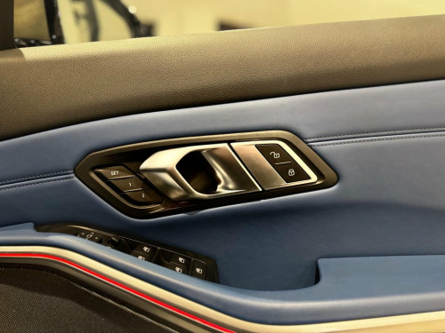 Boasting exceptionally low mileage for its age, this 2019 BMW 3 Series M340i presents a remarkable opportunity. Powered by a potent 3.0 litre petrol engine and featuring a sophisticated four wheel drive system, this Euro 6 compliant vehicle offers dynamic performance. Its provenance is further enhanced by a full dealership service history and a 3 month warranty for your peace of mind. The 12 months MOT provided on purchase ensures its roadworthiness. This M340i is equipped with a host of desirable features including an extremely rare beautiful interior, the individual extended merino fjord blue and black leathers, it has the Premium Package with its electric sunroof and memory seats, and the Driving Assistant Professional which incorporates adaptive cruise control. The Visibility Pack adds advanced LED and Laser headlights, while the Harman Kardon loudspeaker system delivers a premium audio experience. The Technology Package further enhances convenience with Bluetooth, a head up display, and wireless phone charging. With an impressive 0-62mph acceleration of just 4.4 seconds, this BMW offers a driving experience that stands out from similar vehicles, further complemented by its low insurance group. 12V Power Socket in Front Storage Compar, 19in Alloy Wheels - M Light Double Spoke, Acoustic Glazing, Active Guard Plus, Adaptive M Suspension, Air Conditioning - Automatic with Three-, Airbags, Alarm System - Thatcham 1 with Remote Co, Ambient Lighting with Welcome Light Carp, Armrest - Integrated in Door Trim Front , Armrest - Rear Centre with Two Cupholder, Attentiveness Assistant, Balanced 50-50 Weight Distribution, Battery Safety Cut-Off in the Event of a, Bluetooth Hands Free with USB Audio Inte, BMW Connected Package Professional, BMW ConnectedDrive Online Services, BMW Emergency Call, BMW Individual Extended Merino Leather -, BMW Live Cockpit Professional, BMW TeleServices, Brake Pad