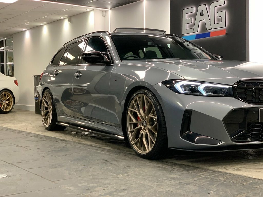 2023 (73) BMW M340I TOURING finished in Skyscraper Grey metallic with Black Vernasca leather. Styled perfectly with a full exterior package from Motech Performance, Motech MW-3 alloy wheels and finished with an Eibach Pro lowering kit and Remus exhaust system. Factory spec includes; comfort plus pack and tech plus pack which consist of; heated steering wheel, comfort access, acoustic comfort and sun protection glass, panoramic glass, sunroof, interior and exterior mirrors with auto dimming, fully electric and heated front seats with drivers memory, storage compartment package, M seat belt stitching, adaptive LED headlights with high beam assist, parking assistance system plus, Harman/Kardon surround sound system, storage tray with wireless charging, DAB radio, Apple CarPlay, Android Auto and Bluetooth connectivity. 1 owner. Full service history. PCP and HP finance available from 9.9% APR (subject to status) 12V Power Sockets, 19in Alloy Wheels - M Light Double-Spoke, Acoustic Glazing, Active Guard Plus, Adaptive LED Headlights, Adaptive M Suspension, Air Conditioning - Automatic, Airbags, Alarm System, Ambient Lighting, Armrest, Attentiveness Assistant, Automatically Dimming Rear View Mirror, BMW Emergency Call, BMW ID, BMW Live Cockpit Plus, BMW TeleServices, BMW iDrive, Battery in Luggage Compartment, Bumper System, Centre Armrest in Rear - Folding with 2 , Centre Lock Switch, Closing System with Central Locking, Condition Based Service, Connected Package Pro, ConnectedDrive Services, Crash Sensor, Cruise Control with Brake Function, Cup Holders - Centre Console x2, DAB Tuner, DSC - Dynamic S