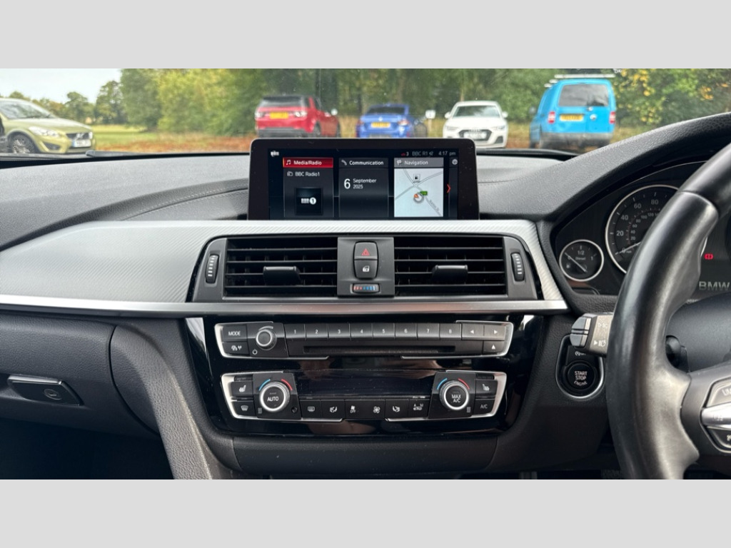 BMW 3 Series 318d M Sport Shadow Edition 4dr Step Auto BMW Online services, BMW remote services, BMW Teleservices, Brake force display, Brake pad wear indicator warning light, Check control system, Cruise control with brake function + speed limiter, Digital clock, Door/boot open warning light, Lights on warning, Oil temperature gauge, On board computer, On board diagnostics, Operation warning of all exterior lights, Outside temperature display, Push button starter, Real time traffic information, Run flat tyre indicator, Service interval indicator, Traffic message channel (TMC), Diesel particulate filter, Drive Performance Control, Electronic differential lock, BMW professional radio/CD/MP3, CD Changer preparation, DAB Digital radio, Harman/Kardon logic 7 surround sound system, 'Guide me home' headlamps, 2 speed adjustable intermittent wipers with wash/wipe function, Auto dimming rear view mirror, Automatic headlight beam throw control, Black high gloss door mirrors, Body colour bumpers, Body colour door handles, Body colour roof mouldings, Clear indicator lenses, Dark chrome exhaust tailpipe, Dark headlamp surround, Door sill finishers, Dynamic brake lights, Electric adjustable door mirrors, Electric front and rear windows with one touch/convenient open/close function, Green tinted heat insulating glass, Heated rear window with automatic switch off, Heated windscreen washer jets, High beam assistant, High gloss shadow line, Individual sun protection dark tinted glazing for rear window and rear side door windows, kidney grille with high gloss black vertical slats, LED daytime running lights, LED fog lights, Rain sensor + automatic driving lights control, Shark fin roof aerial, 12V sockets in front centre console and passenger footwell, 2 x folding cupholders in instrument panel above glovebox, 3 rear seat head restraints, 4 foldable grab handles - rear with clothes hook, 4 lashing points to secure luggage, 40:20:40 split folding rear bench seat, Automatic interior light soft on/soft off system, Driver and passenger sunvisors with vanity mirrors + slide cover, Dual zone automatic air conditioning, Folding front centre armrest + storage, Front and rear door armrests, Front and rear velour floor mats, Front door storage bins with bottle holder, Front sports seats with electric side bolster adjustment, Glovebox light, Height adjustable front headrests, Indirect front interior illumination - soft-light function, Individual anthracite headlining, Isofix system on outer rear seats, Leather gear knob, Leather gear selector lever handle, Leather handbrake grip, Lockable glovebox, Luggage compartment lighting, Multi-function controls for steering wheel, Reach + rake adjustable steering column, Rear centre armrest with 2 cupholders, Rear storage compartment in multifunction centre console with sliding cover, Storage compartment in rear doors, Toolkit located in luggage compartment, Extended lighting package - 3 Series, Extended storage pack - 3 Series Saloon, 3 point inertia reel seatbelts + pre-tensioners on outer rear seats, ABS, Automatic Stability Control (ASC), BMW emergency call, Cornering brake control (CBC), Crash sensor, Driver and passenger airbags, DSC+, Dynamic brake control, Dynamic Traction Control - DTC, Front and rear head airbags, Front passenger airbag deactivation, Front seat side impact airbags, Front seatbelt pretensioners + load limiters, Hill start assist, M Sport braking system, Rear child proof door locks, Seatbelt warning, Three 3 point rear seatbelts, Twin horns, Tyre pressure monitor, Warning triangle and first aid kit, Automatic drive away locking facility, Central locking fuel filler cap, Centre lock switch, Electronic immobiliser, Key integrated remote control central locking, Remote control alarm, 19" M double spoke alloy wheels style in bicolour orbit grey - style 704M, Low rolling resistance tyres, Run-flat tyres