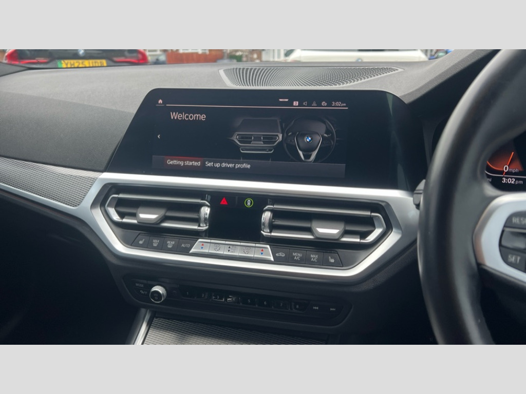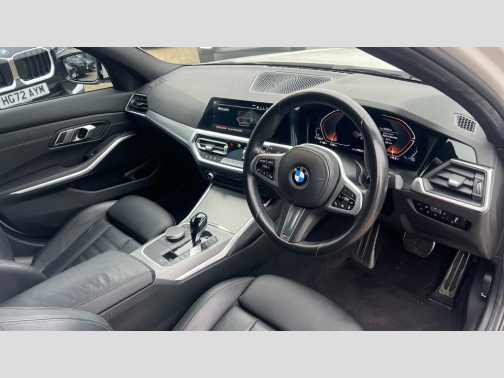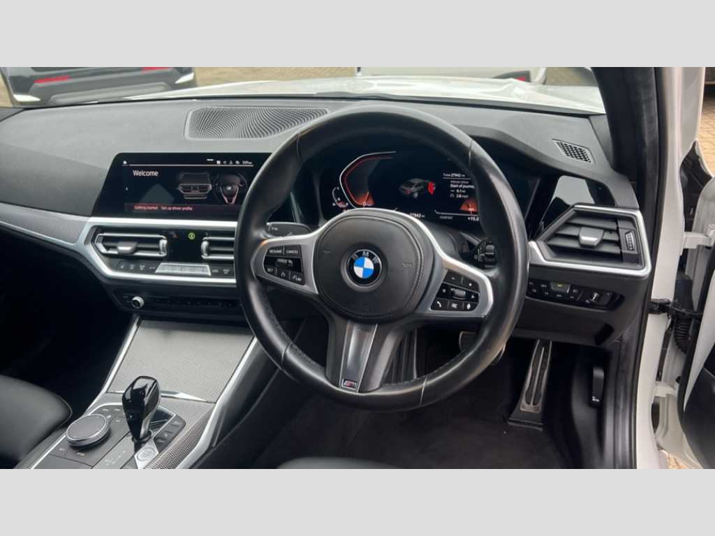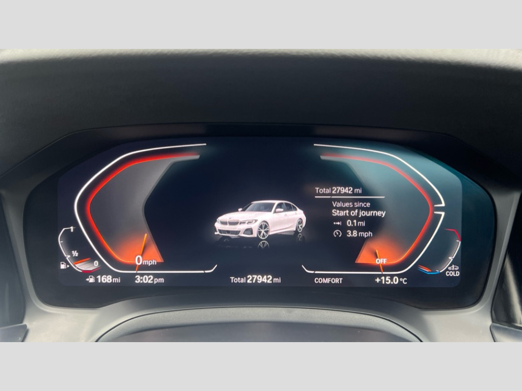 BMW 3 Series 318i M Sport 4dr Step Auto Active guard plus, Attentiveness assist, Auto start-stop, BMW iDrive controller on centre console, BMW Live Cockpit Professional Nav with 12.3" instrument display + 10.25" display, Intelligent Voice Assist, BMW OS 7, HDD, 2USB, 4G LTE connect, BMW service history, BMW Teleservices, Brake pad wear indicator in front and rear, Check Control warning system for monitoring of lights and door/luggage compartment open warning, Condition based service, Cruise control with brake function + speed limiter, Electric power steering with Servotronic steering optimised at all speed ranges, Instrument cluster with speedometer with mph readout, tachometer, fuel gauge and oil temperature gauge, Integrated owners handbook, Oil sensor for level and grade, warning by check control system, On board computer - average speed+fuel consumption, service interval, clock/date, odometer/trip meter, outside temperature display and ice warning, Optimum shift indicator, Personal Profile - automatic lock when driving away selectable, Variable sport steering, Balanced 50/50 weight distribution, Battery cut-out switch, Drive performance control - ECO PRO, comfort and sport modes, Larger capacity fuel tank, M sport suspension, Petrol Particulate Filter, Stroke dependent dampers, DAB tuner, Electronic service booklet, Acoustic glazing, Active airstream chrome frame kidney grille with 8 high gloss black vertical slats, Automatic headlight beam throw control with load dependent regulating reaction, dynamic compensation of braking dive and acceleration squat, Black roof mouldings, Body colour door handles, Body colour front and rear bumpers, Body colour fuel filler flap, Body colour mirror caps with bottom segment in matt black, Dynamic brake lights, Electric windows - front and rear, with open/close fingertip control, anti-trap facility and comfort closing, Exhaust tailpipe - split left and right, Exterior mirrors - electrically folding with anti-dazzle, Fading support, Front and rear bumper system with replaceable deformation elements, Front black door sill finishers with BMW designation, Green tinted heat protection glazing, High gloss shadow line exterior trim, Interior rear view electrochromatic mirror with automatic anti dazzle function, LED daytime running lights, LED front fog lights, LED third brake light, Lightweight engineering, M designation on front side panels, left and right, Matt black exterior B pillar, Model designation on right side of tailgate, Rain sensor with automatic headlight activation, Rear boot, Rear side wing doors, Shark fin antenna, Two part LED tailights in L-shape with components in smoked glass, brake light, LED turn indicator and rear fog light, Visible VIN plate, Welcome lights in interior and door handle area, Windscreen wipers with integrated washing jets, 12V power socket in front storage compartment, 2 front cupholder in centre console with clamping elements and matt black inlay, 3 rear seats with non folding headrests with 3 point seat belts, 3 seat bench in 2nd row, 3 zone automatic air conditioning, 4 pieces lashing eyelets in luggage compartment, 40:20:40 split folding rear seat with loading system, Ambient lighting with welcome carpet light, Anthracite headlining, Armrest integrated in front and rear door trim + front centre console armrest, Backrest width adjustment, Centred top Luggage compartment lights, Four grab handles integrated in roof lining, Front and rear door exit lighting (left / right), Front and rear door pockets, Front and rear reading lights, Front and rear velour floor mats, Front head restraints, Front sport seats, Heated front seats, Height adjustable mechanically and infinitely variable steering column, Illuminated armrest storage compartment, Illuminated glove compartment with separate small compartment, Interior lighting - front centre over interior mirror with soft light, rear centre and front and rear footwell lighting, M sport leather steering wheel, Make-up mirror lights, Rear centre armrest with 2 cupholders, Rear centre console with storage compartment and ventilation grille, Single front passenger seat, Sunvisors with vanity mirrors and ticket pocket, Toolkit located in luggage compartment, Connected pack professional - 3 Series Saloon/Touring, M sport exterior styling pack - 3 Series Saloon/Touring, Parking assistant pack - 3 Series, 2 tone horn, BMW emergency call, Brake energy regeneration, Braking pre-tensioning, Child proof locking system in rear door, Child seat ISOFIX attachment rear outer seats, Coasting in idle in ECO PRO mode, Crash sensor activating of airbags, Unlocking doors, hazard warning lights, interior light, safety battery terminal, Driver and front passenger side airbags, integrated in the door side seat backrest bolsters for all seat variants, Driver/Front Passenger airbags, Dry braking, Dynamic brake control, Dynamic stability control + (DSC+) - Anti-lock Braking System (ABS) with brake assist and cornering brake control + Automatic Stability Control (ASC), Dynamic Traction Control - DTC, Electric parking brake including automatic hold function and automatic release of the parking brake when driving off, Electronic differential lock control (EDLC), Front passenger manual airbag deactivation, Head airbags for all 4 outer seats, Hill start assist, Seat belt security check for driver and front passenger, Side impact protection, Three 3 point seat belts on all seats including front belt stopper, pyrotechnic belt tensioners and belt force limiters, Tyre pressure monitoring with three level warning strategy, Ventilated front and rear disc brakes, Warning triangle and first aid kit, Alarm system (Thatcham 1) with remote control and electronic engine immobiliser, Central locking switch for all doors, fuel filler cap and luggage compartment, Remote control with integrated key one button open/close vehicle and windows, sole opening of the luggage compartment lid and panic mode, Start/stop button with Co