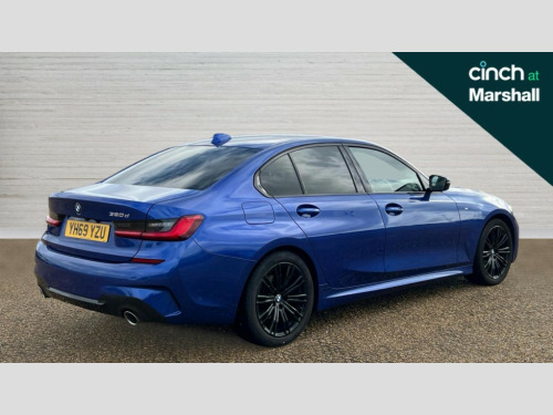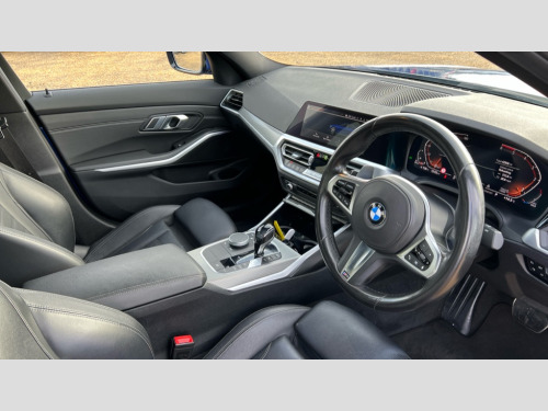 BMW 3 Series 320d M Sport 4dr Step Auto Active guard plus, Attentiveness assist, Auto start-stop, BMW iDrive controller on centre console, BMW Live Cockpit Professional sat nav system including 10.25" high resolution display and Intelligent Voice Assistant, BMW Online services, BMW Teleservices, Brake pad wear indicator in front and rear, Check Control warning system for monitoring of lights and door/luggage compartment open warning, Condition based service, Instrument cluster with speedometer with mph readout, tachometer, fuel gauge and oil temperature gauge, Oil sensor for level and grade, On board computer - average speed+fuel consumption, service interval, clock/date, odometer/trip meter, outside temperature display and ice warning, Optimum shift indicator, Personal Profile, Variable sport steering, Battery cut-out switch, Diesel particulate filter, Electronic differential lock, Incorrect fuelling protection, Larger capacity fuel tank, M sport suspension, Sport automatic transmission with steering-wheel mounted gearshift paddles and launch control, Stroke dependent dampers, DAB tuner, Acoustic glazing, Active airstream chrome frame kidney grille with 8 high gloss black vertical slats, Automatic headlight beam throw control with load dependent regulating reaction, dynamic compensation of braking dive and acceleration squat, Black roof mouldings, Body colour - fuel filler flap, front and rear bumpers, door handles and mirror caps with integrated turn indicator + bottom segment in matt black, Dynamic brake lights, Extended LED headlights, Exterior mirrors - electrically folding with anti-dazzle, Front and rear bumper system with replaceable deformation elements, Front and rear electric windows with open and close fingertip control, anti trap facility and comfort closing, Front black door sill finishers with BMW designation, Green tinted heat protection glazing, High gloss shadow line exterior trim, Interior rear view electrochromatic mirror with automatic anti dazzle function, LED front fog lights, Left and right split exhaust tailpipes, Lightweight engineering, M aerodynamic body styling, M designation on left and right front side panels, M designation side badges, Matt black exterior B pillar, Model designation on right side of tailgate, Rain sensor with automatic headlight activation, Shark fin antenna, Two part LED tailights in L-shape with components in smoked glass, brake light, LED turn indicator and rear fog light, Visible VIN plate, Welcome lights in interior and door handle area, Windscreen wipers with integrated washing jets, 12V power socket in front storage compartment, 2 front cupholder in centre console with clamping elements and matt black inlay, 3 rear seats with non folding headrests with 3 point seat belts, 3 spoke M leather steering wheel, 4 pieces lashing eyelets in luggage compartment, 40:20:40 split folding rear bench seat, Ambient lighting, Anthracite headlining, Armrest integrated in front and rear door trim + front centre console armrest, Centred top Luggage compartment lights, Four grab handles integrated in roof lining, Front and rear door pockets, Front and rear velour floor mats, Front head restraints, Front sport seats, Heated driver and front passenger seats, Height adjustable mechanically and infinitely variable steering column, Illuminated glove compartment with separate small compartment, Interior lighting - front centre over interior mirror with soft light, rear centre and front and rear footwell lighting, Rear centre armrest with 2 cupholders, Rear centre console with storage compartment and ventilation grille, Steering column length adjustment lever, Sunvisors with vanity mirrors and ticket pocket, Three zone automatic air conditioning, Through loading system with 40/20/40 split folding rear seat, Toolkit located in luggage compartment, Connected pack professional - 3 Series Saloon/Touring, M Aerodynamics pack - 3 Series Saloon/Touring, 2 tone horn, ABS, Automatic Stability Control (ASC), BMW emergency call, Brake assist function, Brake drying, Brake energy regeneration, Braking pre-tensioning, Child proof locking system in rear door, Child seat ISOFIX attachment rear outer seats, Cornering brake control (CBC), Crash sensor activating of airbags, Unlocking doors, hazard warning lights, interior light, safety battery terminal, Driver and front passenger side airbags, integrated in the door side seat backrest bolsters for all seat variants, Driver/Front Passenger airbags, Dynamic brake control, Dynamic Traction Control - DTC, Electromechanical parking brake with automatic drive away release and auto hold function, Front passenger manual airbag deactivation, Head airbags for all 4 outer seats, Hill start assist, Seat belt security check for driver and front passenger, Side impact protection, Three 3 point seat belts on all seats including front belt stopper, pyrotechnic belt tensioners and belt force limiters, Tyre pressure monitoring with three level warning strategy, Ventilated front and rear disc brakes, Warning triangle and first aid kit, Alarm system (Thatcham 1) with remote control and electronic engine immobiliser, Central locking switch for all doors, fuel filler cap and luggage compartment, Remote control with integrated key one button open/close vehicle and windows, sole opening of the luggage compartment lid and panic mode, Selectable automatic lock when driving away, Start/stop button with Comfort Go keyless engine start and auto Start/stop deactivation button, Vehicle key with M specific designation, Reduced rolling resistance tyres