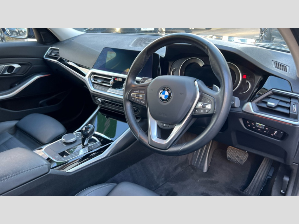 BMW 3 Series 320d xDrive Sport 5dr Step Auto Active guard plus, Attentiveness assist, Auto start-stop, BMW ConnectedDrive online services, BMW iDrive controller on centre console, BMW Live Cockpit Plus with 8.8" central information display + nav function, BMW service history, BMW Teleservices, Brake pad wear indicator in front and rear, Check Control warning system for monitoring of lights and door/luggage compartment open warning, Condition based service, Cruise control with brake function + speed limiter, Electric power steering, Electric power steering with Servotronic steering optimised at all speed ranges, Instrument cluster with speedometer with mph readout, tachometer, fuel gauge and oil temperature gauge, Integrated owners handbook, Oil sensor for level and grade, warning by check control system, On board computer - average speed+fuel consumption, service interval, clock/date, odometer/trip meter, outside temperature display and ice warning, Optimum shift indicator, Personal Profile - automatic lock when driving away selectable, Balanced 50/50 weight distribution, Battery cut-out switch, Diesel particulate filter, Drive performance control - ECO PRO, comfort and sport modes, Incorrect fuelling protection, Larger capacity fuel tank, Sport automatic transmission with steering-wheel mounted gearshift paddles and launch control, Stroke dependent dampers, xDrive system permanent all-wheel drive variable torque distribution, DAB tuner, Electronic service booklet, Acoustic glazing, Active airstream chrome frame kidney grille with 8 high gloss black vertical slats, Automatic headlight beam throw control with load dependent regulating reaction, dynamic compensation of braking dive and acceleration squat, BMW Individual high gloss shadow line roof rails, Body colour roof mouldings, Brushed aluminium inserts in the front door sill finishers with BMW designation, Dynamic brake lights, Electric windows - front and rear, with open/close fingertip control, anti-trap facility and comfort closing, Exhaust tailpipe - split left and right, Extended LED headlights, Exterior mirrors - electrically folding with anti-dazzle, Fading support, Front and rear bumper system with replaceable deformation elements, Green tinted heat protection glazing, High gloss black front bumper with specific design elements, High gloss black rear bumper with specific design elements, High gloss shadow line exterior trim, Interior rear view electrochromatic mirror with automatic anti dazzle function, LED front fog lights, Lightweight engineering, Matt black exterior B pillar, Rain sensor with automatic headlight activation, Rear wiper, Shark fin antenna, T-shaped design element right and left in black high gloss, Two part LED tailights in L-shape with components in smoked glass, brake light, LED turn indicator and rear fog light, Visible VIN plate, Welcome lights in interior and door handle area, Windscreen wipers with integrated washing jets, xDrive designation on right tailgate, 12V power socket in front storage compartment, 2 front cupholder in centre console with clamping elements and matt black inlay, 3 rear seats with non folding headrests with 3 point seat belts, 3 zone automatic air conditioning, 4 pieces lashing eyelets in luggage compartment, 40:20:40 split folding rear seat with loading system, Ambient lighting with welcome carpet light, Armrest integrated in front and rear door trim + front centre console armrest, Centred top Luggage compartment lights, Four grab handles integrated in roof lining, Front and rear door exit lighting (left / right), Front and rear door pockets, Front and rear reading lights, Front and rear velour floor mats, Front head restraints, Front sport seats, Heated driver and front passenger seats, Height adjustable mechanically and infinitely variable steering column, Illuminated armrest storage compartment, Illuminated glove compartment with separate small compartment, Interior lighting - front centre over interior mirror with soft light, rear centre and front and rear footwell lighting, Make-up mirror lights, Rear centre armrest with 2 cupholders, Rear centre console with storage compartment and ventilation grille, Sunvisors with vanity mirrors and ticket pocket, Three spoke multifunction sport leather steering wheel, Toolkit located in luggage compartment, Vernasca leather upholstery with contrast stitching, Connected pack plus - 3 Series Saloon/Touring, Parking assistant pack - 3 Series, 2 tone horn, BMW emergency call, Brake energy regeneration, Braking pre-tensioning, Child proof locking system in rear door, Child seat ISOFIX attachment rear outer seats, Coasting in idle in ECO PRO mode, Crash sensor activating of airbags, Unlocking doors, hazard warning lights, interior light, safety battery terminal, Driver and front passenger side airbags, integrated in the door side seat backrest bolsters for all seat variants, Driver/Front Passenger airbags, Dry braking, Dynamic brake control, Dynamic stability control + (DSC+) - Anti-lock Braking System (ABS) with brake assist and cornering brake control + Automatic Stability Control (ASC), Dynamic Traction Control - DTC, Electric parking brake including automatic hold function and automatic release of the parking brake when driving off, Electronic differential lock control (EDLC), Front passenger manual airbag deactivation, Head airbags for all 4 outer seats, Hill start assist, Seat belt security check for driver and front passenger, Side impact protection, Three 3 point seat belts on all seats including front belt stopper, pyrotechnic belt tensioners and belt force limiters, Tyre pressure monitoring with three level warning strategy, Ventilated front and rear disc brakes, Warning triangle and first aid kit, Alarm system (Thatcham 1) with remote control and electronic engine immobiliser, Central locking switch for all doors, fuel filler cap and luggage compartment, Remote control with integrated key one button open/close vehicle and windows, s