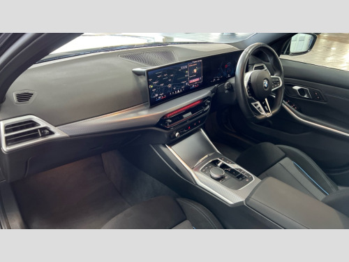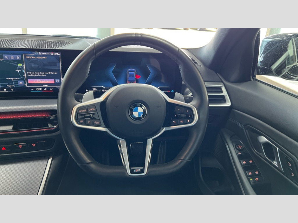 BMW 3 Series 320i M Sport 4dr Step Auto Active guard plus, Attentiveness assist, Automatic Start/stop button, Bluetooth Wi-Fi interface, BMW iDrive, BMW Teleservices, ConnectedDrive Services - last state call, Live cockpit plus with Navigation + 12.3" instrument display + 14.9" display, Intelligent voice assist, 2 USB, 4G LTE connect, Oil sensor for level and grade, Personal e-SIM, Shifting point display, Variable sport steering, Double joint spring strut front axle, Fuel tank breather system, Steptronic Sport automatic transmission with steering wheel mounted gearshift paddles launch control and xtreme drive lever control, DAB tuner, 3rd brake light, Auto dimming rear view mirror, Automatic headlight beam throw control with load dependent regulating reaction, dynamic compensation of braking dive and acceleration squat, Bi-LED Low and high beam headlights, BMW emblem, engine compartment lid and tailgate, Body colour roof fin, Door sill strips, Electric windows - front and rear, with open/close fingertip control, anti-trap facility and comfort closing, Fading support, Follow me home headlight function, Front and rear bumper system with replaceable deformation elements, Front apron plastic in body colour, Fuel filler flap - right rear in body colour, Heat protection glazing on front windows and windscreen, Heated washer jets, High gloss chrome kidney frame with high gloss black kidney struts, LED daytime running lights, LED rear lights, LED turn indicator, Licence plate panel integrated into front bumper and tailgate, M high gloss shadow line exterior trim, Matt black B-pillar finsher, Matt black window recess cover, One piece front bumper cover including towing eye cover in body colour, Rain sensor with automatic headlight activation, Rear boot, Rear side wing doors, Reversing lights, Side frame decorative moulding black matt, Trailer stabilisation logic, Visible exhaust tailpipe finisher, Welcome lights in interior and door handle area, 12V power socket in front storage compartment, 2 front cupholder in centre console with clamping elements and matt black inlay, 3 seat bench in 2nd row, 3 spoke M Sport multifunction flat bottom leather steering wheel, 3 zone automatic air conditioning, 40:20:40 split folding rear seat with loading system, Anthracite headlining, Armrest integrated in front and rear door trim + front centre console armrest, BMW ID, Cruise control operation in steering wheel, Driving experience mode switch, Folding rear centre armrest with 2 cupholders, Front and rear headrests, Front and rear velour floor mats, Front reading light, Heated front seats, Height adjustable mechanically and infinitely variable steering column, Illuminated armrest storage compartment, Illuminated glove compartment, Illuminated luggage compartment, Lashing eyelets in luggage compartment, Single front passenger seat, Sunvisors with illuminated vanity mirrors and ticket pocket, Toolkit located in luggage compartment, Connected pack professional - 3 Series Saloon/Touring, Interior and exterior mirror pack - 3 Series Touring/Saloon, M sport exterior styling pack - 3 Series Saloon/Touring, Parking assistant pack - 3 Series, 3x3 point rear seatbelts, BMW emergency call, Child locks on rear doors, Crash sensor activating of airbags, Unlocking doors, hazard warning lights, interior light, safety battery terminal, Drive-off assistant, Driver and front passenger with seat occupancy detection for driver's and passenger side, Driver and passenger side airbags, body protection at side and airbags deploy from seat backrests, Dry braking, Dynamic brake control, Dynamic stability control + (DSC+) - Anti-lock Braking System (ABS) with brake assist and cornering brake control + Automatic Stability Control (ASC), Dynamic Traction Control - DTC, Electric parking brake including automatic hold function and automatic release of the parking brake when driving off, Electronic differential lock control (EDLC), Front airbag deactivation, Front airbags for driver and front passenger, Head airbags in 1st and 2nd row, head protection at side, curtain airbags open from headliner above 1st and 2nd row, Plastic fuel tank, Side impact protection, Tyre pressure sensors, Ventilated front and rear disc brakes, Warning triangle and first aid kit, Alarm system, Centre lock switch, Closing system with central locking, Electronic vehicle immobiliser, Locking wheel bolts