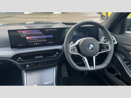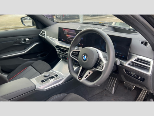 BMW 3 Series 320i M Sport 4dr Step Auto Active guard plus, Attentiveness assist, Automatic Start/stop button, Bluetooth Wi-Fi interface, BMW iDrive, BMW Teleservices, ConnectedDrive Services - last state call, Live cockpit plus with Navigation + 12.3" instrument display + 14.9" display, Intelligent voice assist, 2 USB, 4G LTE connect, Oil sensor for level and grade, Personal e-SIM, Shifting point display, Variable sport steering, Double joint spring strut front axle, Fuel tank breather system, Steptronic Sport automatic transmission with steering wheel mounted gearshift paddles launch control and xtreme drive lever control, DAB tuner, 3rd brake light, Auto dimming rear view mirror, Automatic headlight beam throw control with load dependent regulating reaction, dynamic compensation of braking dive and acceleration squat, Bi-LED Low and high beam headlights, BMW emblem, engine compartment lid and tailgate, Body colour roof fin, Door sill strips, Electric windows - front and rear, with open/close fingertip control, anti-trap facility and comfort closing, Fading support, Folding wing mirror with auto dimming, Follow me home headlight function, Front and rear bumper system with replaceable deformation elements, Front apron plastic in body colour, Fuel filler flap - right rear in body colour, Heat protection glazing on front windows and windscreen, Heated washer jets, High gloss chrome kidney frame with high gloss black kidney struts, LED daytime running lights, LED rear lights, LED turn indicator, Licence plate panel integrated into front bumper and tailgate, M high gloss shadow line exterior trim, Matt black B-pillar finsher, Matt black window recess cover, Model designation on right side of tailgate, One piece front bumper cover including towing eye cover in body colour, Rain sensor with automatic headlight activation, Rear boot, Rear side wing doors, Reversing lights, Side frame decorative moulding black matt, Trailer stabilisation logic, Visible exhaust tailpipe finisher, Welcome lights in interior and door handle area, 12V power socket in front storage compartment, 2 front cupholder in centre console with clamping elements and matt black inlay, 3 seat bench in 2nd row, 3 spoke M Sport multifunction flat bottom leather steering wheel, 3 zone automatic air conditioning, 40:20:40 split folding rear seat with loading system, Anthracite headlining, Armrest integrated in front and rear door trim + front centre console armrest, BMW ID, Cruise control operation in steering wheel, Driving experience mode switch, Folding rear centre armrest with 2 cupholders, Front and rear headrests, Front and rear velour floor mats, Front reading light, Heated front seats, Height adjustable mechanically and infinitely variable steering column, Illuminated armrest storage compartment, Illuminated glove compartment, Illuminated luggage compartment, Lashing eyelets in luggage compartment, Single front passenger seat, Sunvisors with illuminated vanity mirrors and ticket pocket, Toolkit located in luggage compartment, Connected pack professional - 3 Series Saloon/Touring, Interior and exterior mirror pack - 3 Series Touring/Saloon, M sport exterior styling pack - 3 Series Saloon/Touring, Parking assistant pack - 3 Series, 3x3 point rear seatbelts, BMW emergency call, Child locks on rear doors, Crash sensor activating of airbags, Unlocking doors, hazard warning lights, interior light, safety battery terminal, Drive-off assistant, Driver and front passenger with seat occupancy detection for driver's and passenger side, Driver and passenger side airbags, body protection at side and airbags deploy from seat backrests, Dry braking, Dynamic brake control, Dynamic stability control + (DSC+) - Anti-lock Braking System (ABS) with brake assist and cornering brake control + Automatic Stability Control (ASC), Dynamic Traction Control - DTC, Electric parking brake including automatic hold function and automatic release of the parking brake when driving off, Electronic differential lock control (EDLC), Front airbag deactivation, Front airbags for driver and front passenger, Head airbags in 1st and 2nd row, head protection at side, curtain airbags open from headliner above 1st and 2nd row, Plastic fuel tank, Side impact protection, Tyre pressure sensors, Ventilated front and rear disc brakes, Warning triangle and first aid kit, Alarm system, Centre lock switch, Closing system with central locking, Electronic vehicle immobiliser, Locking wheel bolts, Tyre repair kit