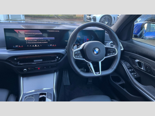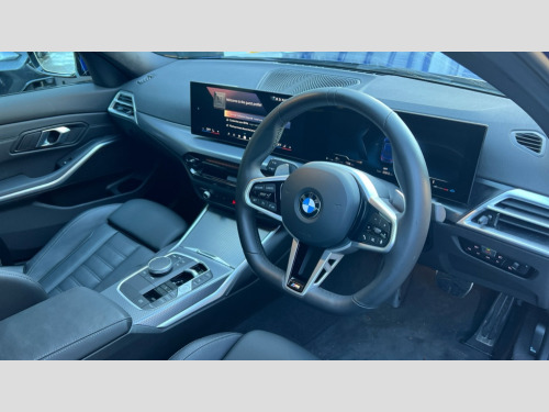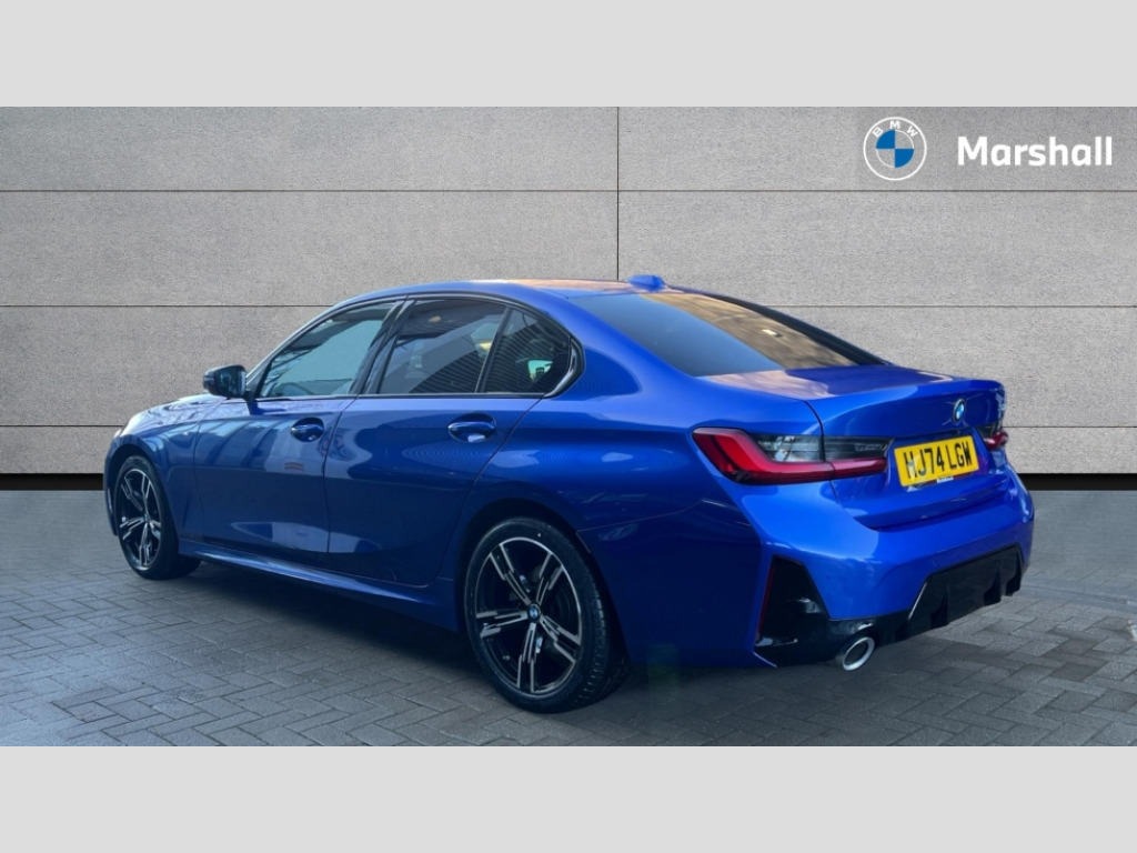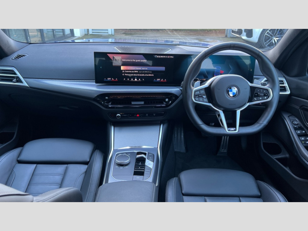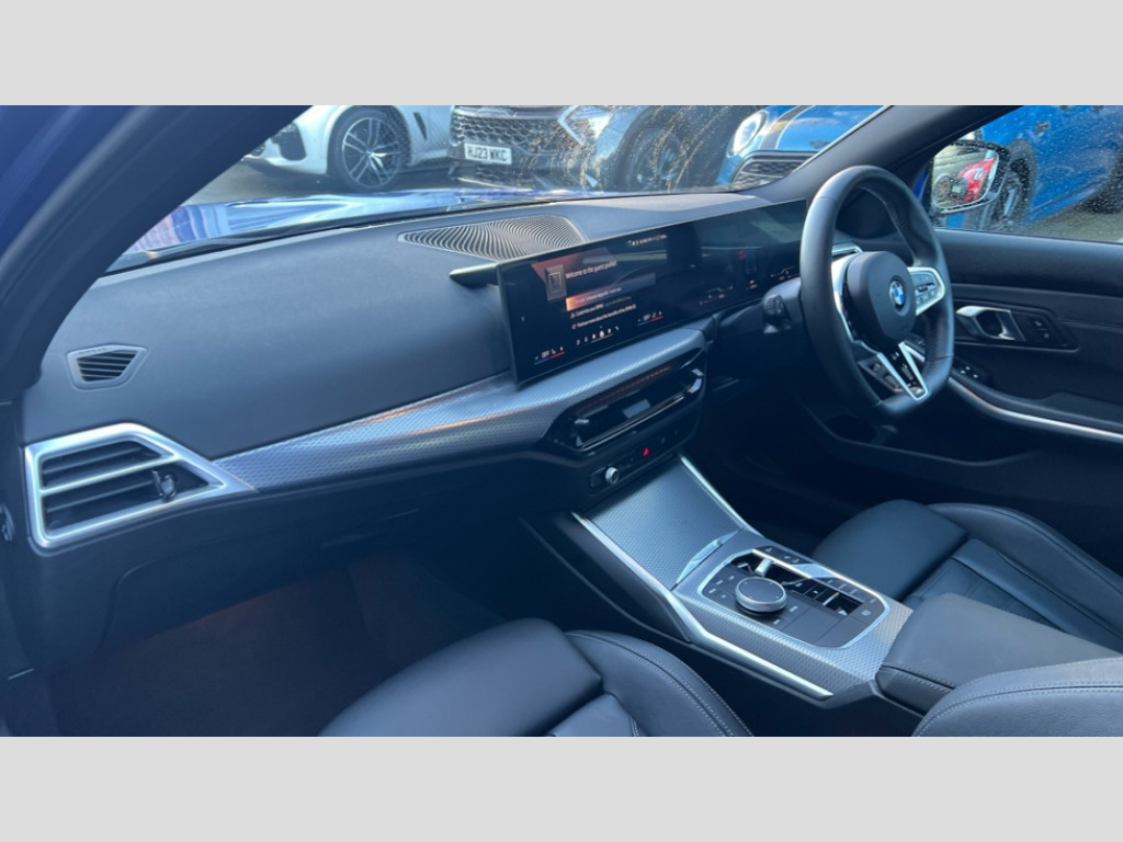 BMW 3 Series 320i M Sport 4dr Step Auto Active guard plus, Attentiveness assist, Automatic Start/stop button, Bluetooth Wi-Fi interface, BMW iDrive, BMW Teleservices, ConnectedDrive Services - last state call, Live cockpit plus with Navigation + 12.3" instrument display + 14.9" display, Intelligent voice assist, 2 USB, 4G LTE connect, Oil sensor for level and grade, Personal e-SIM, Shifting point display, Variable sport steering, Double joint spring strut front axle, Electronic differential lock control (EDLC), Fuel tank breather system, Sport automatic transmission with steering-wheel mounted gearshift paddles and launch control, DAB tuner, 3rd brake light, Auto dimming rear view mirror, Automatic headlight beam throw control with load dependent regulating reaction, dynamic compensation of braking dive and acceleration squat, Bi-LED Low and high beam headlights, BMW emblem, engine compartment lid and tailgate, Body colour roof fin, Door sill strips, Electric windows - front and rear, with open/close fingertip control, anti-trap facility and comfort closing, Fading support, Follow me home headlight function, Front and rear bumper system with replaceable deformation elements, Front apron plastic in body colour, Fuel filler flap - right rear in body colour, Heat protection glazing on front windows and windscreen, Heated washer jets, High gloss chrome kidney frame with high gloss black kidney struts, LED daytime running lights, LED rear lights, LED turn indicator, Licence plate panel integrated into front bumper and tailgate, M high gloss shadow line exterior trim, Matt black B-pillar finsher, Matt black window recess cover, One piece front bumper cover including towing eye cover in body colour, Rain sensor with automatic headlight activation, Rear boot, Rear side wing doors, Reversing lights, Side frame decorative moulding black matt, Trailer stabilisation logic, Visible exhaust tailpipe finisher, Welcome lights in interior and door handle area, 12V power socket in front storage compartment, 2 front cupholder in centre console with clamping elements and matt black inlay, 3 seat bench in 2nd row, 3 spoke M Sport multifunction flat bottom leather steering wheel, 3 zone automatic air conditioning, 40:20:40 split folding rear seat with loading system, Anthracite headlining, Armrest integrated in front and rear door trim + front centre console armrest, BMW ID, Cruise control operation in steering wheel, Driving experience mode switch, Folding rear centre armrest with 2 cupholders, Front and rear headrests, Front and rear velour floor mats, Front footwell lighting, Front reading light, Heated front seats, Height adjustable mechanically and infinitely variable steering column, Illuminated armrest storage compartment, Illuminated glove compartment, Illuminated luggage compartment, Lashing eyelets in luggage compartment, Single front passenger seat, Sunvisors with illuminated vanity mirrors and ticket pocket, Toolkit located in luggage compartment, Connected pack professional - 3 Series Saloon/Touring, Interior and exterior mirror pack - 3 Series Touring/Saloon, M sport exterior styling pack - 3 Series Saloon/Touring, Parking assistant pack - 3 Series, 3x3 point rear seatbelts, BMW emergency call, Child locks on rear doors, Crash sensor activating of airbags, Unlocking doors, hazard warning lights, interior light, safety battery terminal, Drive-off assistant, Driver and front passenger with seat occupancy detection for driver's and passenger side, Driver and passenger side airbags, body protection at side and airbags deploy from seat backrests, Dry braking, Dynamic brake control, Dynamic stability control + (DSC+) - Anti-lock Braking System (ABS) with brake assist and cornering brake control + Automatic Stability Control (ASC), Dynamic Traction Control - DTC, Electric parking brake including automatic hold function and automatic release of the parking brake when driving off, Front airbag deactivation, Front airbags for driver and front passenger, Head airbags in 1st and 2nd row, head protection at side, curtain airbags open from headliner above 1st and 2nd row, Plastic fuel tank, Side impact protection, Tyre pressure sensors, Ventilated front and rear disc brakes, Warning triangle and first aid kit, Alarm system, Centre lock switch, Closing system with central locking, Electronic vehicle immobiliser, Locking wheel bolts