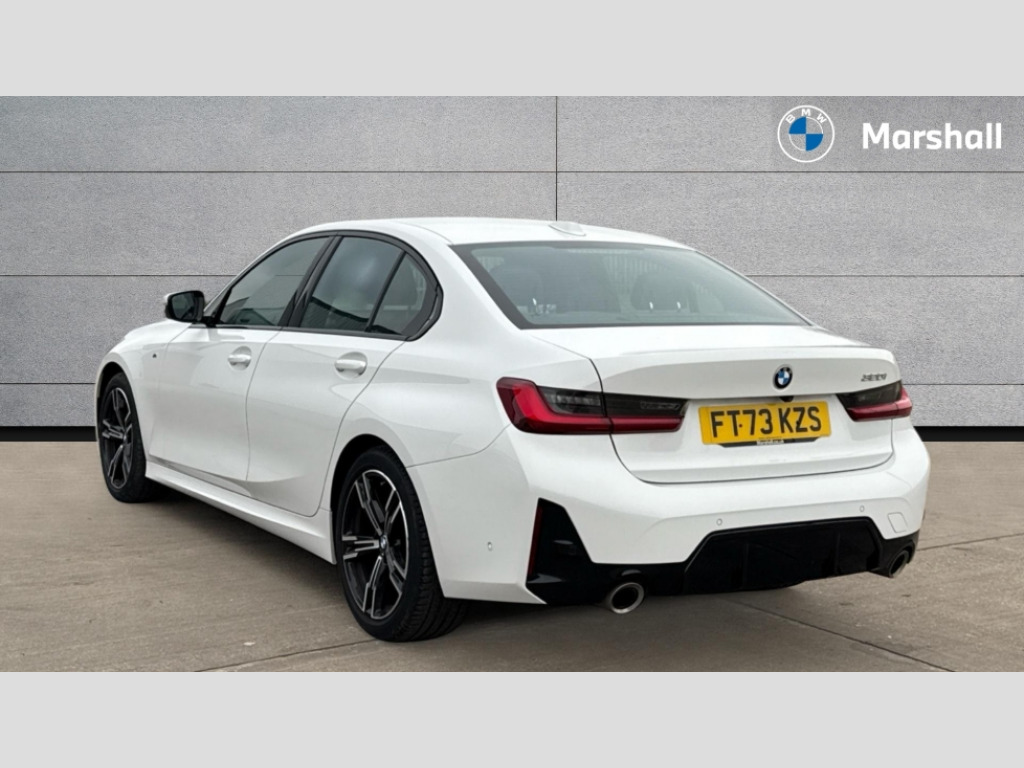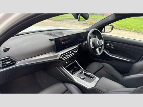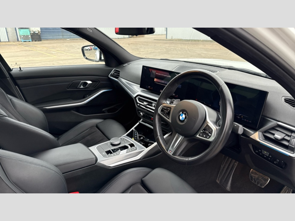 BMW 3 Series 320i M Sport 4dr Step Auto Active guard plus, Attentiveness assist, Automatic Start/stop button, BMW iDrive, BMW Teleservices, Condition based service, ConnectedDrive Services, Driving experience switch, Live cockpit plus with Navigation + 12.3" instrument display + 14.9" display, Intelligent voice assist, 2 USB, 4G LTE connect, Oil sensor for level and grade, Preparation for driver assistance, Shifting point display, Variable sport steering, Double joint spring strut front axle, Electronic differential lock control (EDLC), Fuel tank breather system, M sport suspension, Sport automatic transmission with steering-wheel mounted gearshift paddles and launch control, DAB tuner, 3rd brake light, Acoustic glazing, Automatic headlight beam throw control with load dependent regulating reaction, dynamic compensation of braking dive and acceleration squat, BMW emblem, engine compartment lid and tailgate, Body colour roof fin, Door sill strips, Electric windows - front and rear, with open/close fingertip control, anti-trap facility and comfort closing, Follow me home headlight function, Front and rear bumper system with replaceable deformation elements, Front apron plastic in body colour, Fuel filler flap - right rear in body colour, Heated washer jets, High gloss shadow line exterior trim, Illuminated bow type door handles in body colour drivers side with door lock, Interior rear view electrochromatic mirror with automatic anti dazzle function, LED headlights with LED daytime running lights and LED turn indicator, LED rear lights, Licence plate panel integrated into front bumper and tailgate, Matt black B-pillar finsher, Matt black window recess cover, Model designation on right side of tailgate, One piece front bumper cover including towing eye cover in body colour, Rain sensor with automatic headlight activation, Rear boot, Rear side wing doors, Reversing lights, Side frame decorative moulding black matt, Visible exhaust tailpipe finisher, Welcome lights in interior and door handle area, 12V power socket in front storage compartment, 2 front cupholder in centre console with clamping elements and matt black inlay, 3 seat bench in 2nd row, 3 zone automatic air conditioning, 40:20:40 split folding rear seat with loading system, Ambient inside door handle light, Ambient light design projected onto the left and right entering and exiting area, Ambient lighting front and rear with 9 selectable colours, Ambient storage compartment lighting in the centre console, Anthracite headlining, Armrest integrated in front and rear door trim + front centre console armrest, BMW ID, Contour lighting in instrument panel and door trim panel, Cruise control operation in steering wheel, Driver backrest width adjustment, Folding rear centre armrest with 2 cupholders, Front and rear ambient footwell lighting, Front and rear door exit lighting (left / right), Front and rear headrests, Front and rear reading lights, Front and rear velour floor mats, Front sport seats, Heated front seats, Height adjustable mechanically and infinitely variable steering column, Illuminated armrest storage compartment, Illuminated glove compartment, Illuminated luggage compartment, Lashing eyelets in luggage compartment, M Sport multifunction leather steering wheel, Make-up mirror lights, Single front passenger seat, Standard seat for driver and passenger with manual adjustment, Sunvisors with vanity mirrors and ticket pocket, Toolkit located in luggage compartment, Connected pack professional - 3 Series Saloon/Touring, Interior and exterior mirror pack - 3 Series Touring/Saloon, M Aerodynamics package - 3 Series Saloon/Touring, M sport exterior styling pack - 3 Series Saloon/Touring, Storage compartment pack - 3 Series Saloon/Touring, 3x3 point rear seatbelts, BMW emergency call, Child locks on rear doors, Crash sensor activating of airbags, Unlocking doors, hazard warning lights, interior light, safety battery terminal, Driver and front passenger with seat occupancy detection for driver's and passenger side, Driver and passenger side airbags, body protection at side and airbags deploy from seat backrests, Dynamic brake control, Dynamic stability control + (DSC+) - Anti-lock Braking System (ABS) with brake assist and cornering brake control + Automatic Stability Control (ASC), Dynamic Traction Control - DTC, Electric parking brake including automatic hold function and automatic release of the parking brake when driving off, Head airbags in 1st and 2nd row, head protection at side, curtain airbags open from headliner above 1st and 2nd row, Plastic fuel tank, Side impact protection, Tyre pressure monitoring with three level warning strategy, Ventilated front and rear disc brakes, Warning triangle and first aid kit, Alarm system, Centre lock switch, Closing system with central locking, Electronic vehicle immobiliser