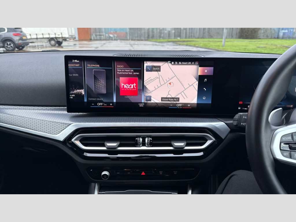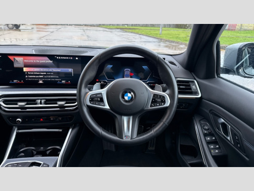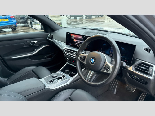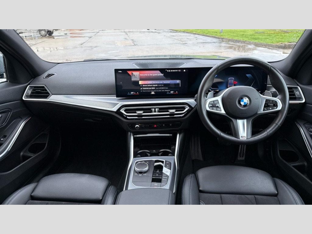 BMW 3 Series 320i M Sport 4dr Step Auto Active guard plus, Attentiveness assist, Automatic Start/stop button, BMW iDrive, BMW Teleservices, Condition based service, ConnectedDrive Services, Driving experience switch, Live cockpit plus with Navigation + 12.3" instrument display + 14.9" display, Intelligent voice assist, 2 USB, 4G LTE connect, Oil sensor for level and grade, PAS, Preparation for driver assistance, Shifting point display, Variable sport steering, Double joint spring strut front axle, Electronic differential lock control (EDLC), Fuel tank breather system, Sport automatic transmission with steering-wheel mounted gearshift paddles and launch control, DAB tuner, 3rd brake light, Auto dimming rear view mirror, Auto dimming with folding wing mirrors, Automated High beam assist, Automatic headlight beam throw control with load dependent regulating reaction, dynamic compensation of braking dive and acceleration squat, BMW emblem, engine compartment lid and tailgate, Body colour roof fin, Door sill strips, Electric windows - front and rear, with open/close fingertip control, anti-trap facility and comfort closing, Follow me home headlight function, Front and rear bumper system with replaceable deformation elements, Front apron plastic in body colour, Fuel filler flap - right rear in body colour, Heated washer jets, High gloss shadow line exterior trim, Illuminated bow type door handles in body colour drivers side with door lock, Interior rear view electrochromatic mirror with automatic anti dazzle function, LED headlights with LED daytime running lights and LED turn indicator, LED rear lights, Licence plate panel integrated into front bumper and tailgate, Matt black B-pillar finsher, Matt black window recess cover, Model designation on right side of tailgate, One piece front bumper cover including towing eye cover in body colour, Rain sensor with automatic headlight activation, Rear boot, Rear side wing doors, Reversing lights, Side frame decorative moulding black matt, Visible exhaust tailpipe finisher, Welcome lights in interior and door handle area, 12V power socket in front storage compartment, 2 front cupholder in centre console with clamping elements and matt black inlay, 3 seat bench in 2nd row, 3 zone automatic air conditioning, 40:20:40 split folding rear seat with loading system, Ambient inside door handle light, Ambient light design projected onto the left and right entering and exiting area, Ambient storage compartment lighting in the centre console, Anthracite headlining, Armrest integrated in front and rear door trim + front centre console armrest, BMW ID, Contour lighting in instrument panel and door trim panel, Cruise control operation in steering wheel, Driving experience mode switch, Extended storage, Folding rear centre armrest with 2 cupholders, Front and rear ambient footwell lighting, Front and rear door exit lighting (left / right), Front and rear headrests, Front and rear reading lights, Front and rear velour floor mats, Heated front seats, Height adjustable mechanically and infinitely variable steering column, Illuminated armrest storage compartment, Illuminated glove compartment, Illuminated luggage compartment, Lashing eyelets in luggage compartment, M Sport multifunction leather steering wheel, Make-up mirror lights, Single front passenger seat, Standard seat for driver and passenger with manual adjustment, Sunvisors with illuminated vanity mirrors and ticket pocket, Toolkit located in luggage compartment, Connected pack professional - 3 Series Saloon/Touring, Interior and exterior mirror pack - 3 Series Touring/Saloon, M Aerodynamics package - 3 Series Saloon/Touring, M sport exterior styling pack - 3 Series Saloon/Touring, Parking assistant pack - 3 Series, Storage compartment pack - 3 Series Saloon/Touring, 3x3 point rear seatbelts, BMW emergency call, Child locks on rear doors, Crash sensor activating of airbags, Unlocking doors, hazard warning lights, interior light, safety battery terminal, Driver and front passenger with seat occupancy detection for driver's and passenger side, Driver and passenger side airbags, body protection at side and airbags deploy from seat backrests, Dynamic brake control, Dynamic stability control + (DSC+) - Anti-lock Braking System (ABS) with brake assist and cornering brake control + Automatic Stability Control (ASC), Dynamic Traction Control - DTC, Electric parking brake including automatic hold function and automatic release of the parking brake when driving off, Front airbag deactivation, Head airbags in 1st and 2nd row, head protection at side, curtain airbags open from headliner above 1st and 2nd row, Plastic fuel tank, Side impact protection, Tyre pressure monitoring with three level warning strategy, Ventilated front and rear disc brakes, Warning triangle and first aid kit, Alarm system, Centre lock switch, Closing system with central locking, Electronic vehicle immobiliser, Locking wheel bolts, Tyre repair kit