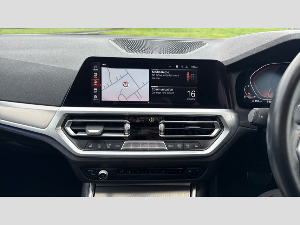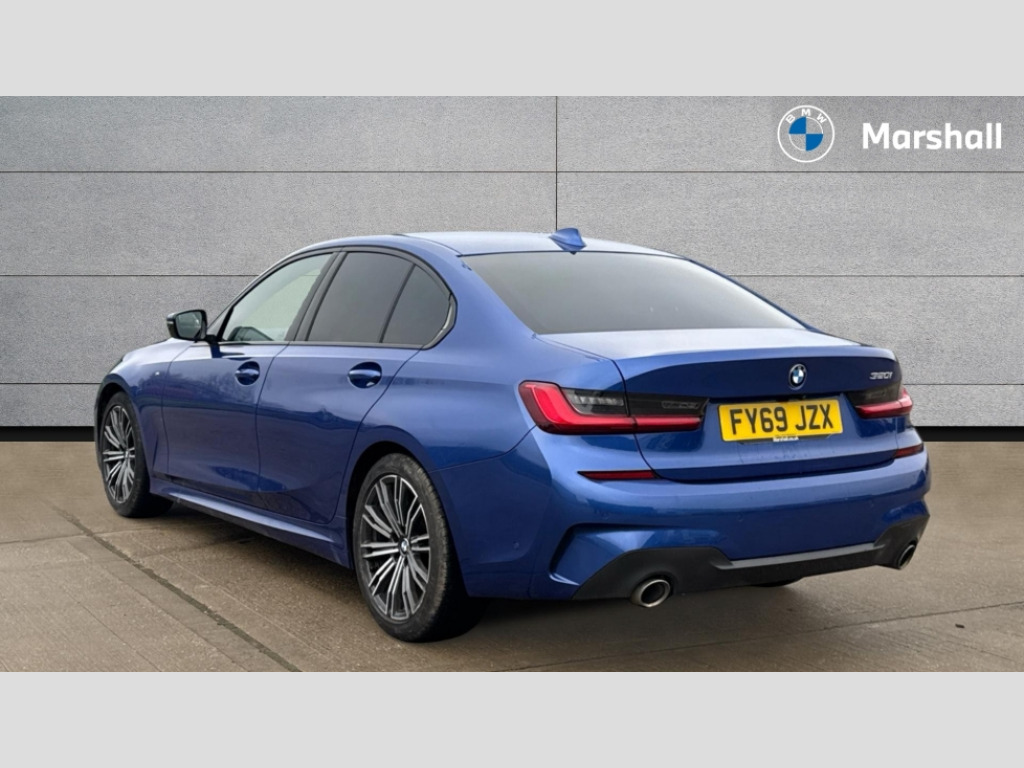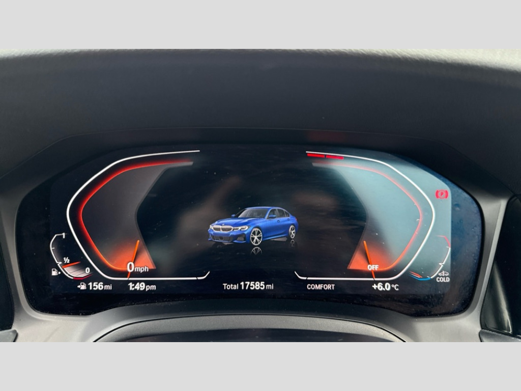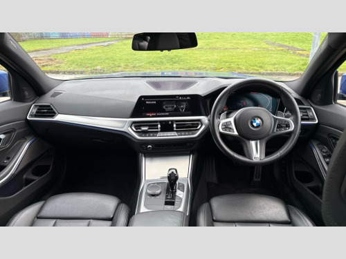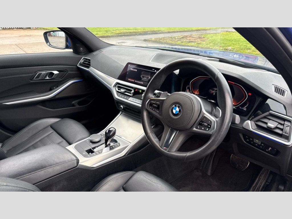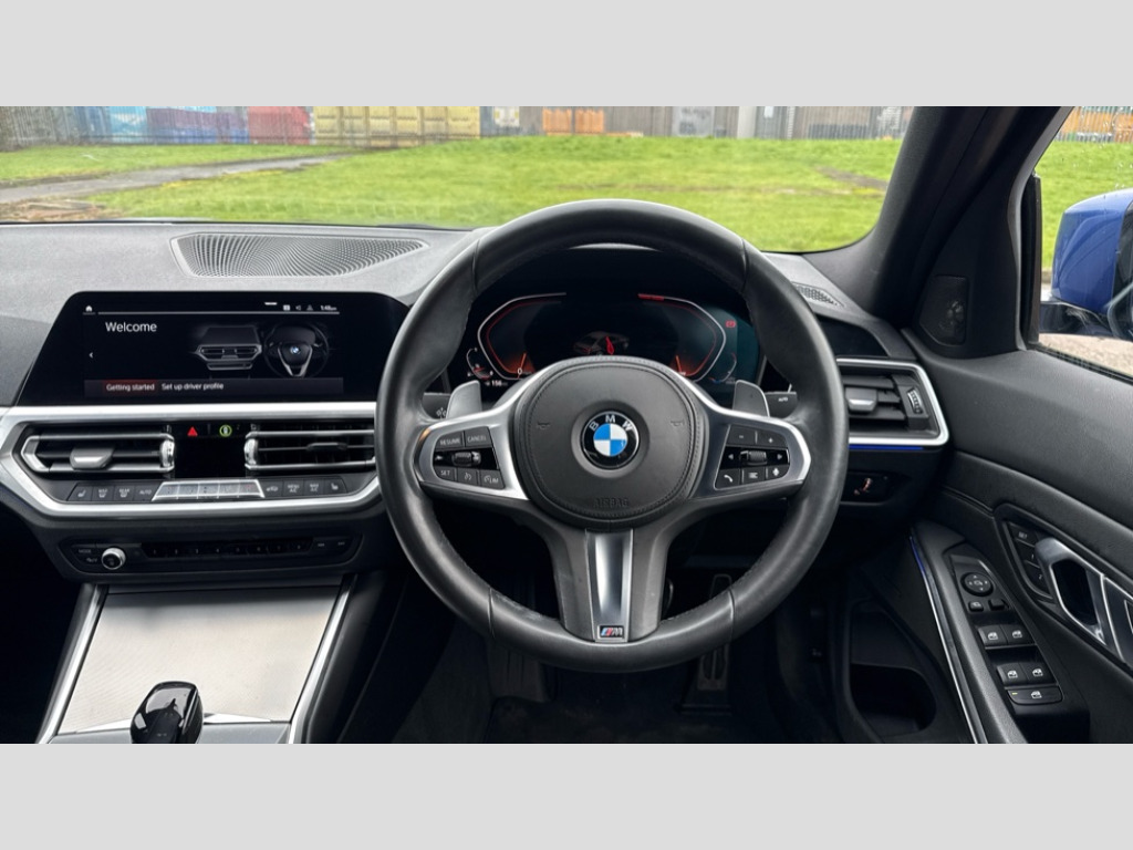 BMW 3 Series 320i M Sport 4dr Step Auto Active guard plus, Attentiveness assist, Auto start-stop, BMW iDrive controller on centre console, BMW Live Cockpit Professional sat nav system including 10.25" high resolution display and Intelligent Voice Assistant, BMW Online services, BMW Teleservices, Brake pad wear indicator in front and rear, Check Control warning system for monitoring of lights and door/luggage compartment open warning, Condition based service, Instrument cluster with speedometer with mph readout, tachometer, fuel gauge and oil temperature gauge, Oil sensor for level and grade, On board computer - average speed+fuel consumption, service interval, clock/date, odometer/trip meter, outside temperature display and ice warning, Optimum shift indicator, Personal Profile, Variable sport steering, Battery cut-out switch, Electronic differential lock, Larger capacity fuel tank, M sport suspension, Sport automatic transmission with steering-wheel mounted gearshift paddles and launch control, Stroke dependent dampers, DAB tuner, Acoustic glazing, Active airstream chrome frame kidney grille with 8 high gloss black vertical slats, Automatic headlight beam throw control with load dependent regulating reaction, dynamic compensation of braking dive and acceleration squat, Black roof mouldings, Body colour - fuel filler flap, front and rear bumpers, door handles and mirror caps with integrated turn indicator + bottom segment in matt black, Dynamic brake lights, Extended LED headlights, Exterior mirrors - electrically folding with anti-dazzle, Front and rear bumper system with replaceable deformation elements, Front and rear electric windows with open and close fingertip control, anti trap facility and comfort closing, Front black door sill finishers with BMW designation, Green tinted heat protection glazing, High gloss shadow line exterior trim, Interior rear view electrochromatic mirror with automatic anti dazzle function, LED front fog lights, Left and right split exhaust tailpipes, Lightweight engineering, M aerodynamic body styling, M designation on left and right front side panels, M designation side badges, Matt black exterior B pillar, Model designation on right side of tailgate, Rain sensor with automatic headlight activation, Shark fin antenna, Two part LED tailights in L-shape with components in smoked glass, brake light, LED turn indicator and rear fog light, Visible VIN plate, Welcome lights in interior and door handle area, Windscreen wipers with integrated washing jets, 12V power socket in front storage compartment, 2 front cupholder in centre console with clamping elements and matt black inlay, 3 rear seats with non folding headrests with 3 point seat belts, 3 spoke M leather steering wheel, 4 pieces lashing eyelets in luggage compartment, 40:20:40 split folding rear bench seat, Ambient lighting, Anthracite headlining, Armrest integrated in front and rear door trim + front centre console armrest, Centred top Luggage compartment lights, Four grab handles integrated in roof lining, Front and rear door pockets, Front and rear velour floor mats, Front head restraints, Front sport seats, Heated driver and front passenger seats, Height adjustable mechanically and infinitely variable steering column, Illuminated glove compartment with separate small compartment, Interior lighting - front centre over interior mirror with soft light, rear centre and front and rear footwell lighting, Rear centre armrest with 2 cupholders, Rear centre console with storage compartment and ventilation grille, Steering column length adjustment lever, Sunvisors with vanity mirrors and ticket pocket, Three zone automatic air conditioning, Through loading system with 40/20/40 split folding rear seat, Toolkit located in luggage compartment, Connected pack professional - 3 Series Saloon/Touring, M Aerodynamics pack - 3 Series Saloon/Touring, 2 tone horn, ABS, Automatic Stability Control (ASC), BMW emergency call, Brake assist function, Brake drying, Brake energy regeneration, Braking pre-tensioning, Child proof locking system in rear door, Child seat ISOFIX attachment rear outer seats, Cornering brake control (CBC), Crash sensor activating of airbags, Unlocking doors, hazard warning lights, interior light, safety battery terminal, Driver and front passenger side airbags, integrated in the door side seat backrest bolsters for all seat variants, Driver/Front Passenger airbags, Dynamic brake control, Dynamic Traction Control - DTC, Electromechanical parking brake with automatic drive away release and auto hold function, Front passenger manual airbag deactivation, Head airbags for all 4 outer seats, Hill start assist, Seat belt security check for driver and front passenger, Side impact protection, Three 3 point seat belts on all seats including front belt stopper, pyrotechnic belt tensioners and belt force limiters, Tyre pressure monitoring with three level warning strategy, Ventilated front and rear disc brakes, Warning triangle and first aid kit, Alarm system (Thatcham 1) with remote control and electronic engine immobiliser, Central locking switch for all doors, fuel filler cap and luggage compartment, Remote control with integrated key one button open/close vehicle and windows, sole opening of the luggage compartment lid and panic mode, Selectable automatic lock when driving away, Start/stop button with Comfort Go keyless engine start and auto Start/stop deactivation button, Vehicle key with M specific designation, Reduced rolling resistance tyres