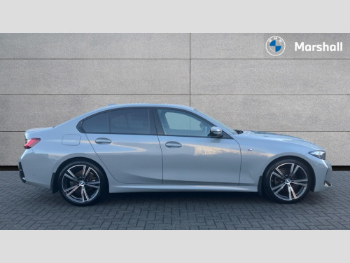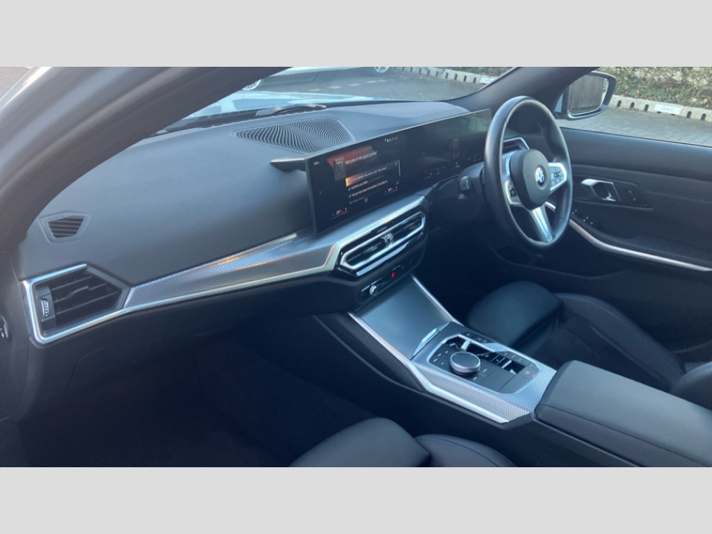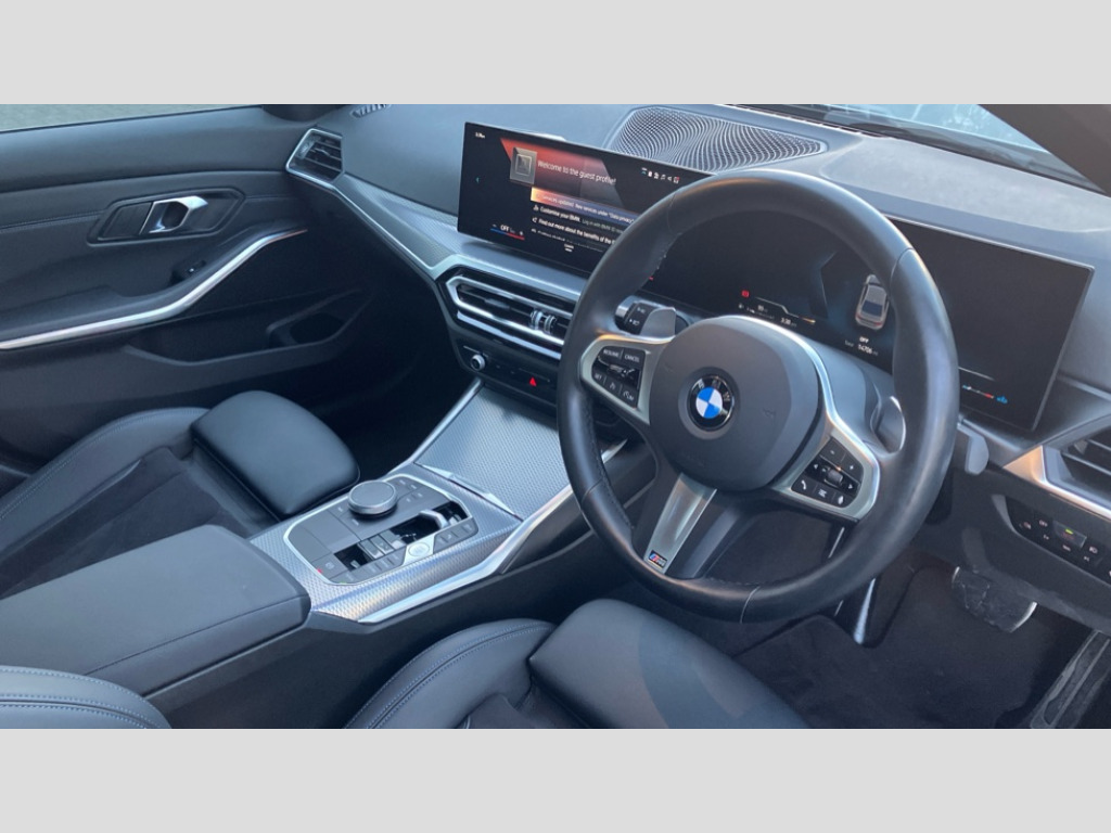 BMW 3 Series 320i M Sport 4dr Step Auto Active guard plus, Attentiveness assist, Automatic Start/stop button, BMW iDrive, BMW Teleservices, Condition based service, ConnectedDrive Services, Driving experience switch, Live cockpit plus with Navigation + 12.3" instrument display + 14.9" display, Intelligent voice assist, 2 USB, 4G LTE connect, Oil sensor for level and grade, PAS, Preparation for driver assistance, Shifting point display, Variable sport steering, Double joint spring strut front axle, Electronic differential lock control (EDLC), Fuel tank breather system, Sport automatic transmission with steering-wheel mounted gearshift paddles and launch control, DAB tuner, 3rd brake light, Auto dimming rear view mirror, Auto dimming with folding wing mirrors, Automated High beam assist, Automatic headlight beam throw control with load dependent regulating reaction, dynamic compensation of braking dive and acceleration squat, BMW emblem, engine compartment lid and tailgate, Body colour roof fin, Door sill strips, Electric windows - front and rear, with open/close fingertip control, anti-trap facility and comfort closing, Follow me home headlight function, Front and rear bumper system with replaceable deformation elements, Front apron plastic in body colour, Fuel filler flap - right rear in body colour, Heated washer jets, High gloss shadow line exterior trim, Illuminated bow type door handles in body colour drivers side with door lock, Interior rear view electrochromatic mirror with automatic anti dazzle function, LED headlights with LED daytime running lights and LED turn indicator, LED rear lights, Licence plate panel integrated into front bumper and tailgate, Matt black B-pillar finsher, Matt black window recess cover, Model designation on right side of tailgate, One piece front bumper cover including towing eye cover in body colour, Rain sensor with automatic headlight activation, Rear boot, Rear side wing doors, Reversing lights, Side frame decorative moulding black matt, Visible exhaust tailpipe finisher, Welcome lights in interior and door handle area, 12V power socket in front storage compartment, 2 front cupholder in centre console with clamping elements and matt black inlay, 3 seat bench in 2nd row, 3 zone automatic air conditioning, 40:20:40 split folding rear seat with loading system, Ambient inside door handle light, Ambient light design projected onto the left and right entering and exiting area, Ambient storage compartment lighting in the centre console, Anthracite headlining, Armrest integrated in front and rear door trim + front centre console armrest, BMW ID, Contour lighting in instrument panel and door trim panel, Cruise control operation in steering wheel, Driving experience mode switch, Extended storage, Folding rear centre armrest with 2 cupholders, Front and rear ambient footwell lighting, Front and rear door exit lighting (left / right), Front and rear headrests, Front and rear reading lights, Front and rear velour floor mats, Heated front seats, Height adjustable mechanically and infinitely variable steering column, Illuminated armrest storage compartment, Illuminated glove compartment, Illuminated luggage compartment, Lashing eyelets in luggage compartment, M Sport multifunction leather steering wheel, Make-up mirror lights, Single front passenger seat, Standard seat for driver and passenger with manual adjustment, Sunvisors with illuminated vanity mirrors and ticket pocket, Toolkit located in luggage compartment, Connected pack professional - 3 Series Saloon/Touring, Interior and exterior mirror pack - 3 Series Touring/Saloon, M Aerodynamics package - 3 Series Saloon/Touring, M sport exterior styling pack - 3 Series Saloon/Touring, Parking assistant pack - 3 Series, Storage compartment pack - 3 Series Saloon/Touring, 3x3 point rear seatbelts, BMW emergency call, Child locks on rear doors, Crash sensor activating of airbags, Unlocking doors, hazard warning lights, interior light, safety battery terminal, Driver and front passenger with seat occupancy detection for driver's and passenger side, Driver and passenger side airbags, body protection at side and airbags deploy from seat backrests, Dynamic brake control, Dynamic stability control + (DSC+) - Anti-lock Braking System (ABS) with brake assist and cornering brake control + Automatic Stability Control (ASC), Dynamic Traction Control - DTC, Electric parking brake including automatic hold function and automatic release of the parking brake when driving off, Front airbag deactivation, Head airbags in 1st and 2nd row, head protection at side, curtain airbags open from headliner above 1st and 2nd row, Plastic fuel tank, Side impact protection, Tyre pressure monitoring with three level warning strategy, Ventilated front and rear disc brakes, Warning triangle and first aid kit, Alarm system, Centre lock switch, Closing system with central locking, Electronic vehicle immobiliser, Locking wheel bolts, Tyre repair kit