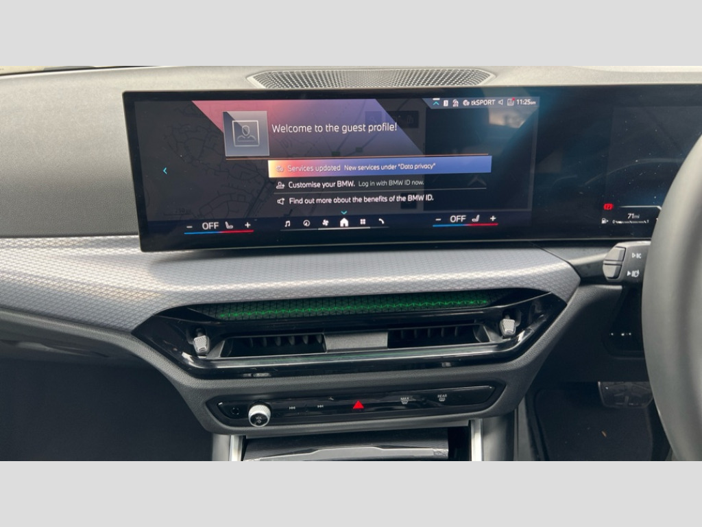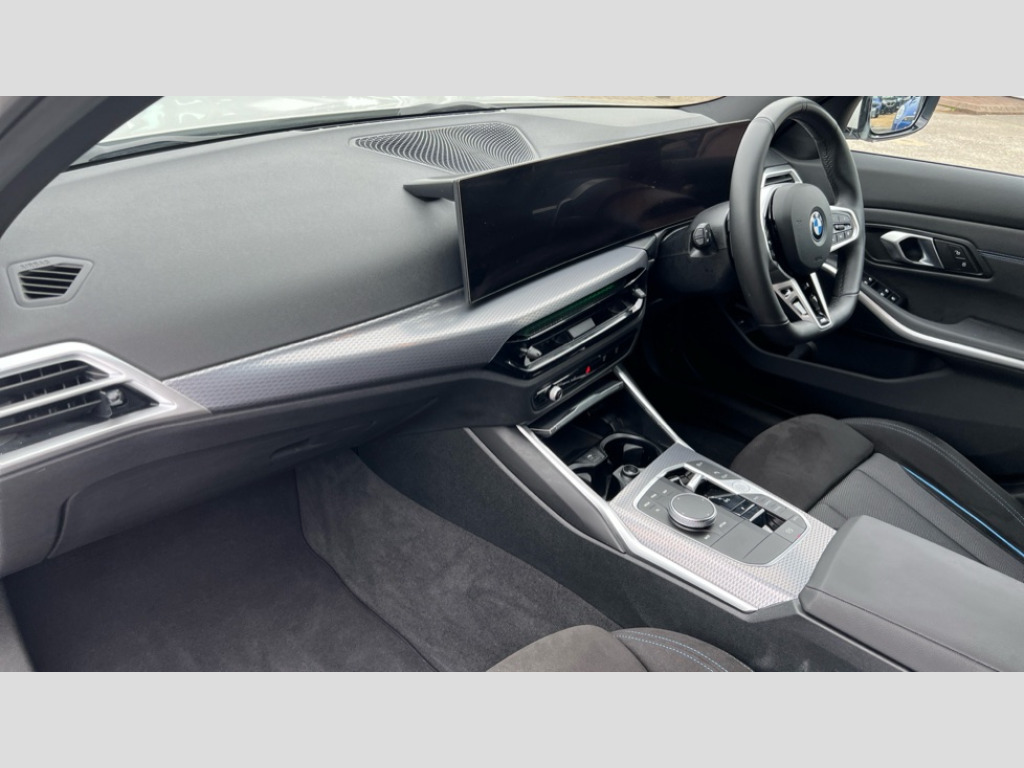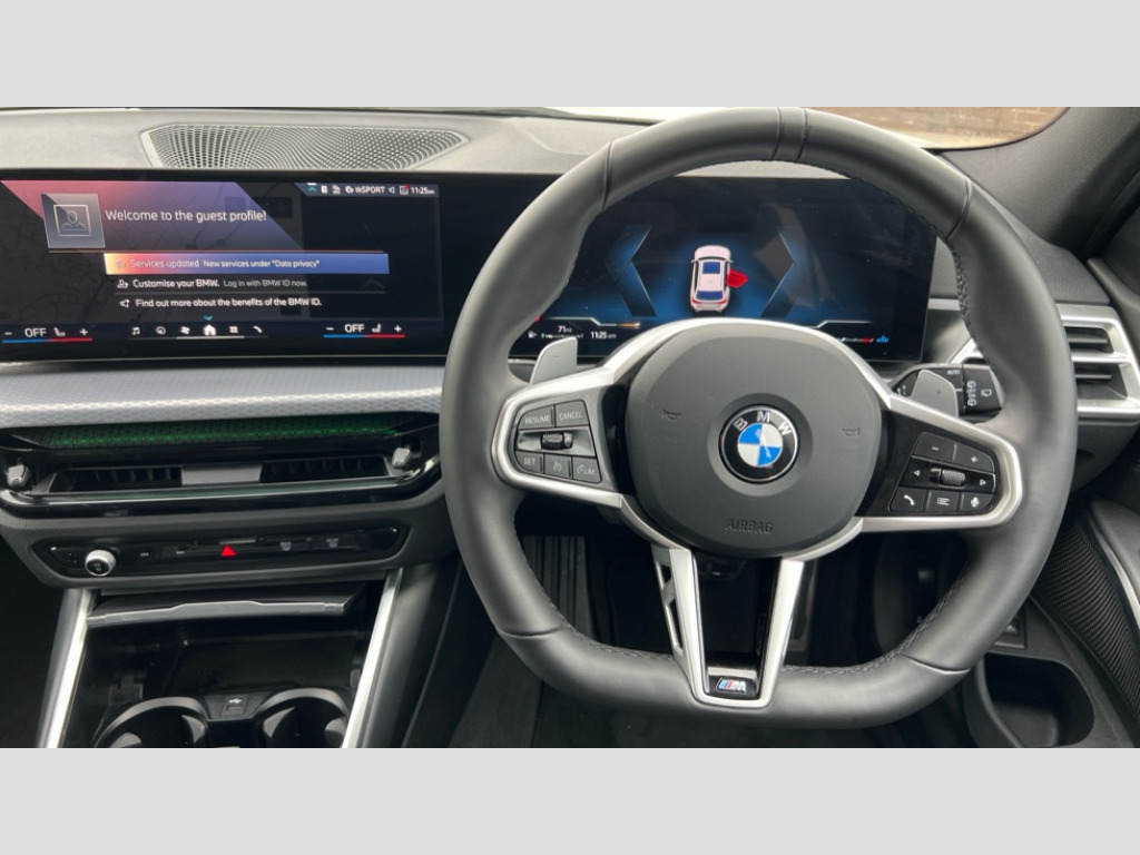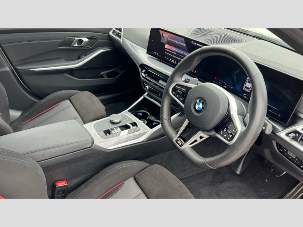 BMW 3 Series 320i M Sport 5dr Step Auto Active guard plus, Attentiveness assist, Automatic Start/stop button, Bluetooth Wi-Fi interface, BMW iDrive, BMW Teleservices, ConnectedDrive Services - last state call, Electric bootlid, Live cockpit plus with Navigation + 12.3" instrument display + 14.9" display, Intelligent voice assist, 2 USB, 4G LTE connect, Oil sensor for level and grade, Personal e-SIM, Shifting point display, Variable sport steering, Double joint spring strut front axle, Fuel tank breather system, Steptronic Sport automatic transmission with steering wheel mounted gearshift paddles launch control and xtreme drive lever control, DAB tuner, 3rd brake light, Auto dimming rear view mirror, Automatic headlight beam throw control with load dependent regulating reaction, dynamic compensation of braking dive and acceleration squat, Bi-LED Low and high beam headlights, BMW emblem, engine compartment lid and tailgate, Body colour roof fin, Door sill strips, Electric windows - front and rear, with open/close fingertip control, anti-trap facility and comfort closing, Fading support, Follow me home headlight function, Front and rear bumper system with replaceable deformation elements, Front apron plastic in body colour, Fuel filler flap - right rear in body colour, Heat protection glazing on front windows and windscreen, Heated washer jets, High gloss chrome kidney frame with high gloss black kidney struts, High gloss shadow line roof rails, LED daytime running lights, LED rear lights, LED turn indicator, Licence plate panel integrated into front bumper and tailgate, M high gloss shadow line exterior trim, Matt black B-pillar finsher, Matt black window recess cover, One piece front bumper cover including towing eye cover in body colour, Rain sensor with automatic headlight activation, Rear side wing doors, Rear wiper, Reversing lights, Side frame decorative moulding black matt, Trailer stabilisation logic, Visible exhaust tailpipe finisher, Welcome lights in interior and door handle area, 12V power socket in front storage compartment, 2 front cupholder in centre console with clamping elements and matt black inlay, 3 seat bench in 2nd row, 3 spoke M Sport multifunction flat bottom leather steering wheel, 3 zone automatic air conditioning, 40:20:40 split folding rear seat with loading system, Anthracite headlining, Armrest integrated in front and rear door trim + front centre console armrest, BMW ID, Cruise control operation in steering wheel, Driving experience mode switch, Folding rear centre armrest with 2 cupholders, Front and rear headrests, Front and rear velour floor mats, Front reading light, Heated front seats, Height adjustable mechanically and infinitely variable steering column, Illuminated armrest storage compartment, Illuminated glove compartment, Illuminated luggage compartment, Lashing eyelets in luggage compartment, Single front passenger seat, Sunvisors with illuminated vanity mirrors and ticket pocket, Toolkit located in luggage compartment, Connected pack professional - 3 Series Saloon/Touring, Interior and exterior mirror pack - 3 Series Touring/Saloon, M sport exterior styling pack - 3 Series Saloon/Touring, Parking assistant pack - 3 Series, 3x3 point rear seatbelts, BMW emergency call, Child locks on rear doors, Crash sensor activating of airbags, Unlocking doors, hazard warning lights, interior light, safety battery terminal, Drive-off assistant, Driver and front passenger with seat occupancy detection for driver's and passenger side, Driver and passenger side airbags, body protection at side and airbags deploy from seat backrests, Dry braking, Dynamic brake control, Dynamic stability control + (DSC+) - Anti-lock Braking System (ABS) with brake assist and cornering brake control + Automatic Stability Control (ASC), Dynamic Traction Control - DTC, Electric parking brake including automatic hold function and automatic release of the parking brake when driving off, Electronic differential lock control (EDLC), Front airbag deactivation, Front airbags for driver and front passenger, Head airbags in 1st and 2nd row, head protection at side, curtain airbags open from headliner above 1st and 2nd row, Plastic fuel tank, Side impact protection, Tyre pressure sensors, Ventilated front and rear disc brakes, Warning triangle and first aid kit, Alarm system, Centre lock switch, Closing system with central locking, Electronic vehicle immobiliser, Locking wheel bolts