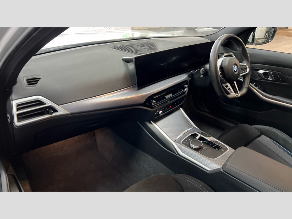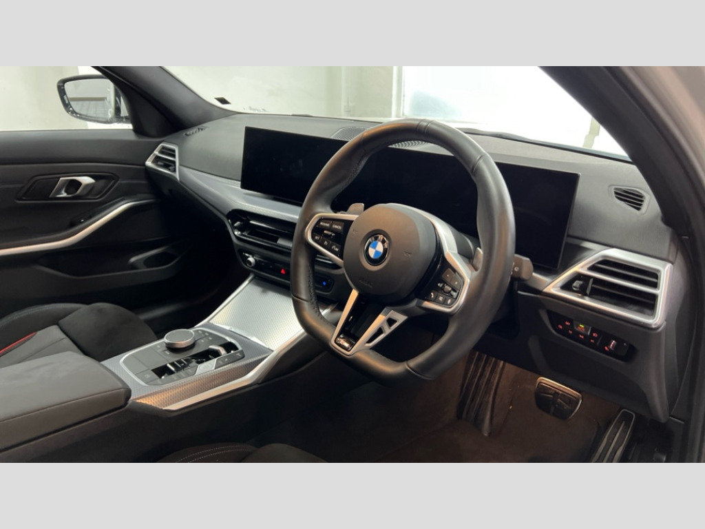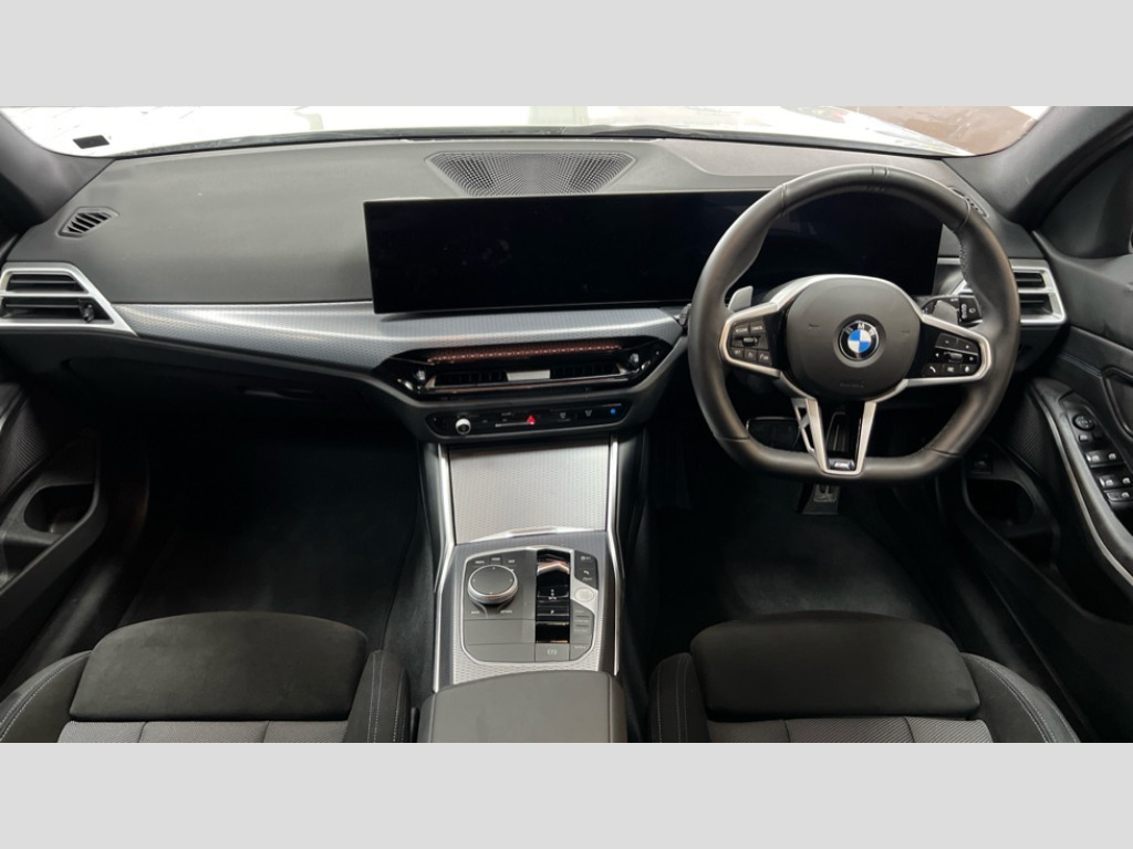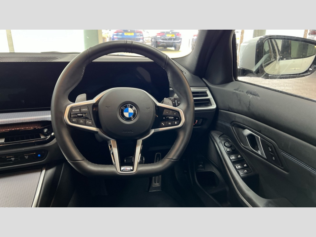 BMW 3 Series 320i M Sport 5dr Step Auto Active guard plus, Attentiveness assist, Automatic Start/stop button, Bluetooth Wi-Fi interface, BMW iDrive, BMW Teleservices, ConnectedDrive Services - last state call, Electric bootlid, Live cockpit plus with Navigation + 12.3" instrument display + 14.9" display, Intelligent voice assist, 2 USB, 4G LTE connect, Oil sensor for level and grade, Personal e-SIM, Shifting point display, Variable sport steering, Double joint spring strut front axle, Fuel tank breather system, Steptronic Sport automatic transmission with steering wheel mounted gearshift paddles launch control and xtreme drive lever control, DAB tuner, 3rd brake light, Auto dimming rear view mirror, Automatic headlight beam throw control with load dependent regulating reaction, dynamic compensation of braking dive and acceleration squat, Bi-LED Low and high beam headlights, BMW emblem, engine compartment lid and tailgate, Body colour roof fin, Door sill strips, Electric windows - front and rear, with open/close fingertip control, anti-trap facility and comfort closing, Fading support, Follow me home headlight function, Front and rear bumper system with replaceable deformation elements, Front apron plastic in body colour, Fuel filler flap - right rear in body colour, Heat protection glazing on front windows and windscreen, Heated washer jets, High gloss chrome kidney frame with high gloss black kidney struts, High gloss shadow line roof rails, LED daytime running lights, LED rear lights, LED turn indicator, Licence plate panel integrated into front bumper and tailgate, M high gloss shadow line exterior trim, Matt black B-pillar finsher, Matt black window recess cover, One piece front bumper cover including towing eye cover in body colour, Rain sensor with automatic headlight activation, Rear side wing doors, Rear wiper, Reversing lights, Side frame decorative moulding black matt, Trailer stabilisation logic, Visible exhaust tailpipe finisher, Welcome lights in interior and door handle area, 12V power socket in front storage compartment, 2 front cupholder in centre console with clamping elements and matt black inlay, 3 seat bench in 2nd row, 3 spoke M Sport multifunction flat bottom leather steering wheel, 3 zone automatic air conditioning, 40:20:40 split folding rear seat with loading system, Anthracite headlining, Armrest integrated in front and rear door trim + front centre console armrest, BMW ID, Cruise control operation in steering wheel, Driving experience mode switch, Folding rear centre armrest with 2 cupholders, Front and rear headrests, Front and rear velour floor mats, Front reading light, Heated front seats, Height adjustable mechanically and infinitely variable steering column, Illuminated armrest storage compartment, Illuminated glove compartment, Illuminated luggage compartment, Lashing eyelets in luggage compartment, Single front passenger seat, Sunvisors with illuminated vanity mirrors and ticket pocket, Toolkit located in luggage compartment, Connected pack professional - 3 Series Saloon/Touring, Interior and exterior mirror pack - 3 Series Touring/Saloon, M sport exterior styling pack - 3 Series Saloon/Touring, Parking assistant pack - 3 Series, 3x3 point rear seatbelts, BMW emergency call, Child locks on rear doors, Crash sensor activating of airbags, Unlocking doors, hazard warning lights, interior light, safety battery terminal, Drive-off assistant, Driver and front passenger with seat occupancy detection for driver's and passenger side, Driver and passenger side airbags, body protection at side and airbags deploy from seat backrests, Dry braking, Dynamic brake control, Dynamic stability control + (DSC+) - Anti-lock Braking System (ABS) with brake assist and cornering brake control + Automatic Stability Control (ASC), Dynamic Traction Control - DTC, Electric parking brake including automatic hold function and automatic release of the parking brake when driving off, Electronic differential lock control (EDLC), Front airbag deactivation, Front airbags for driver and front passenger, Head airbags in 1st and 2nd row, head protection at side, curtain airbags open from headliner above 1st and 2nd row, Plastic fuel tank, Side impact protection, Tyre pressure sensors, Ventilated front and rear disc brakes, Warning triangle and first aid kit, Alarm system, Centre lock switch, Closing system with central locking, Electronic vehicle immobiliser, Locking wheel bolts