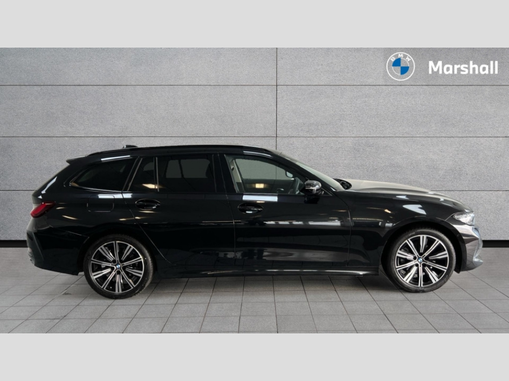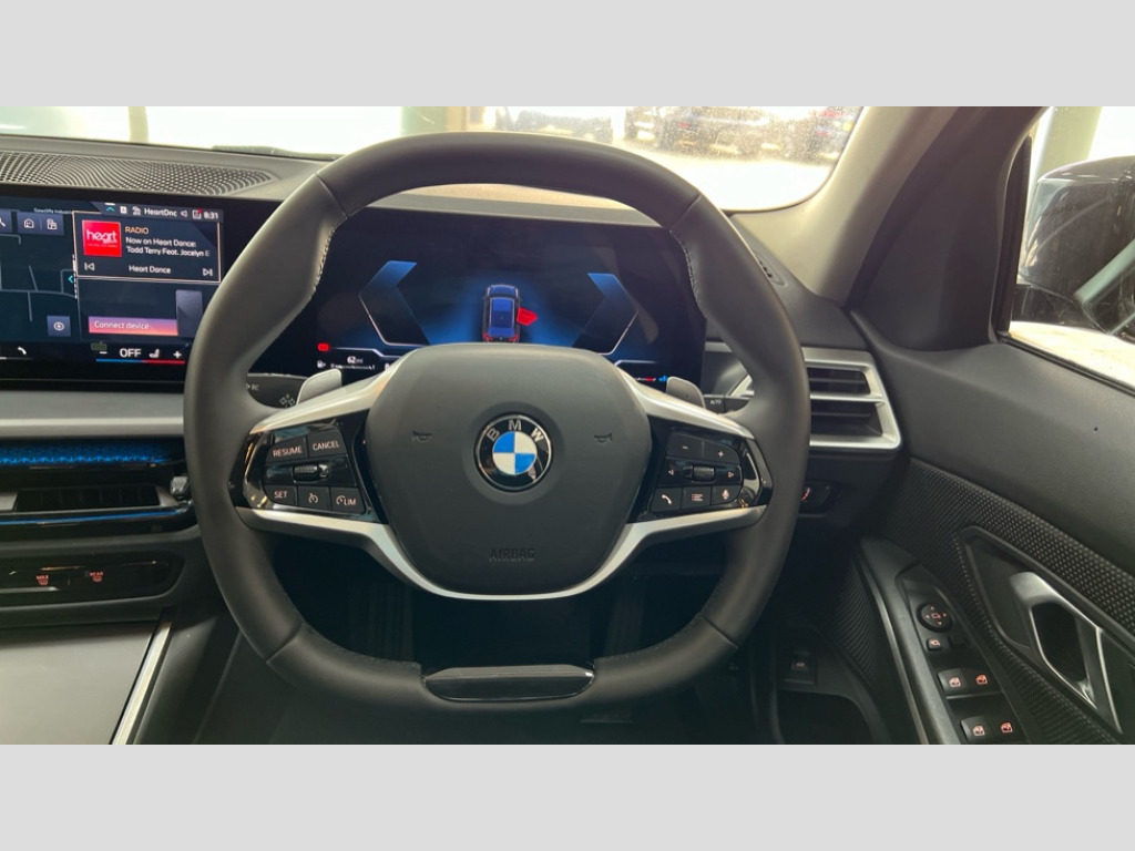 BMW 3 Series 320i Sport 5dr Step Auto Active guard plus, Attentiveness assist, Automatic Start/stop button, Bluetooth Wi-Fi interface, BMW iDrive, BMW Teleservices, ConnectedDrive Services - last state call, Electric bootlid, Oil sensor for level and grade, PAS, Personal e-SIM, Shifting point display, Double joint spring strut front axle, Fuel tank breather system, Standard suspension, Steptronic Sport automatic transmission with steering wheel mounted gearshift paddles launch control and xtreme drive lever control, DAB tuner, 3rd brake light, Auto dimming rear view mirror, Automatic headlight beam throw control with load dependent regulating reaction, dynamic compensation of braking dive and acceleration squat, Bi-LED Low and high beam headlights, BMW emblem, engine compartment lid and tailgate, BMW radiator grille with mesh grille and end face of the nuggets in quartz silver matt, Body colour roof fin, Door sill strips, Electric windows - front and rear, with open/close fingertip control, anti-trap facility and comfort closing, Fading support, Follow me home headlight function, Front and rear bumper system with replaceable deformation elements, Front apron plastic in body colour, Fuel filler flap - right rear in body colour, Heat protection glazing on front windows and windscreen, Heated washer jets, High gloss shadow line roof rails, LED daytime running lights, LED rear lights, LED turn indicator, Licence plate panel integrated into front bumper and tailgate, M high gloss shadow line exterior trim, Matt black B-pillar finsher, Matt black window recess cover, One piece front bumper cover including towing eye cover in body colour, Radiator grille frame in chrome matt, Rain sensor with automatic headlight activation, Rear side wing doors, Rear wiper, Reversing lights, Side frame decorative moulding black matt, Trailer stabilisation logic, Visible exhaust tailpipe finisher, Welcome lights in interior and door handle area, 12V power socket in front storage compartment, 2 front cupholder in centre console with clamping elements and matt black inlay, 3 seat bench in 2nd row, 3 zone automatic air conditioning, 40:20:40 split folding rear seat with loading system, Armrest integrated in front and rear door trim + front centre console armrest, BMW ID, Cruise control operation in steering wheel, Driving experience mode switch, Folding rear centre armrest with 2 cupholders, Front and rear headrests, Front and rear velour floor mats, Front reading light, Heated front seats, Height adjustable mechanically and infinitely variable steering column, Illuminated armrest storage compartment, Illuminated glove compartment, Illuminated luggage compartment, Lashing eyelets in luggage compartment, Single front passenger seat, Sunvisors with illuminated vanity mirrors and ticket pocket, Three spoke multifunction sport leather steering wheel, Toolkit located in luggage compartment, Connected pack professional - 3 Series Saloon/Touring, Interior and exterior mirror pack - 3 Series Touring/Saloon, 3x3 point rear seatbelts, BMW emergency call, Child locks on rear doors, Crash sensor activating of airbags, Unlocking doors, hazard warning lights, interior light, safety battery terminal, Drive-off assistant, Driver and front passenger with seat occupancy detection for driver's and passenger side, Driver and passenger side airbags, body protection at side and airbags deploy from seat backrests, Dry braking, Dynamic brake control, Dynamic stability control + (DSC+) - Anti-lock Braking System (ABS) with brake assist and cornering brake control + Automatic Stability Control (ASC), Dynamic Traction Control - DTC, Electric parking brake including automatic hold function and automatic release of the parking brake when driving off, Electronic differential lock control (EDLC), Front airbag deactivation, Front airbags for driver and front passenger, Head airbags in 1st and 2nd row, head protection at side, curtain airbags open from headliner above 1st and 2nd row, Plastic fuel tank, Side impact protection, Tyre pressure sensors, Ventilated front and rear disc brakes, Warning triangle and first aid kit, Alarm system, Centre lock switch, Closing system with central locking, Electronic vehicle immobiliser, Locking wheel bolts