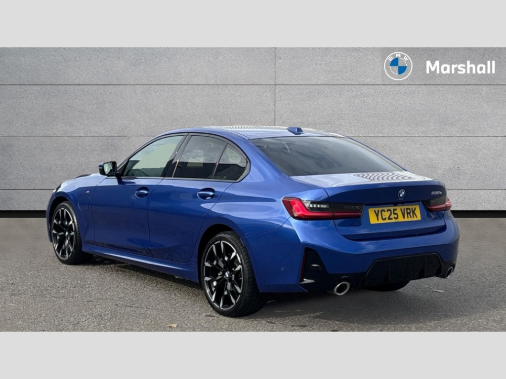 BMW 3 Series 330e 22.3 kWh M Sport 4dr Step Auto Active guard plus, Attentiveness assist, Automatic Start/stop button, Bluetooth Wi-Fi interface, BMW iDrive, BMW Teleservices, ConnectedDrive Services - last state call, Live cockpit plus with Navigation + 12.3" instrument display + 14.9" display, Intelligent voice assist, 2 USB, 4G LTE connect, Oil sensor for level and grade, Personal e-SIM, Shifting point display, Double joint spring strut front axle, Fuel tank breather system, Public mode 3 professional fast charging cable with 5m length, Steptronic Sport automatic transmission with steering wheel mounted gearshift paddles launch control and xtreme drive lever control, DAB tuner, 3rd brake light, Auto dimming rear view mirror, Automatic headlight beam throw control with load dependent regulating reaction, dynamic compensation of braking dive and acceleration squat, Bi-LED Low and high beam headlights, BMW emblem, engine compartment lid and tailgate, Body colour roof fin, Door sill strips, Electric windows - front and rear, with open/close fingertip control, anti-trap facility and comfort closing, Fading support, Follow me home headlight function, Front and rear bumper system with replaceable deformation elements, Front apron plastic in body colour, Fuel filler flap - right rear in body colour, Heat protection glazing on front windows and windscreen, Heated washer jets, High gloss chrome kidney frame with high gloss black kidney struts, LED daytime running lights, LED rear lights, LED turn indicator, Licence plate panel integrated into front bumper and tailgate, M high gloss shadow line exterior trim, Matt black B-pillar finsher, Matt black window recess cover, Model designation on right side of tailgate, One piece front bumper cover including towing eye cover in body colour, Rain sensor with automatic headlight activation, Rear boot, Rear side wing doors, Reversing lights, Side frame decorative moulding black matt, Trailer stabilisation logic, Visible exhaust tailpipe finisher, Welcome lights in interior and door handle area, 12V power socket in front storage compartment, 2 front cupholder in centre console with clamping elements and matt black inlay, 3 seat bench in 2nd row, 3 spoke M Sport multifunction flat bottom leather steering wheel, 3 zone automatic air conditioning, 40:20:40 split folding rear seat with loading system, Anthracite headlining, Armrest integrated in front and rear door trim + front centre console armrest, Battery in luggage compartment, BMW ID, Cruise control operation in steering wheel, Driving experience mode switch, Folding rear centre armrest with 2 cupholders, Front and rear headrests, Front and rear velour floor mats, Front reading light, Heated front seats, Height adjustable mechanically and infinitely variable steering column, Illuminated armrest storage compartment, Illuminated glove compartment, Illuminated luggage compartment, Lashing eyelets in luggage compartment, Single front passenger seat, Sunvisors with illuminated vanity mirrors and ticket pocket, Toolkit located in luggage compartment, Connected pack professional - 3 Series Saloon/Touring, Interior and exterior mirror pack - 3 Series Touring/Saloon, M sport exterior styling pack - 3 Series Saloon/Touring, Parking assistant pack - 3 Series, 3x3 point rear seatbelts, BMW emergency call, Child locks on rear doors, Crash sensor activating of airbags, Unlocking doors, hazard warning lights, interior light, safety battery terminal, Drive-off assistant, Driver and front passenger with seat occupancy detection for driver's and passenger side, Driver and passenger side airbags, body protection at side and airbags deploy from seat backrests, Dry braking, Dynamic brake control, Dynamic stability control + (DSC+) - Anti-lock Braking System (ABS) with brake assist and cornering brake control + Automatic Stability Control (ASC), Dynamic Traction Control - DTC, Electric parking brake including automatic hold function and automatic release of the parking brake when driving off, Electronic differential lock control (EDLC), Front airbag deactivation, Front airbags for driver and front passenger, Head airbags in 1st and 2nd row, head protection at side, curtain airbags open from headliner above 1st and 2nd row, Plastic fuel tank, Side impact protection, Tyre pressure sensors, Ventilated front and rear disc brakes, Warning triangle and first aid kit, Alarm system, Centre lock switch, Closing system with central locking, Electronic vehicle immobiliser, Locking wheel bolts