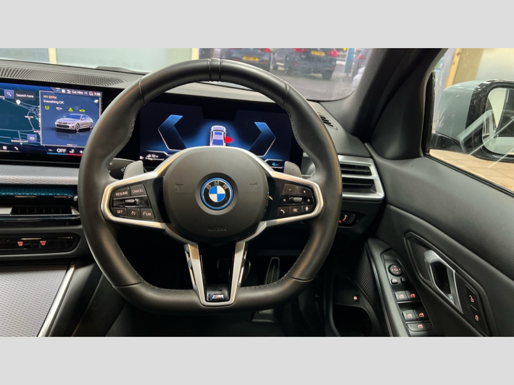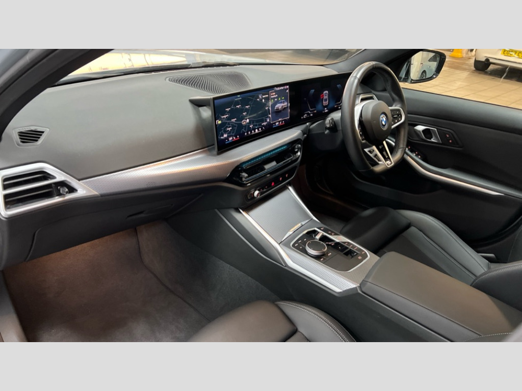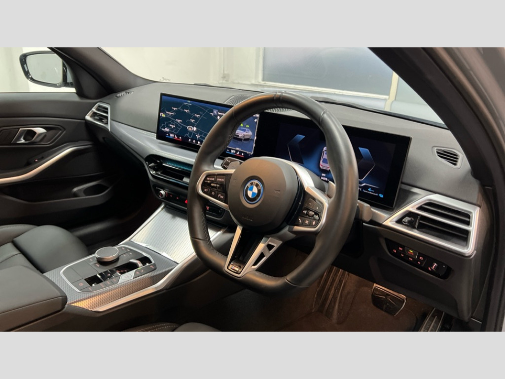 BMW 3 Series 330e 22.3 kWh M Sport 4dr Step Auto Active guard plus, Attentiveness assist, Automatic Start/stop button, Bluetooth Wi-Fi interface, BMW iDrive, BMW Teleservices, ConnectedDrive Services - last state call, Live cockpit plus with Navigation + 12.3" instrument display + 14.9" display, Intelligent voice assist, 2 USB, 4G LTE connect, Oil sensor for level and grade, Personal e-SIM, Shifting point display, Double joint spring strut front axle, Fuel tank breather system, Public mode 3 professional fast charging cable with 5m length, Steptronic Sport automatic transmission with steering wheel mounted gearshift paddles launch control and xtreme drive lever control, DAB tuner, 3rd brake light, Auto dimming rear view mirror, Automatic headlight beam throw control with load dependent regulating reaction, dynamic compensation of braking dive and acceleration squat, Bi-LED Low and high beam headlights, BMW emblem, engine compartment lid and tailgate, Body colour roof fin, Door sill strips, Electric windows - front and rear, with open/close fingertip control, anti-trap facility and comfort closing, Fading support, Follow me home headlight function, Front and rear bumper system with replaceable deformation elements, Front apron plastic in body colour, Fuel filler flap - right rear in body colour, Heat protection glazing on front windows and windscreen, Heated washer jets, High gloss chrome kidney frame with high gloss black kidney struts, LED daytime running lights, LED rear lights, LED turn indicator, Licence plate panel integrated into front bumper and tailgate, M high gloss shadow line exterior trim, Matt black B-pillar finsher, Matt black window recess cover, Model designation on right side of tailgate, One piece front bumper cover including towing eye cover in body colour, Rain sensor with automatic headlight activation, Rear boot, Rear side wing doors, Reversing lights, Side frame decorative moulding black matt, Trailer stabilisation logic, Visible exhaust tailpipe finisher, Welcome lights in interior and door handle area, 12V power socket in front storage compartment, 2 front cupholder in centre console with clamping elements and matt black inlay, 3 seat bench in 2nd row, 3 spoke M Sport multifunction flat bottom leather steering wheel, 3 zone automatic air conditioning, 40:20:40 split folding rear seat with loading system, Anthracite headlining, Armrest integrated in front and rear door trim + front centre console armrest, Battery in luggage compartment, BMW ID, Cruise control operation in steering wheel, Driving experience mode switch, Folding rear centre armrest with 2 cupholders, Front and rear headrests, Front and rear velour floor mats, Front reading light, Heated front seats, Height adjustable mechanically and infinitely variable steering column, Illuminated armrest storage compartment, Illuminated glove compartment, Illuminated luggage compartment, Lashing eyelets in luggage compartment, Single front passenger seat, Sunvisors with illuminated vanity mirrors and ticket pocket, Toolkit located in luggage compartment, Connected pack professional - 3 Series Saloon/Touring, Interior and exterior mirror pack - 3 Series Touring/Saloon, M sport exterior styling pack - 3 Series Saloon/Touring, Parking assistant pack - 3 Series, 3x3 point rear seatbelts, BMW emergency call, Child locks on rear doors, Crash sensor activating of airbags, Unlocking doors, hazard warning lights, interior light, safety battery terminal, Drive-off assistant, Driver and front passenger with seat occupancy detection for driver's and passenger side, Driver and passenger side airbags, body protection at side and airbags deploy from seat backrests, Dry braking, Dynamic brake control, Dynamic stability control + (DSC+) - Anti-lock Braking System (ABS) with brake assist and cornering brake control + Automatic Stability Control (ASC), Dynamic Traction Control - DTC, Electric parking brake including automatic hold function and automatic release of the parking brake when driving off, Electronic differential lock control (EDLC), Front airbag deactivation, Front airbags for driver and front passenger, Head airbags in 1st and 2nd row, head protection at side, curtain airbags open from headliner above 1st and 2nd row, Plastic fuel tank, Side impact protection, Tyre pressure sensors, Ventilated front and rear disc brakes, Warning triangle and first aid kit, Alarm system, Centre lock switch, Closing system with central locking, Electronic vehicle immobiliser, Locking wheel bolts