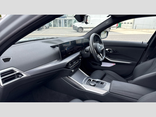 BMW 3 Series 330e 22.3 kWh M Sport 5dr Step Auto Active guard plus, Attentiveness assist, Automatic Start/stop button, Bluetooth Wi-Fi interface, BMW iDrive, BMW Teleservices, ConnectedDrive Services - last state call, Electric bootlid, Live cockpit plus with Navigation + 12.3" instrument display + 14.9" display, Intelligent voice assist, 2 USB, 4G LTE connect, Oil sensor for level and grade, Personal e-SIM, Shifting point display, Double joint spring strut front axle, Fuel tank breather system, Public mode 3 professional fast charging cable with 5m length, Steptronic Sport automatic transmission with steering wheel mounted gearshift paddles launch control and xtreme drive lever control, DAB tuner, 3rd brake light, Auto dimming rear view mirror, Automatic headlight beam throw control with load dependent regulating reaction, dynamic compensation of braking dive and acceleration squat, Bi-LED Low and high beam headlights, BMW emblem, engine compartment lid and tailgate, Body colour roof fin, Door sill strips, Electric windows - front and rear, with open/close fingertip control, anti-trap facility and comfort closing, Fading support, Follow me home headlight function, Front and rear bumper system with replaceable deformation elements, Front apron plastic in body colour, Fuel filler flap - right rear in body colour, Heat protection glazing on front windows and windscreen, Heated washer jets, High gloss chrome kidney frame with high gloss black kidney struts, High gloss shadow line roof rails, LED daytime running lights, LED rear lights, LED turn indicator, Licence plate panel integrated into front bumper and tailgate, M high gloss shadow line exterior trim, Matt black B-pillar finsher, Matt black window recess cover, Model designation on right side of tailgate, One piece front bumper cover including towing eye cover in body colour, Rain sensor with automatic headlight activation, Rear side wing doors, Rear wiper, Reversing lights, Side frame decorative moulding black matt, Trailer stabilisation logic, Visible exhaust tailpipe finisher, Welcome lights in interior and door handle area, 12V power socket in front storage compartment, 2 front cupholder in centre console with clamping elements and matt black inlay, 3 seat bench in 2nd row, 3 spoke M Sport multifunction flat bottom leather steering wheel, 3 zone automatic air conditioning, 40:20:40 split folding rear seat with loading system, Anthracite headlining, Armrest integrated in front and rear door trim + front centre console armrest, Battery in luggage compartment, BMW ID, Cruise control operation in steering wheel, Driving experience mode switch, Folding rear centre armrest with 2 cupholders, Front and rear headrests, Front and rear velour floor mats, Front reading light, Heated front seats, Height adjustable mechanically and infinitely variable steering column, Illuminated armrest storage compartment, Illuminated glove compartment, Illuminated luggage compartment, Lashing eyelets in luggage compartment, Single front passenger seat, Sunvisors with illuminated vanity mirrors and ticket pocket, Toolkit located in luggage compartment, Connected pack professional - 3 Series Saloon/Touring, Interior and exterior mirror pack - 3 Series Touring/Saloon, M sport exterior styling pack - 3 Series Saloon/Touring, Parking assistant pack - 3 Series, 3x3 point rear seatbelts, BMW emergency call, Child locks on rear doors, Crash sensor activating of airbags, Unlocking doors, hazard warning lights, interior light, safety battery terminal, Drive-off assistant, Driver and front passenger with seat occupancy detection for driver's and passenger side, Driver and passenger side airbags, body protection at side and airbags deploy from seat backrests, Dry braking, Dynamic brake control, Dynamic stability control + (DSC+) - Anti-lock Braking System (ABS) with brake assist and cornering brake control + Automatic Stability Control (ASC), Dynamic Traction Control - DTC, Electric parking brake including automatic hold function and automatic release of the parking brake when driving off, Electronic differential lock control (EDLC), Front airbag deactivation, Front airbags for driver and front passenger, Head airbags in 1st and 2nd row, head protection at side, curtain airbags open from headliner above 1st and 2nd row, Plastic fuel tank, Side impact protection, Tyre pressure sensors, Ventilated front and rear disc brakes, Warning triangle and first aid kit, Alarm system, Centre lock switch, Closing system with central locking, Electronic vehicle immobiliser, Locking wheel bolts, Tyre repair kit