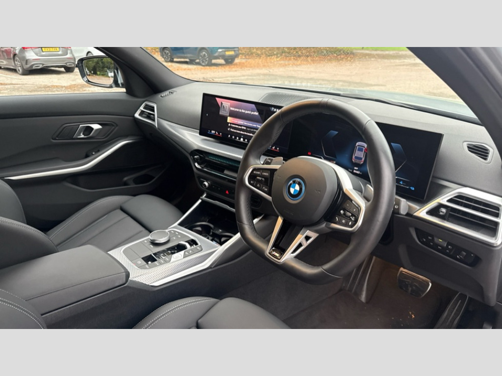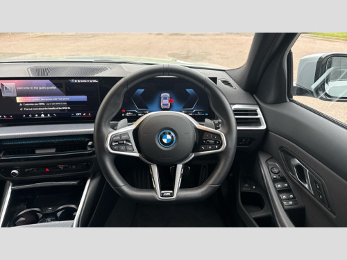 BMW 3 Series 330e 22.3 kWh M Sport 5dr Step Auto Active guard plus, Attentiveness assist, Automatic Start/stop button, Bluetooth Wi-Fi interface, BMW iDrive, BMW Teleservices, ConnectedDrive Services - last state call, Electric bootlid, Live cockpit plus with Navigation + 12.3" instrument display + 14.9" display, Intelligent voice assist, 2 USB, 4G LTE connect, Oil sensor for level and grade, Personal e-SIM, Shifting point display, Double joint spring strut front axle, Fuel tank breather system, Public mode 3 professional fast charging cable with 5m length, Steptronic Sport automatic transmission with steering wheel mounted gearshift paddles launch control and xtreme drive lever control, DAB tuner, 3rd brake light, Auto dimming rear view mirror, Automatic headlight beam throw control with load dependent regulating reaction, dynamic compensation of braking dive and acceleration squat, Bi-LED Low and high beam headlights, BMW emblem, engine compartment lid and tailgate, Body colour roof fin, Door sill strips, Electric windows - front and rear, with open/close fingertip control, anti-trap facility and comfort closing, Fading support, Follow me home headlight function, Front and rear bumper system with replaceable deformation elements, Front apron plastic in body colour, Fuel filler flap - right rear in body colour, Heat protection glazing on front windows and windscreen, Heated washer jets, High gloss chrome kidney frame with high gloss black kidney struts, High gloss shadow line roof rails, LED daytime running lights, LED rear lights, LED turn indicator, Licence plate panel integrated into front bumper and tailgate, M high gloss shadow line exterior trim, Matt black B-pillar finsher, Matt black window recess cover, Model designation on right side of tailgate, One piece front bumper cover including towing eye cover in body colour, Rain sensor with automatic headlight activation, Rear side wing doors, Rear wiper, Reversing lights, Side frame decorative moulding black matt, Trailer stabilisation logic, Visible exhaust tailpipe finisher, Welcome lights in interior and door handle area, 12V power socket in front storage compartment, 2 front cupholder in centre console with clamping elements and matt black inlay, 3 seat bench in 2nd row, 3 spoke M Sport multifunction flat bottom leather steering wheel, 3 zone automatic air conditioning, 40:20:40 split folding rear seat with loading system, Anthracite headlining, Armrest integrated in front and rear door trim + front centre console armrest, Battery in luggage compartment, BMW ID, Cruise control operation in steering wheel, Driving experience mode switch, Folding rear centre armrest with 2 cupholders, Front and rear headrests, Front and rear velour floor mats, Front reading light, Heated front seats, Height adjustable mechanically and infinitely variable steering column, Illuminated armrest storage compartment, Illuminated glove compartment, Illuminated luggage compartment, Lashing eyelets in luggage compartment, Single front passenger seat, Sunvisors with illuminated vanity mirrors and ticket pocket, Toolkit located in luggage compartment, Connected pack professional - 3 Series Saloon/Touring, Interior and exterior mirror pack - 3 Series Touring/Saloon, M sport exterior styling pack - 3 Series Saloon/Touring, Parking assistant pack - 3 Series, 3x3 point rear seatbelts, BMW emergency call, Child locks on rear doors, Crash sensor activating of airbags, Unlocking doors, hazard warning lights, interior light, safety battery terminal, Drive-off assistant, Driver and front passenger with seat occupancy detection for driver's and passenger side, Driver and passenger side airbags, body protection at side and airbags deploy from seat backrests, Dry braking, Dynamic brake control, Dynamic stability control + (DSC+) - Anti-lock Braking System (ABS) with brake assist and cornering brake control + Automatic Stability Control (ASC), Dynamic Traction Control - DTC, Electric parking brake including automatic hold function and automatic release of the parking brake when driving off, Electronic differential lock control (EDLC), Front airbag deactivation, Front airbags for driver and front passenger, Head airbags in 1st and 2nd row, head protection at side, curtain airbags open from headliner above 1st and 2nd row, Plastic fuel tank, Side impact protection, Tyre pressure sensors, Ventilated front and rear disc brakes, Warning triangle and first aid kit, Alarm system, Centre lock switch, Closing system with central locking, Electronic vehicle immobiliser, Locking wheel bolts, Tyre repair kit