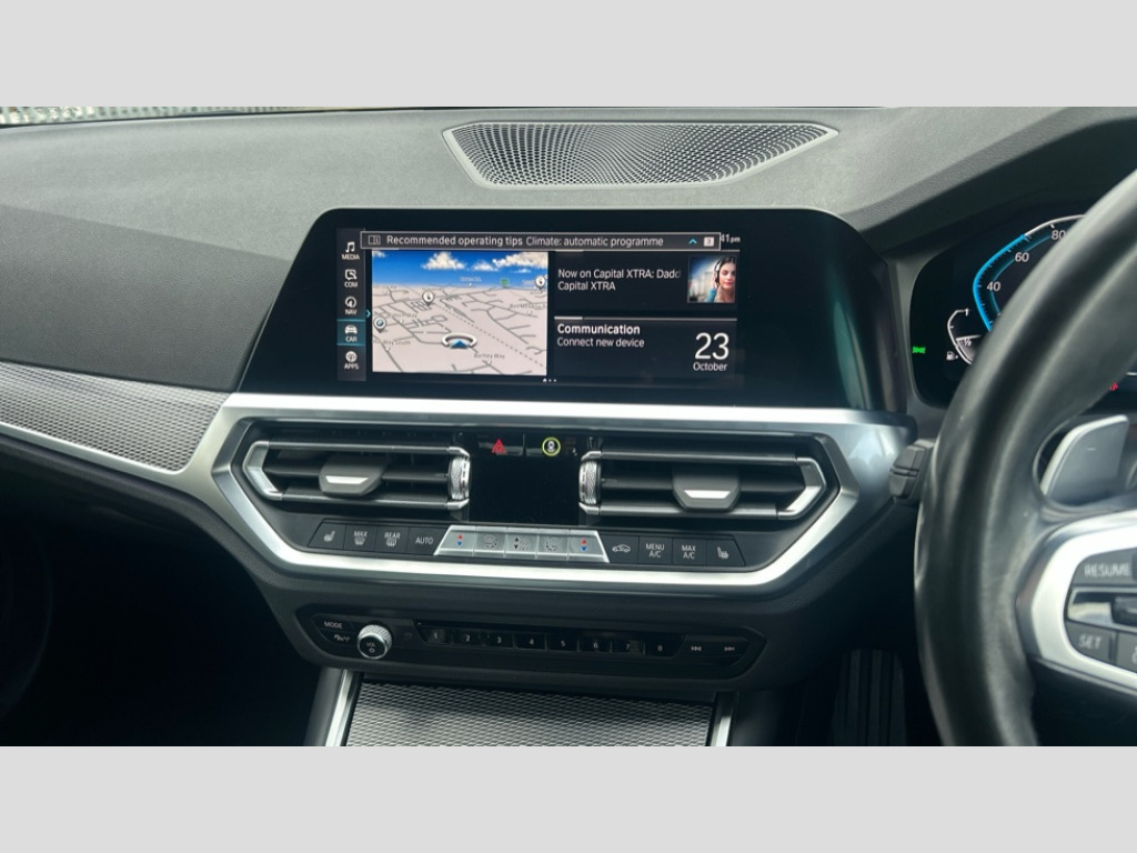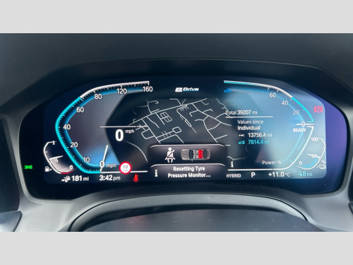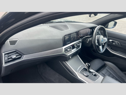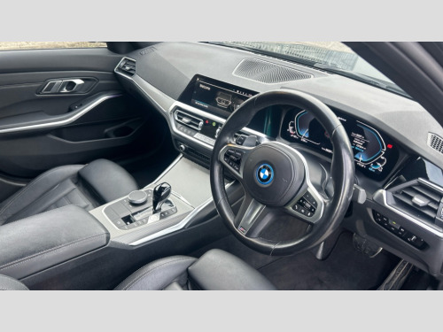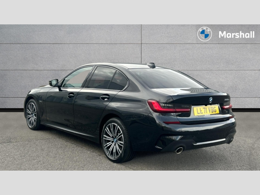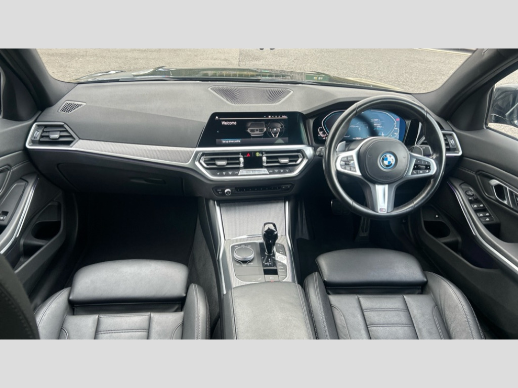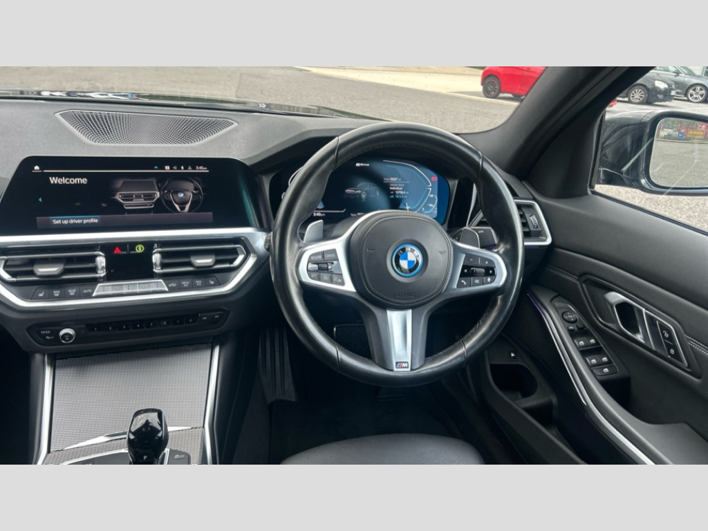 BMW 3 Series 330e M Sport 4dr Step Auto Active guard plus, Attentiveness assist, Auto start-stop, Bluetooth hands free facility with USB audio interface with audio streaming, BMW iDrive controller on centre console, BMW Live Cockpit Professional Nav with 12.3" instrument display + 10.25" display, Intelligent Voice Assist, BMW OS 7, HDD, 2USB, 4G LTE connect, BMW service history, BMW Teleservices, Brake pad wear indicator in front and rear, Check Control warning system for monitoring of lights and door/luggage compartment open warning, Condition based service, Cruise control with brake function + speed limiter, Electric power steering with Servotronic steering optimised at all speed ranges, Instrument cluster with speedometer with mph readout, tachometer, fuel gauge and oil temperature gauge, Integrated owners handbook, Oil sensor for level and grade, warning by check control system, On board computer - average speed+fuel consumption, service interval, clock/date, odometer/trip meter, outside temperature display and ice warning, Optimum shift indicator, Personal Profile - automatic lock when driving away selectable, Balanced 50/50 weight distribution, Battery cut-out switch, Charging cable - Mode 2, Drive performance control - ECO PRO, comfort and sport modes, Petrol Particulate Filter, Stroke dependent dampers, DAB tuner, Electronic service booklet, Acoustic glazing, Active airstream chrome frame kidney grille with 8 high gloss black vertical slats, Automatic headlight beam throw control with load dependent regulating reaction, dynamic compensation of braking dive and acceleration squat, Black roof mouldings, Body colour door handles, Body colour front and rear bumpers, Body colour fuel filler flap, Body colour mirror caps with bottom segment in matt black, Dynamic brake lights, Electric windows - front and rear, with open/close fingertip control, anti-trap facility and comfort closing, Exhaust tailpipe - split left and right, Exterior mirrors - electrically folding with anti-dazzle, Fading support, Front and rear bumper system with replaceable deformation elements, Front black door sill finishers with BMW designation, Green tinted heat protection glazing, High gloss shadow line exterior trim, Interior rear view electrochromatic mirror with automatic anti dazzle function, LED daytime running lights, LED front fog lights, LED third brake light, Lightweight engineering, M designation on front side panels, left and right, Matt black exterior B pillar, Model designation on right side of tailgate, Rain sensor with automatic headlight activation, Rear boot, Rear side wing doors, Shark fin antenna, Two part LED tailights in L-shape with components in smoked glass, brake light, LED turn indicator and rear fog light, Visible VIN plate, Welcome lights in interior and door handle area, Windscreen wipers with integrated washing jets, 12V power socket in front storage compartment, 2 front cupholder in centre console with clamping elements and matt black inlay, 3 rear seats with non folding headrests with 3 point seat belts, 3 seat bench in 2nd row, 3 zone automatic air conditioning, 4 pieces lashing eyelets in luggage compartment, 40:20:40 split folding rear seat with loading system, Ambient lighting with welcome carpet light, Anthracite headlining, Armrest integrated in front and rear door trim + front centre console armrest, Backrest width adjustment, Centred top Luggage compartment lights, Four grab handles integrated in roof lining, Front and rear door exit lighting (left / right), Front and rear door pockets, Front and rear reading lights, Front and rear velour floor mats, Front head restraints, Front sport seats, Heated front seats, Height adjustable mechanically and infinitely variable steering column, Illuminated armrest storage compartment, Illuminated glove compartment with separate small compartment, Interior lighting - front centre over interior mirror with soft light, rear centre and front and rear footwell lighting, M sport leather steering wheel, Make-up mirror lights, Rear centre armrest with 2 cupholders, Rear centre console with storage compartment and ventilation grille, Single front passenger seat, Sunvisors with vanity mirrors and ticket pocket, Toolkit located in luggage compartment, Connected pack professional - 3 Series Saloon/Touring, M sport exterior styling pack - 3 Series Saloon/Touring, 2 tone horn, BMW emergency call, Brake energy regeneration, Braking pre-tensioning, Child proof locking system in rear door, Child seat ISOFIX attachment rear outer seats, Coasting in idle in ECO PRO mode, Crash sensor activating of airbags, Unlocking doors, hazard warning lights, interior light, safety battery terminal, Driver and front passenger side airbags, integrated in the door side seat backrest bolsters for all seat variants, Driver/Front Passenger airbags, Dry braking, Dynamic brake control, Dynamic stability control + (DSC+) - Anti-lock Braking System (ABS) with brake assist and cornering brake control + Automatic Stability Control (ASC), Dynamic Traction Control - DTC, Electric parking brake including automatic hold function and automatic release of the parking brake when driving off, Electronic differential lock control (EDLC), Front passenger manual airbag deactivation, Head airbags for all 4 outer seats, Hill start assist, Seat belt security check for driver and front passenger, Side impact protection, Three 3 point seat belts on all seats including front belt stopper, pyrotechnic belt tensioners and belt force limiters, Tyre pressure monitoring with three level warning strategy, Ventilated front and rear disc brakes, Warning triangle and first aid kit, Alarm system (Thatcham 1) with remote control and electronic engine immobiliser, Central locking switch for all doors, fuel filler cap and luggage compartment, Remote control with integrated key one button open/close vehicle and windows, sole opening of the luggage compartment lid and panic mode, Start/stop button with Comfort
