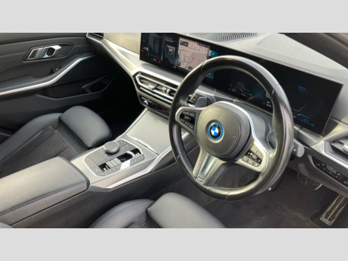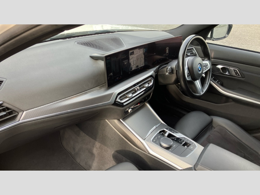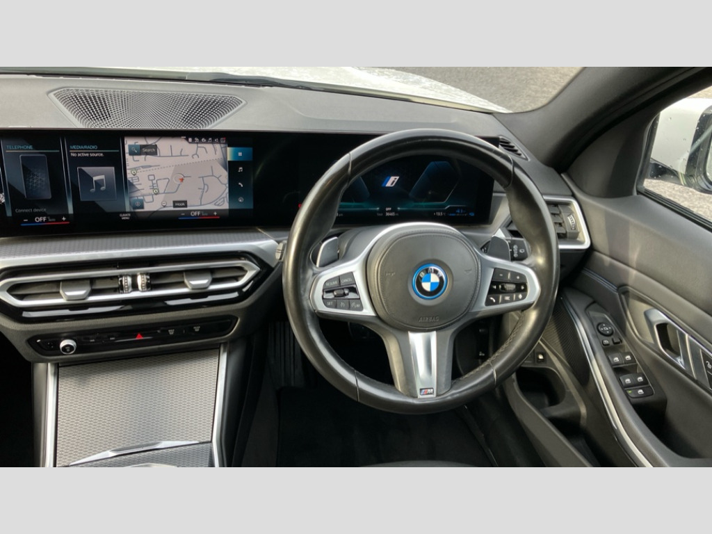 BMW 3 Series 330e M Sport 5dr Step Auto Active guard plus, Attentiveness assist, Automatic Start/stop button, BMW iDrive, BMW Teleservices, Condition based service, ConnectedDrive Services, Cruise control with brake function + speed limiter, Driving experience switch, Live cockpit plus with Navigation + 12.3" instrument display + 14.9" display, Intelligent voice assist, 2 USB, 4G LTE connect, Oil sensor for level and grade, Preparation for driver assistance, Shifting point display, Smartphone integration, Variable sport steering, Adaptive M suspension, Charging cable - Mode 2, Double joint spring strut front axle, Fuel tank breather system, Sport automatic transmission with steering-wheel mounted gearshift paddles and launch control, DAB tuner, "Electrified by i" exterior badging on charging flap, 3rd brake light, Acoustic glazing, Automatic headlight beam throw control with load dependent regulating reaction, dynamic compensation of braking dive and acceleration squat, BMW emblem, engine compartment lid and tailgate, BMW individual lights shadow line, BMW M Individual high gloss shadow line with extended contents, Body colour roof fin, Door sill strips, Electric windows - front and rear, with open/close fingertip control, anti-trap facility and comfort closing, Follow me home headlight function, Front and rear bumper system with replaceable deformation elements, Front apron plastic in body colour, Fuel filler flap - right rear in body colour, Heated washer jets, Illuminated bow type door handles in body colour drivers side with door lock, Interior rear view electrochromatic mirror with automatic anti dazzle function, LED daytime running lights, LED rear lights, LED turn indicator, Licence plate panel integrated into front bumper and tailgate, Matt black B-pillar finsher, Matt black window recess cover, Model designation on right side of tailgate, One piece front bumper cover including towing eye cover in body colour, Rain sensor with automatic headlight activation, Rear side wing doors, Rear wiper, Reversing lights, Side frame decorative moulding black matt, Sun protection glass, Visible exhaust tailpipe finisher, Welcome lights in interior and door handle area, 12V power socket in front storage compartment, 2 front cupholder in centre console with clamping elements and matt black inlay, 3 seat bench in 2nd row, 3 zone automatic air conditioning, 40:20:40 split folding rear seat with loading system, Anthracite headlining, Armrest integrated in front and rear door trim + front centre console armrest, Battery in luggage compartment, BMW ID, Driver backrest width adjustment, Folding rear centre armrest with 2 cupholders, Front and rear door exit lighting (left / right), Front and rear footwell lighting, Front and rear headrests, Front and rear reading lights, Front and rear velour floor mats, Front sport seats, Heated front seats, Height adjustable mechanically and infinitely variable steering column, Illuminated armrest storage compartment, Illuminated glove compartment, Illuminated luggage compartment, Lashing eyelets in luggage compartment, LED ambient lighting with welcome carpet light, M Sport multifunction leather steering wheel, Make-up mirror lights, Single front passenger seat, Standard seat for driver and passenger with manual adjustment, Sunvisors with vanity mirrors and ticket pocket, Toolkit located in luggage compartment, Connected pack professional - 3 Series Saloon/Touring, Interior and exterior mirror pack - 3 Series Touring/Saloon, M Aerodynamics package - 3 Series Saloon/Touring, M sport exterior styling pack - 3 Series Saloon/Touring, Parking assistant pack - 3 Series, Storage compartment pack - 3 Series Saloon/Touring, Visibility pack with High beam assistant - 3 Series Saloon/Touring, 3x3 point rear seatbelts, BMW emergency call, Child locks on rear doors, Crash sensor activating of airbags, Unlocking doors, hazard warning lights, interior light, safety battery terminal, Driver and front passenger with seat occupancy detection for driver's and passenger side, Driver and passenger side airbags, body protection at side and airbags deploy from seat backrests, Dynamic brake control, Dynamic stability control + (DSC+) - Anti-lock Braking System (ABS) with brake assist and cornering brake control + Automatic Stability Control (ASC), Dynamic Traction Control - DTC, Electric parking brake including automatic hold function and automatic release of the parking brake when driving off, Electronic differential lock control (EDLC), Head airbags in 1st and 2nd row, head protection at side, curtain airbags open from headliner above 1st and 2nd row, M sport seatbelt, Plastic fuel tank, Side impact protection, Tyre pressure monitoring with three level warning strategy, Ventilated front and rear disc brakes, Warning triangle and first aid kit, Alarm system, Centre lock switch, Closing system with central locking, Electronic vehicle immobiliser