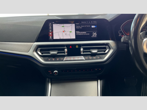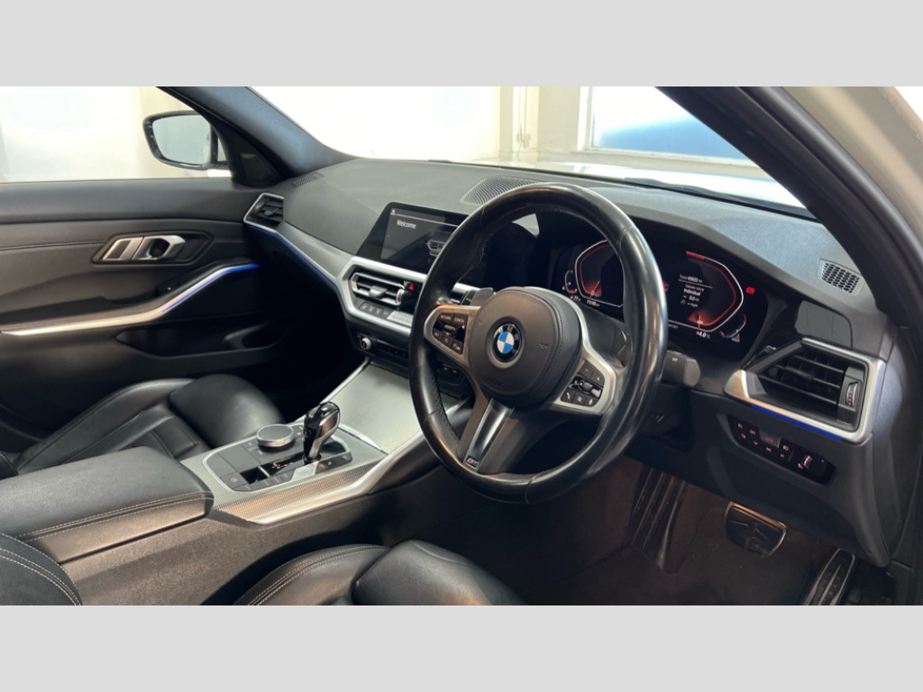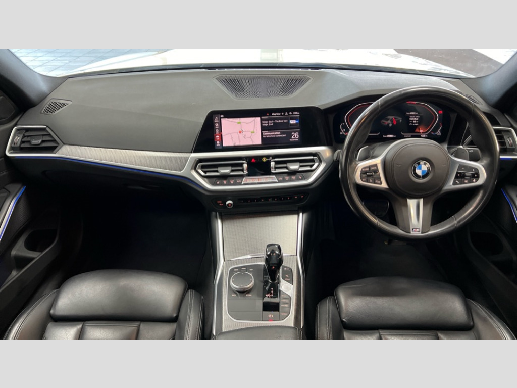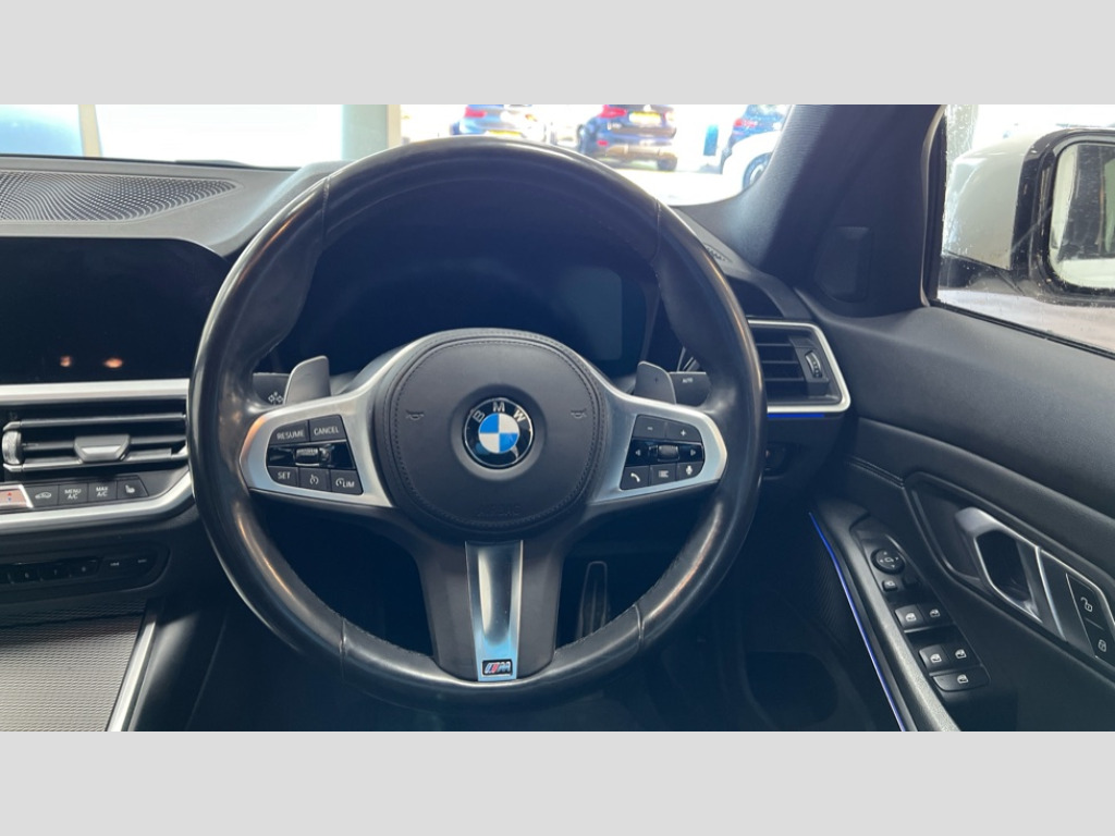 BMW 3 Series 330i M Sport 4dr Step Auto Active guard plus, Attentiveness assist, Auto start-stop, BMW ConnectedDrive online services, BMW iDrive controller on centre console, BMW Live Cockpit Professional sat nav system including 10.25" high resolution display and Intelligent Voice Assistant, BMW service history, BMW Teleservices, Brake pad wear indicator in front and rear, Check Control warning system for monitoring of lights and door/luggage compartment open warning, Condition based service, Electric power steering with Servotronic steering optimised at all speed ranges, Instrument cluster with speedometer with mph readout, tachometer, fuel gauge and oil temperature gauge, Integrated owners handbook, Oil sensor for level and grade, warning by check control system, On board computer - average speed+fuel consumption, service interval, clock/date, odometer/trip meter, outside temperature display and ice warning, Optimum shift indicator, Personal Profile - automatic lock when driving away selectable, Variable sport steering, Adaptive M suspension, Balanced 50/50 weight distribution, Battery cut-out switch, Double VANOS, Driving experience modes - Comfort,ECO PRO,Sport and Sport+ mode, High precision injection, Larger capacity fuel tank, M Sport differential, Petrol Particulate Filter, Sport automatic transmission with steering-wheel mounted gearshift paddles and launch control, Stroke dependent dampers, DAB tuner, Electronic service booklet, Acoustic glazing, Active airstream chrome frame kidney grille with 8 high gloss black vertical slats, Automatic headlight beam throw control with load dependent regulating reaction, dynamic compensation of braking dive and acceleration squat, Black roof mouldings, BMW Individual high gloss shadow line with extended contents, Body colour - fuel filler flap, front and rear bumpers, door handles and mirror caps with integrated turn indicator + bottom segment in matt black, Dynamic brake lights, Electric windows - front and rear, with open/close fingertip control, anti-trap facility and comfort closing, Exhaust tailpipe - split left and right, Extended LED headlights, Exterior mirrors - electrically folding with anti-dazzle, Fading support, Front and rear bumper system with replaceable deformation elements, Front black door sill finishers with BMW designation, Green tinted heat protection glazing, Interior rear view electrochromatic mirror with automatic anti dazzle function, LED front fog lights, Lightweight engineering, M designation on front side panels, left and right, M rear spoiler, Matt black exterior B pillar, Model designation on right side of tailgate, Rain sensor with automatic headlight activation, Rear wiper, Shark fin antenna, Sun protection glass, Two part LED tailights in L-shape with components in smoked glass, brake light, LED turn indicator and rear fog light, Visible VIN plate, Welcome lights in interior and door handle area, Windscreen wipers with integrated washing jets, 12V power socket in front storage compartment, 2 front cupholder in centre console with clamping elements and matt black inlay, 3 rear seats with non folding headrests with 3 point seat belts, 3 zone automatic air conditioning, 4 pieces lashing eyelets in luggage compartment, 40:20:40 split folding rear seat with loading system, Ambient lighting with welcome carpet light, Anthracite headlining, Armrest integrated in front and rear door trim + front centre console armrest, Centred top Luggage compartment lights, Four grab handles integrated in roof lining, Front and rear door exit lighting (left / right), Front and rear door pockets, Front and rear reading lights, Front and rear velour floor mats, Front head restraints, Front sport seats, Heated driver and front passenger seats, Height adjustable mechanically and infinitely variable steering column, Illuminated armrest storage compartment, Illuminated glove compartment with separate small compartment, Interior lighting - front centre over interior mirror with soft light, rear centre and front and rear footwell lighting, M Sport multifunction leather steering wheel, Make-up mirror lights, Rear centre armrest with 2 cupholders, Rear centre console with storage compartment and ventilation grille, Sunvisors with vanity mirrors and ticket pocket, Toolkit located in luggage compartment, Connected pack professional - 3 Series Saloon/Touring, M Aerodynamics pack - 3 Series Saloon/Touring, 2 tone horn, BMW emergency call, Brake energy regeneration, Braking pre-tensioning, Child proof locking system in rear door, Child seat ISOFIX attachment rear outer seats, Coasting in idle in ECO PRO mode, Crash sensor activating of airbags, Unlocking doors, hazard warning lights, interior light, safety battery terminal, Driver and front passenger side airbags, integrated in the door side seat backrest bolsters for all seat variants, Driver/Front Passenger airbags, Dry braking, Dynamic brake control, Dynamic stability control + (DSC+) - Anti-lock Braking System (ABS) with brake assist and cornering brake control + Automatic Stability Control (ASC), Dynamic Traction Control - DTC, Electric parking brake including automatic hold function and automatic release of the parking brake when driving off, Electronic differential lock control (EDLC), Front passenger manual airbag deactivation, Head airbags for all 4 outer seats, Hill start assist, M Sport braking system, M sport seatbelt, Seat belt security check for driver and front passenger, Side impact protection, Three 3 point seat belts on all seats including front belt stopper, pyrotechnic belt tensioners and belt force limiters, Tyre pressure monitoring with three level warning strategy, Ventilated front and rear disc brakes, Warning triangle and first aid kit, Alarm system (Thatcham 1) with remote control and electronic engine immobiliser, Central locking switch for all doors, fuel filler cap and luggage compartment, Remote control with integrated key one button open/close vehicle and windows, 