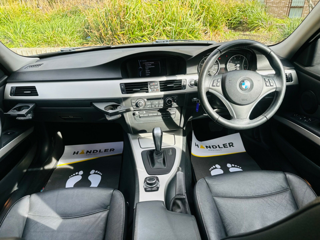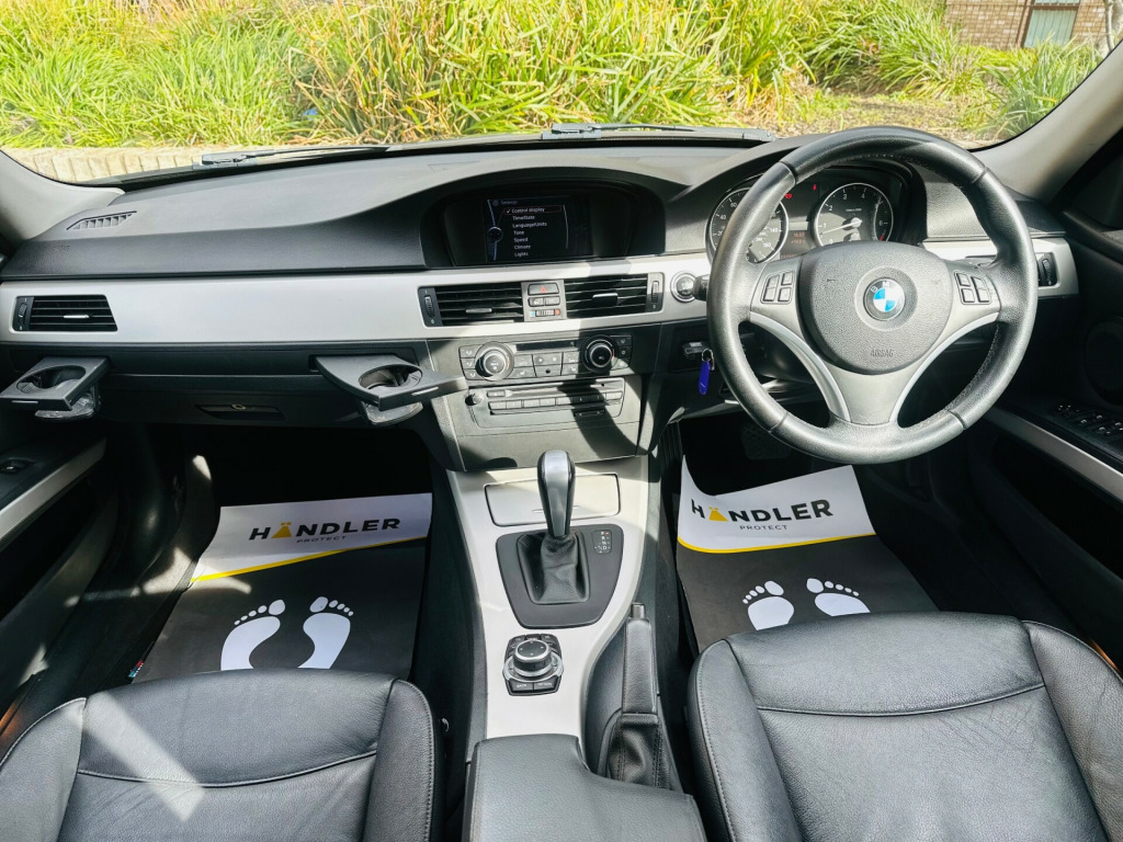 uetooth telephone preparation with telematics, bmw connecteddrive - assist, bmw connecteddrive - online, brake force display, brake pad wear indicator warning light, check control system, digital clock, door/boot open warning light, lights on warning, on board computer, operation warning of all exterior lights, outside temperature display, push button starter, run flat tyre indicator, service interval indicator, 'guide me home' headlamps, 2 speed adjustable intermittent wipers with wash/wipe function, automatic headlight beam throw control, black roof mouldings, body colour bumpers, body colour electric adjustable door mirrors, clear indicator lenses, dynamic brake lights, electric front and rear windows with one touch/convenient open/close function, electrochromic automatic anti-dazzle rear view mirror with front reading light, front fog lights/heated windscreen washer jets/heated door mirrors, front ornamental grille with black kidney bars and chrome bezel, green tinted heat insulating glass, heated rear window with automatic switch off, 2 x folding cupholders in instrument panel above glovebox, 4 foldable grab handles - rear with clothes hook, 4 lashing points to secure luggage, automatic interior light soft on/soft off system, driver and passenger sunvisors with vanity mirrors + slide cover, dual zone automatic air conditioning, front and rear door armrests, front and rear velour floor mats, front door pockets, front passenger isofix child seat attachment, glovebox light, height adjustable front headrests, indirect front interior illumination - soft-light function, isofix system on outer rear seats, leather gear knob, leather handbrake grip, lockable glovebox, luggage compartment lighting, multi-function controls for steering wheel, reach + rake adjustable steering column, rear centre armrest, rear storage compartment in multifunction centre console with sliding cover, toolkit located in luggage compartment, interior lights pack - 3 series saloon - se/ed/m sport, 3 point inertia reel seatbelts + pre-tensioners on outer rear seats, abs, anti whiplash head restraints, cornering brake control (cbc), driver and passenger airbags, dsc - dynamic stability control, dynamic brake control, dynamic traction control - dtc, electronic brake force distribution, front and rear head airbags, front seat side impact airbags, front seatbelt pretensioners + load limiters, rear child proof door locks, three 3 point rear seatbelts, twin horns, warning triangle and first aid kit, automatic drive away locking facility, central locking fuel filler cap, centre lock switch, electronic immobiliser, remote central locking, remote control alarm, run-flat tyres, 17'' Alloys