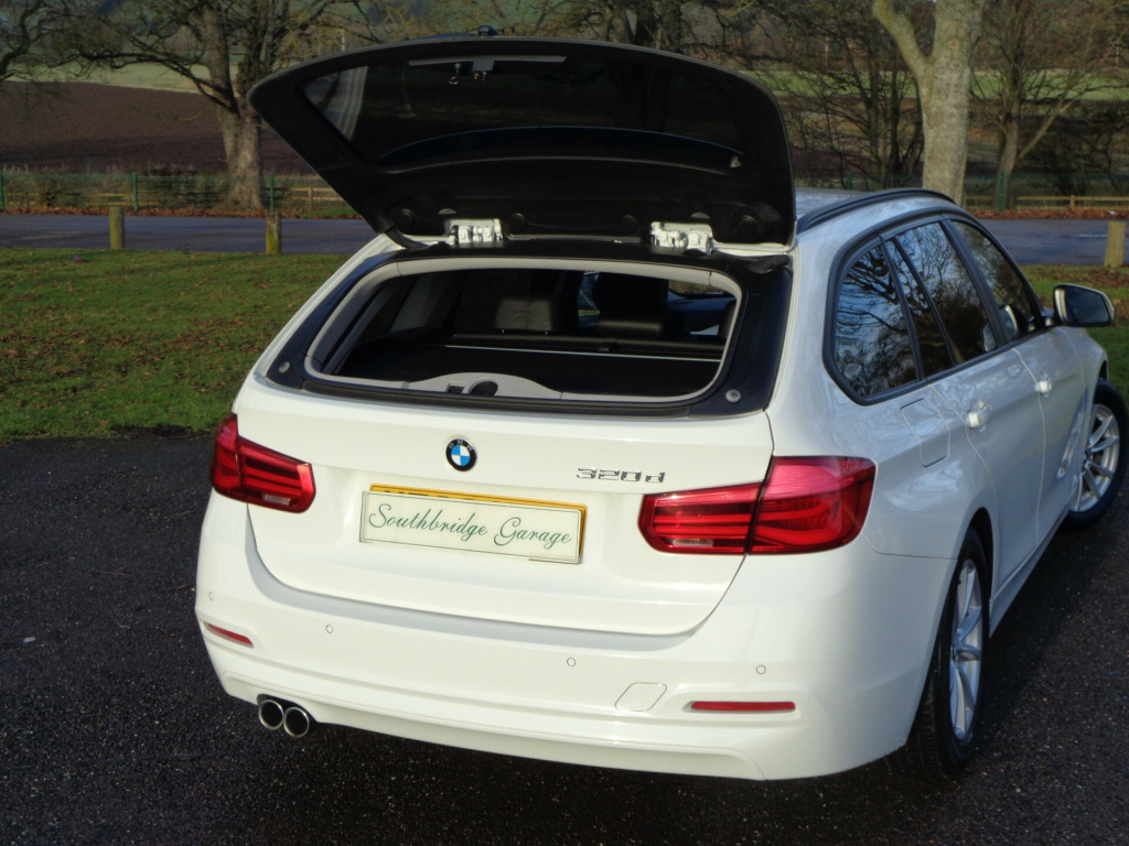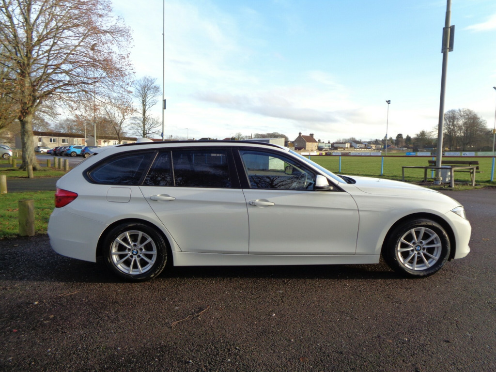 ONLY £20 for road tax on this ultra efficient BMW 3 Series Touring. Loads of kit too with Heated Leather Front Seats, Satellite Navigation and Bluetooth to name a few. Give us a call on 01334 656746 if you would like to come and see it or, if you are not already on it, click the link through to our website for many more photos. Part exchange welcome. Southbridge Garage, Cupar, KY15 5HY. uetooth connection, full leather, rain-sensing wipers, satellite navigation, usb/ipod interface, adjustable steering column, cruise control, multi-function steering wheel, power steering, rear parking sensor, stability control, traction control, abs, child locks, isofix child seat anchor points, alarm, immobiliser, privacy glass, remote central locking, electric front windows, electric mirrors, electric tailgate, rear electric windows, auxiliary input socket, digital radio, oem sound system, radio/cd, steering wheel audio controls, heated front seat, height adjustable drivers seat, folding rear seats, rear armrest, rear headrests, push button start, alloy wheels, body coloured bumpers, front fog lights, rear wash/wipe, roof rails, solid paint, tyre repair kit, lez compliant