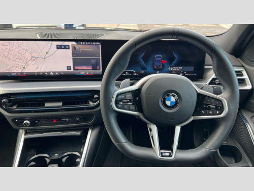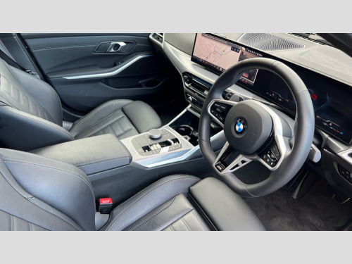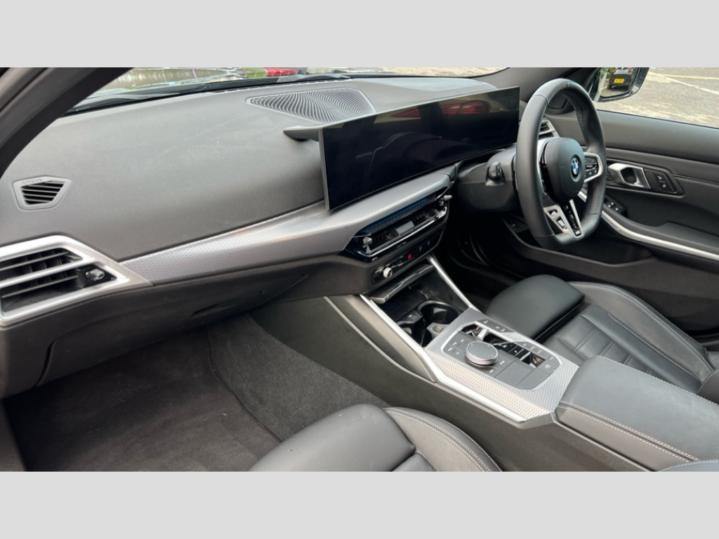 BMW 3 Series 320i M Sport 4dr Step Auto Active guard plus, Attentiveness assist, Automatic Start/stop button, Bluetooth Wi-Fi interface, BMW iDrive, BMW Teleservices, ConnectedDrive Services - last state call, Live cockpit plus with Navigation + 12.3" instrument display + 14.9" display, Intelligent voice assist, 2 USB, 4G LTE connect, Oil sensor for level and grade, Personal e-SIM, Shifting point display, Variable sport steering, Double joint spring strut front axle, Fuel tank breather system, Steptronic Sport automatic transmission with steering wheel mounted gearshift paddles launch control and xtreme drive lever control, DAB tuner, 3rd brake light, Auto dimming rear view mirror, Automatic headlight beam throw control with load dependent regulating reaction, dynamic compensation of braking dive and acceleration squat, Bi-LED Low and high beam headlights, BMW emblem, engine compartment lid and tailgate, Body colour roof fin, Door sill strips, Electric windows - front and rear, with open/close fingertip control, anti-trap facility and comfort closing, Fading support, Folding wing mirror with auto dimming, Follow me home headlight function, Front and rear bumper system with replaceable deformation elements, Front apron plastic in body colour, Fuel filler flap - right rear in body colour, Heat protection glazing on front windows and windscreen, Heated washer jets, High gloss chrome kidney frame with high gloss black kidney struts, LED daytime running lights, LED rear lights, LED turn indicator, Licence plate panel integrated into front bumper and tailgate, M high gloss shadow line exterior trim, Matt black B-pillar finsher, Matt black window recess cover, Model designation on right side of tailgate, One piece front bumper cover including towing eye cover in body colour, Rain sensor with automatic headlight activation, Rear boot, Rear side wing doors, Reversing lights, Side frame decorative moulding black matt, Trailer stabilisation logic, Visible exhaust tailpipe finisher, Welcome lights in interior and door handle area, 12V power socket in front storage compartment, 2 front cupholder in centre console with clamping elements and matt black inlay, 3 seat bench in 2nd row, 3 spoke M Sport multifunction flat bottom leather steering wheel, 3 zone automatic air conditioning, 40:20:40 split folding rear seat with loading system, Anthracite headlining, Armrest integrated in front and rear door trim + front centre console armrest, BMW ID, Cruise control operation in steering wheel, Driving experience mode switch, Folding rear centre armrest with 2 cupholders, Front and rear headrests, Front and rear velour floor mats, Front reading light, Heated front seats, Height adjustable mechanically and infinitely variable steering column, Illuminated armrest storage compartment, Illuminated glove compartment, Illuminated luggage compartment, Lashing eyelets in luggage compartment, Single front passenger seat, Sunvisors with illuminated vanity mirrors and ticket pocket, Toolkit located in luggage compartment, Connected pack professional - 3 Series Saloon/Touring, Interior and exterior mirror pack - 3 Series Touring/Saloon, M sport exterior styling pack - 3 Series Saloon/Touring, Parking assistant pack - 3 Series, 3x3 point rear seatbelts, BMW emergency call, Child locks on rear doors, Crash sensor activating of airbags, Unlocking doors, hazard warning lights, interior light, safety battery terminal, Drive-off assistant, Driver and front passenger with seat occupancy detection for driver's and passenger side, Driver and passenger side airbags, body protection at side and airbags deploy from seat backrests, Dry braking, Dynamic brake control, Dynamic stability control + (DSC+) - Anti-lock Braking System (ABS) with brake assist and cornering brake control + Automatic Stability Control (ASC), Dynamic Traction Control - DTC, Electric parking brake including automatic hold function and automatic release of the parking brake when driving off, Electronic differential lock control (EDLC), Front airbag deactivation, Front airbags for driver and front passenger, Head airbags in 1st and 2nd row, head protection at side, curtain airbags open from headliner above 1st and 2nd row, Plastic fuel tank, Side impact protection, Tyre pressure sensors, Ventilated front and rear disc brakes, Warning triangle and first aid kit, Alarm system, Centre lock switch, Closing system with central locking, Electronic vehicle immobiliser, Locking wheel bolts, Tyre repair kit