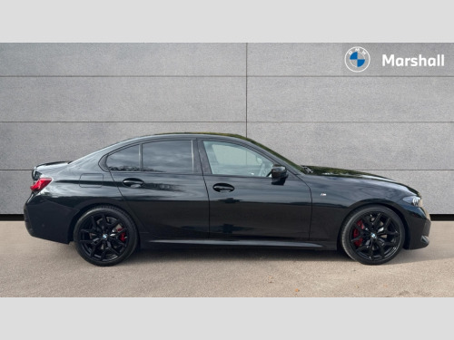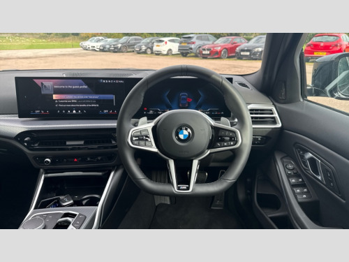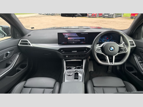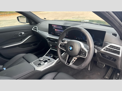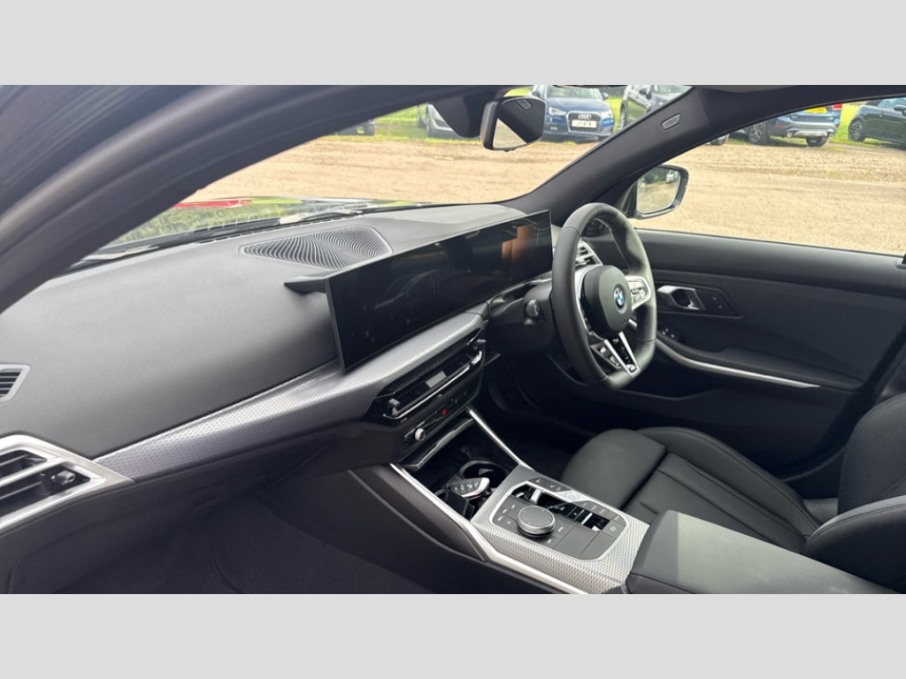 BMW 3 Series 320i M Sport 4dr Step Auto Active guard plus, Attentiveness assist, Automatic Start/stop button, Bluetooth Wi-Fi interface, BMW iDrive, BMW Teleservices, ConnectedDrive Services - last state call, Live cockpit plus with Navigation + 12.3" instrument display + 14.9" display, Intelligent voice assist, 2 USB, 4G LTE connect, Oil sensor for level and grade, Personal e-SIM, Shifting point display, Variable sport steering, Double joint spring strut front axle, Fuel tank breather system, Steptronic Sport automatic transmission with steering wheel mounted gearshift paddles launch control and xtreme drive lever control, DAB tuner, 3rd brake light, Adaptive LED Headlights, Auto dimming rear view mirror, Automated High beam assist, Automatic headlight beam throw control with load dependent regulating reaction, dynamic compensation of braking dive and acceleration squat, Bi-LED Low and high beam headlights, BMW emblem, engine compartment lid and tailgate, BMW individual lights shadow line, BMW M Individual high gloss shadow line extended contents - High gloss black radiator grill frame and struts, black chrome visible exhaust tailpipe, Body colour roof fin, Door sill strips, Electric windows - front and rear, with open/close fingertip control, anti-trap facility and comfort closing, Fading support, Folding wing mirror with auto dimming, Follow me home headlight function, Front and rear bumper system with replaceable deformation elements, Front apron plastic in body colour, Fuel filler flap - right rear in body colour, Heat protection glazing on front windows and windscreen, Heated washer jets, LED daytime running lights, LED rear lights, LED turn indicator, Licence plate panel integrated into front bumper and tailgate, M high gloss shadow line exterior trim, M Sport spoiler in black sapphire, Matt black B-pillar finsher, Matt black window recess cover, Model designation on right side of tailgate, One piece front bumper cover including towing eye cover in body colour, Rain sensor with automatic headlight activation, Rear boot, Rear side wing doors, Reversing lights, Side frame decorative moulding black matt, Trailer stabilisation logic, Welcome lights in interior and door handle area, 12V power socket in front storage compartment, 2 front cupholder in centre console with clamping elements and matt black inlay, 3 seat bench in 2nd row, 3 spoke M Sport multifunction flat bottom leather steering wheel, 3 zone automatic air conditioning, 40:20:40 split folding rear seat with loading system, Anthracite headlining, Armrest integrated in front and rear door trim + front centre console armrest, BMW ID, Cruise control operation in steering wheel, Driving experience mode switch, Folding rear centre armrest with 2 cupholders, Front and rear headrests, Front and rear velour floor mats, Front reading light, Heated front seats, Height adjustable mechanically and infinitely variable steering column, Illuminated armrest storage compartment, Illuminated glove compartment, Illuminated luggage compartment, Lashing eyelets in luggage compartment, Single front passenger seat, Sunvisors with illuminated vanity mirrors and ticket pocket, Toolkit located in luggage compartment, Connected pack professional - 3 Series Saloon/Touring, Interior and exterior mirror pack - 3 Series Touring/Saloon, M sport exterior styling pack - 3 Series Saloon/Touring, Parking assistant pack - 3 Series, 3x3 point rear seatbelts, BMW emergency call, Child locks on rear doors, Crash sensor activating of airbags, Unlocking doors, hazard warning lights, interior light, safety battery terminal, Drive-off assistant, Driver and front passenger with seat occupancy detection for driver's and passenger side, Driver and passenger side airbags, body protection at side and airbags deploy from seat backrests, Dry braking, Dynamic brake control, Dynamic stability control + (DSC+) - Anti-lock Braking System (ABS) with brake assist and cornering brake control + Automatic Stability Control (ASC), Dynamic Traction Control - DTC, Electric parking brake including automatic hold function and automatic release of the parking brake when driving off, Electronic differential lock control (EDLC), Front airbag deactivation, Front airbags for driver and front passenger, Head airbags in 1st and 2nd row, head protection at side, curtain airbags open from headliner above 1st and 2nd row, M Sport brakes with red calipers, M sport seatbelt, Plastic fuel tank, Side impact protection, Tyre pressure sensors, Warning triangle and first aid kit, Alarm system, Centre lock switch, Closing system with central locking, Electronic vehicle immobiliser, Locking wheel bolts, Tyre repair kit