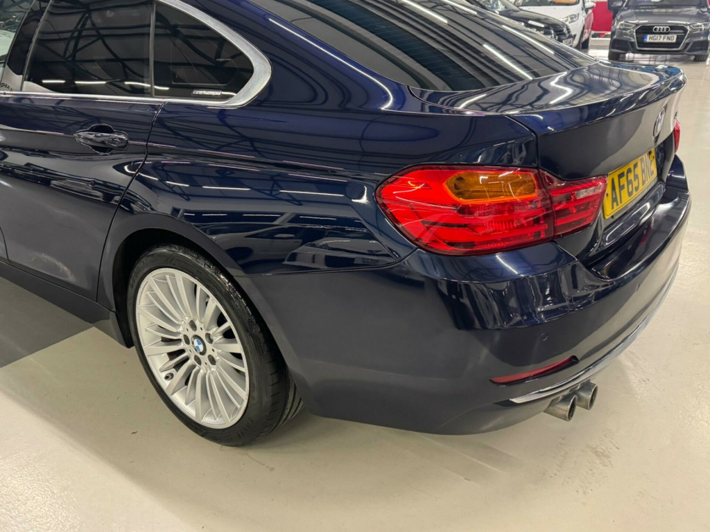 This 2015 BMW 4 Series Gran Coupe 420d Luxury is a prime example of refined motoring, having been cherished by only two owners. It boasts a powerful yet efficient 2.0L Euro 6 diesel engine, delivering an impressive 0-62mph in just 7.3 seconds. The Luxury trim enhances the driving experience with desirable features such as a glass sunroof, front and rear Park Distance Control for effortless manoeuvring, and heated front seats for added comfort. Xenon headlights provide excellent visibility, ensuring a confident drive in all conditions.Beyond its impressive performance and comfort features, this 4 Series Gran Coupe offers exceptional practicality with its large boot space, making it ideal for both daily errands and longer journeys. The combination of its swift acceleration, sophisticated Luxury trim, and the added benefit of only two previous owners clearly sets this vehicle apart from others in its class, offering a compelling package for any discerning driver. ass sunroof, enhanced bluetooth telephone preparation with usb audio interface and voice control, door sill finishers - bmw individual designation, dakota leather with exclusive stitching - black with black interior, 12v power socket - front, 12v power socket - passenger footwell, 18in alloy wheels - multi spoke - 416, 20gb memory, abs - anti lock braking system, asc - automatic stability control, air breather - chrome, air conditioning - automatic with two-zone control, air inlet - front with chrome finisher, airbags - driver, airbags - front side, airbags - passenger, airbags - passenger deactivation, alarm system thatcham 1 with remote control, ambient lighting - switchable bmw classic orange - cold white - led, armrest - front with storage compartment, armrest - rear centre, automatically dimming rear view mirror, auxiliary input, bmw apps interface, bmw connecteddrive online services, bmw emergency call, bmw professional radio - single cd and mp3, bmw teleservices, bluetooth hands free with usb audio interface, bottle holders - front door storage compartments, brake pad wear indicator, bumpers - body colour, cbc - cornering brake control, central locking - remote, check control warning system, child seat isofix attachment - rear, comfort go keyless engine start, crash sensor - activating central locking release, cruise control with brake function, cup holders - front x2, cup holders - rear armrest, dab digital radio, dbc - dynamic brake control, dsc - dynamic stability control - stabilises the vehicle in extreme situations - controls traction, dtc - dynamic traction control, daytime running lights, display - 8.8in colour screen, door handles - body colour, door mirrors - body coloured housing, door mirrors - electric and heated, door sill finishers - luxury designation, drive performance control with eco pro - comfort and sport modes, dynamic brake lights, electric windows - front and rear with open-close fingertip control, electronic differential lock, exhaust tailpipes - dual left - with chrome finisher, extended lighting, exterior trim - chromeline, first aid kit, floor mats - velour, follow me home headlight function, front fog lights, full black panel display, handbrake lever - gear lever knob and gaiters in leather, head restraints - rear, headlights - automatic activation, headlights - washer system, heated windscreen washer jets, high level third brake light, hill start assist, information plus, interior trim - fineline anthracite wood, interior trim finisher - pearl chrome, kidney grille with chrome vertical slats, led tail lights, lights-on audio warning, luggage compartment - lashing eyes x2, media package - bmw professional, multifunction controls for steering wheel, navigation system - bmw professional multimedia, non smoker package, obc - on-board computer, optimum shift indicator, pdc - park distance control - front, pdc - park distance control - rear, rain sensor, real time traffic information, rear bumper with chrome finisher, remote services, run flat tyres, seat belt security check for driver, seats - 60-40 split folding rear, seats - front - manual height adjustment, seats - front heated, servotronic steering, shark fin aerial, side air inlets - highlighter in chrome, side impact protection, sport multi-function leather steering wheel - three spoke, sport seats - front, steering column with manual reach and rake adjustment, storage compartment - rear centre console, sun visors with vanity mirrors and ticket holder, tmc - traffic information, tpms - tyre pressure monitoring system, tailgate operation - powered, tool kit located in luggage compartment, trim designation deletion, warning triangle, windscreen with grey shade band, xenon headlights, idrive controller with shortcut buttons