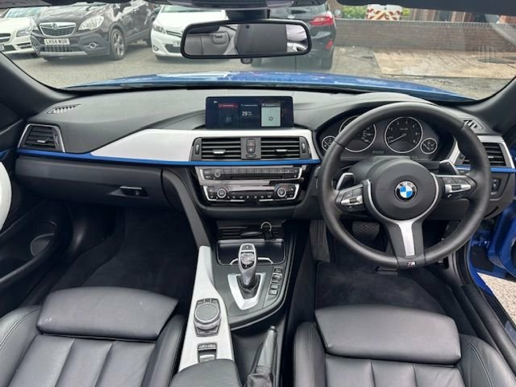 This stunning 2018 BMW 420d M-Sport Auto Convertible has to be the best spec, best value, best condition example you will find anywhere!!!! Presented in stunning Estoril blue with full black leather trim it has covered just 89,000 miles from new with just two previous owners and some of the best BMW service history you will see!!! it comes fitted with over £10,000 worth of extras including fully automatic gearbox with steering wheel mounted gear change, full factory Professional satellite navigation and Bluetooth phone prep, electric memory seats, cruise control with lane departure, heated seats, Air scarf, USB/Media interface, centre armrest, front and rear parking sensors with 360 degree camera and BMW Park assist(will park itself) auto lights and wipers, Xenon headlamps with LED Daytime running lights, newly refurbished diamond cut black/silver alloy wheels(cost £500!),electric folding and dimming exterior and interior mirrors, and full M-Sport styling, without doubt the best example you will find at this price and because of its age it is full ULEZ Compliant!! BMW Online services, BMW remote services, BMW Teleservices, Brake pad wear indicator warning light, Check control system, Door/boot open warning, Front/rear Parking distance control, iDrive controller and display with 6.5&q, Lights on warning, Oil temperature gauge, On board computer, Outside temperature display, Real time traffic information, Run flat indicator, Service interval indicator, Stop/start button, Central locking including fuel filler an, Drive away door locking, Electronic immobiliser, Remote control Thatcham category 1 alarm, Diesel particulate filter, Drive Performance Control, Electronic differential lock, Sports function on gearbox with steering, Extended lights package - 4