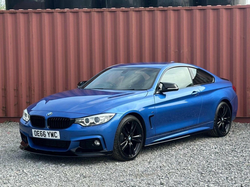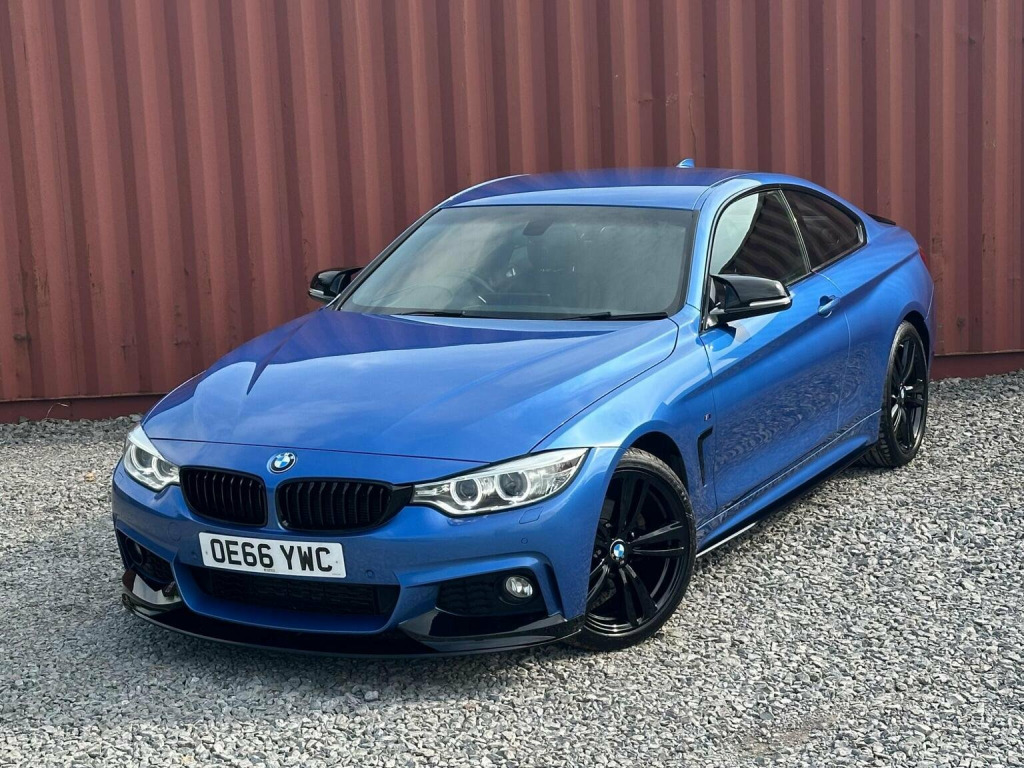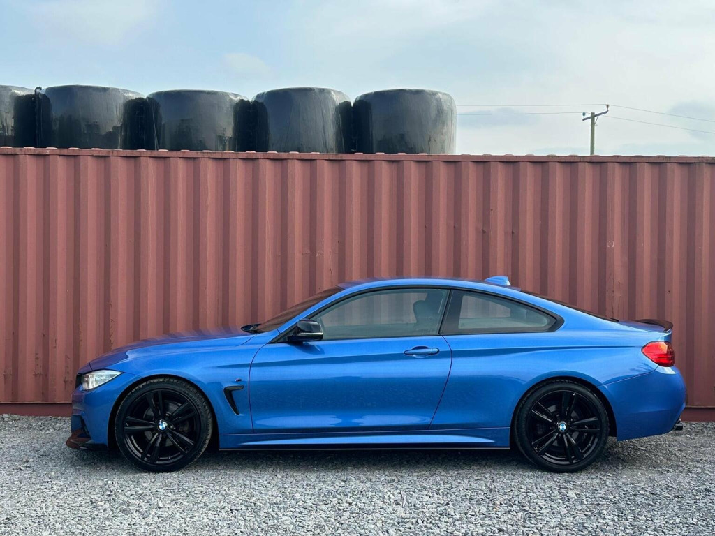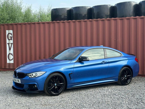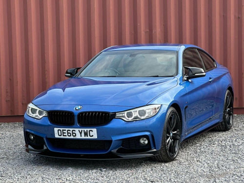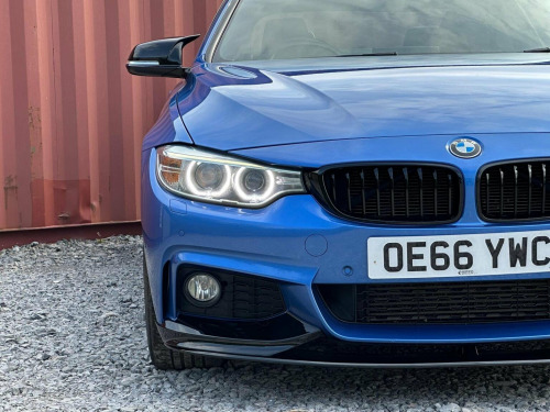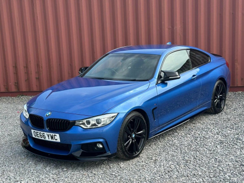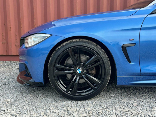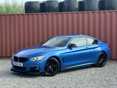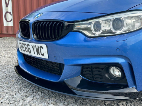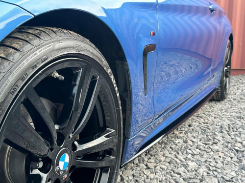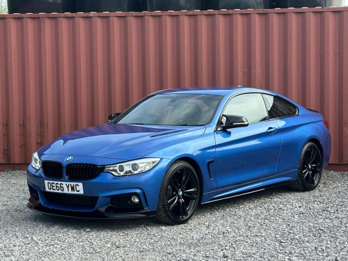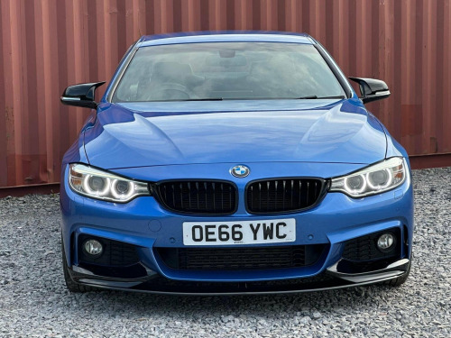 Specialist Cars are pleased to offer this stunning BMW 4 Series 2.0 420d M Sport. Presented in the beautiful Estoril Blue metallic with complimenting black Dakota leather interior. As you can see our 4 Series has undergone our Specialist Cars treatment - The 442M double spoke alloy wheels have been refurbished and powder coated in gloss black, full low line splitter kit, gloss black spoiler, gloss black M mirrors, gloss black kidney grills and gloss black M sport badges. We are reviving and keeping the car looking fresh with a two stage machine polish and locking in that shine with a coat of Fusso Soft99s legendary wax. , Boasting a magnificent service record and we will also service the car along with a new MOT ensuring all advisory notices (if any) will be completed. On the road the car is a pleasure to drive. The car is equipped with BMWs legendary 2.0 turbo diesel engine that comes with a healthy 187 BHP, this is mated to an impressive 8 speed ZF gearbox, giving this 4 Series M Sport a jaw dropping 0-62 time of 7.1 seconds. The interior is a lovely place to be, the seats are supportive, sporty and comfortable. All of the controls are neatly placed and are very easy to use. This car is also ultra low emission & clean air zone compliant. The car is just £35 to tax for the year and a claimed average of 65.7 miles to the gallon this 420d is a very cheap car to run!, Please visit our website for full details and the specification, we have taken pictures of the cars specification and special features. Examples like this one do not come around often, we have both keys and the supplying dealer book pack is present. 6 MONTHS PARTS AND LABOUR WARRANTY!, Thinking of financing this 4 Series? Please feel free to call one of our team and we will run a no obligation competitive finance quote for you through one of our several lenders.