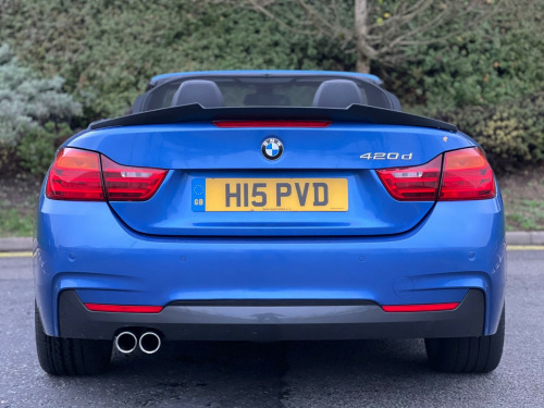 This 2015 BMW 4 Series 2.0 420d M Sport Auto Euro 6 (s/s) 2dr Convertible is currently available for £8,995 in Birmingham West Midlands with Diesel engine and Automatic gearbox. For more information or to arrange a viewing, click here to send us an email using form below.