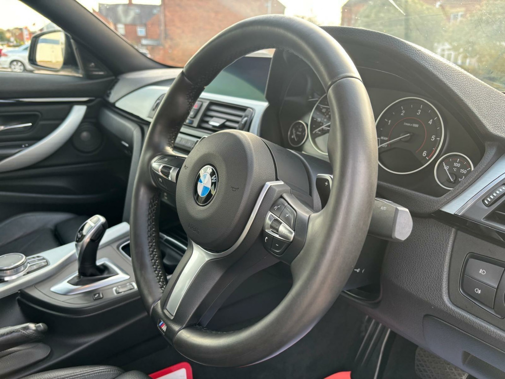 Mot till:01/12/2026, FULL BMW SERVICE HISTORY, led white side lights, cruise control , stop start air-conditioning automatic headlights front and rear fog light, multimedia connectivity aux USB Bluetooth, rear parking sensors, Boasting a full dealership service history and a clear vehicle history check, this 2017 BMW 4 Series 420d M Sport presents a superb example of refined motoring. This Euro 6 compliant model features a potent 2.0L diesel engine, paired with the sporty M Sport trim and 19in M Star Spoke alloy wheels. Inside, you'll appreciate the convenience of the Driver Comfort Package, including Comfort Access with Smart Opener for keyless entry and memory seats, alongside the impressive Harman Kardon loudspeaker system for an immersive audio experience. Power folding mirrors, memory seats, Experience the exceptional efficiency of this 420d M Sport, achieving an outstanding 66 mpg, which is significantly better than many similar vehicles. Its low CO2 emissions further enhance its appeal for cost conscious drivers. Enjoy brisk acceleration, reaching 0-62mph in a swift 7.1 seconds, demonstrating its dynamic capabilities. Furthermore, the generous boot space ensures you have ample room for luggage or shopping, making it a versatile choice for everyday use and longer journeys. stock code:131015, 110gbp doc fees applies, low finance rates available on our newer cars in house. Specification information is supplied by CAP,HPI and may vary to the actual car. DEAR FINANCE CUSTOMERS Our finance companies we use for you are FREE YES FREE for you to arrange via Cg Motorland's website.. we will then attach a £210 for an Rac warranty with it which can be also extended if required. IF you decide to arranged OUTSIDE of our website finance company. It is compulsory to pay there charges what ever they will charge you/usplus ours standard £320 which as part of a package BUT WE will ALSO give you as a bonus an Rac warranty with it which can be also extended if required. sport plus package, driver comfort package, seat adjustment - front electric with driver memory, loudspeaker system - harman kardon, m sport braking system, comfort access with smart opener, enhanced bluetooth telephone preparation with wireless charging, exterior mirrors - electrically folding with anti dazzle, sun protection glazing, extended storage, high-beam assistant, 19in alloy wheels - m double spoke style 704m - bi-colour orbit grey, interior trim - brushed aluminium with black high-gloss trim finisher, wifi hotspot preparation, dakota leather - black with black interior, active cruise control with stop and go function, lane change warning system, loudspeaker system - bmw advanced, 19in alloy wheels - m star spoke - 403m, active security package, 12v power socket in front centre console and passenger footwell, 18in alloy wheels - m double spoke - 400m, air breather - black high gloss, air conditioning - automatic with two-zone control, air conditioning and radio control panel in high gloss black, airbags, alarm system - thatcham 1 with remote control and engine immobiliser, ambient lighting - switchable bmw classic orange - cold white - led, armrest - front - folding with storage compartment, bmw connecteddrive online services, bmw emergency call, bmw professional navigation, bmw teleservices, battery safety cut off, bluetooth hands-free facility with usb audio interface and audio streaming, bottle holders integrated into door trim storage compartments - front - up to 1 litre, brake pad wear indicator - front and rear, bumper system front and rear - replaceable deformation elements for impacts up to 9mph, central locking switch - doors - fuel filler cap - luggage compartment, centre armrest for rear seats - include two cup holders, centre console - panel highlight in chrome, check control warning system for monitoring of lights and door-luggage compartment open warning, child seat isofix attachment - rear with passenger airbag deactivation, condition based service, crash sensor, cruise control with brake function, cup holders - two in front with sliding lid, dab digital radio, dsc - dynamic stability control plus, direction indicator - side repeaters - integrated in exterior mirrors, direction indicator lenses - led, door sill finishers - m designation, dynamic brake lights, eps - electric power steering, electric windows - front with open-close fingertip control - anti-trap facility and comfort closing function, exhaust tailpipes - dual left - with chrome finisher, extended lighting, exterior mirrors - heated - electrically adjustable, exterior parts in body colour, exterior trim - high-gloss shadowline, first aid kit and warning triangle, floor mats - velour, full black panel display, glove compartment, glove compartment - opener with chrome trim, handbrake lever - gear knob in leather, headlining - anthracite, heat protection glazing with green tint, high level third brake light, incorrect fuelling protection system, instrument cluster, integrated rear seat headrests - two, interior lighting - front centre over interior mirror with soft-light and rear centre, interior trim - aluminium hexagon trim finishers with estoril blue matt highlight, kidney grille - chrome with extra wide black - high gloss vertical slats, led front foglights, led headlights, led tailights, lights-on warning by audio warning signal when ignition is switched off, luggage compartment - lashing eyes, luggage compartment - light, m aerodynamic bodystyling, m sport instrument cluster, m sport multi-function leather steering wheel - three-spoke, m sport package, m sport suspension, media package - bmw professional, model designation, non smoker package, obc - on-board computer, oil sensor for level and grade - warning by check control system, optimum shift indicator, pdc - park distance control - front and rear, personal profile, rain sensor with automatic headlight activation, real time traffic information, rear suspension - five-link, remote control wi