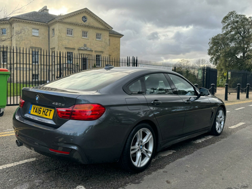 Boasting a full service history and having had only two owners, this 2016 BMW 4 Series Gran Coupe 420d M Sport presents a compelling proposition. This Euro 6 compliant model features a capable 2.0L diesel engine, paired with the sporty M Sport trim. You can drive away with confidence, as it comes with a 12 month MOT provided on purchase. Notable features include automatic activation Xenon headlights, dual zone climate control for personalised comfort, and rear parking sensors to aid manoeuvrability. Enjoy seamless connectivity with Bluetooth audio streaming, allowing you to enjoy your favourite music on the go.Experience the impressive performance of this 420d M Sport, capable of accelerating from 0 to 62mph in just 7.3 seconds. This swift acceleration, combined with its generous boot space, highlights how this BMW 4 Series Gran Coupe offers a superior blend of dynamic driving and practicality compared to other vehicles in its class. The combination of its efficient diesel engine, sporty M Sport enhancements, and thoughtful features makes this a well rounded and desirable car. v power socket - front, 12v power socket - passenger footwell, 18in alloy wheels - light m star spoke - 400m, 20gb memory, abs - anti lock braking system, asc - automatic stability control, air breather - black high gloss, air conditioning - automatic with two-zone control, air conditioning and radio control panel in high gloss black, airbags - driver, airbags - front its head, airbags - front side, airbags - passenger, airbags - passenger deactivation, alarm system thatcham 1 with remote control, ambient lighting - switchable bmw classic orange - cold white - led, armrest - front with storage compartment, armrest - rear centre, auto locking, automatically dimming rear view mirror, auxiliary input, bmw apps interface, bmw connecteddrive online services, bmw emergency call, bmw professional radio - single cd and mp3, bmw teleservices, battery safety cut off, bluetooth - audio streaming - with compatible devices, bluetooth hands free with usb audio interface, bottle holders - front door storage compartments, brake assist, brake drying, brake pad wear indicator, brake pre-tensioning, bumpers - body colour, cbc - cornering brake control, central locking - remote, central locking switch, check control warning system, child seat isofix attachment - rear, crash sensor - activating central locking release, cruise control with brake function, cup holders - front x2, cup holders - rear x2, dab digital radio, dbc - dynamic brake control, dsc - dynamic stability control - stabilises the vehicle in extreme situations - controls traction, dtc - dynamic traction control, daytime running lights, display - 8.8in colour screen, door handles - body colour, door mirrors - body coloured housing, door mirrors - electric and heated, door mirrors - integrated indicator side repeaters, door sill finishers - m designation, drive performance control - eco pro - comfort - sport and sport plus, dynamic brake lights, electric windows - front and rear with open-close fingertip control, electronic differential lock, electronic engine immobiliser, exhaust tailpipes - dual left - with chrome finisher, extended lighting, exterior trim - high-gloss shadowline, first aid kit, floor mats - velour, follow me home headlight function, front fog lights, full black panel display, glove compartment, glove compartment - opener with chrome trim, handbrake - leather, head restraints - rear, headlights - automatic activation, headlights - led eyebrow, headlights - washer system, headlining - anthracite, heated windscreen washer jets, high level third brake light, hill start assist, illuminated led corona rings, incorrect fuelling protection system, indicator lenses - clear, information plus, interior lighting - front and rear centre, interior trim - aluminium hexagon trim finishers with estoril blue matt highlight, kidney grille - chrome extra-wide high-gloss black vertical slats, led tail lights, lights-on audio warning, luggage compartment - lashing eyes x2, luggage compartment - light, m aerodynamic bodystyling, m sport instrument cluster, m sport package, m sport suspension, media package - bmw professional, multifunction controls for steering wheel, navigation system - bmw professional multimedia, non smoker package, obc - on-board computer, optimum shift indicator, outside temperature display, pdc - park distance control - front, pdc - park distance control - rear, personal profile, rain sensor, real time traffic information, rear fog light, remote control with integrated key with insert in blue, remote services, roof mouldings - body colour, run flat tyres, seat belt security check for driver, seats - 60-40 split folding rear, seats - front - manual height adjustment, seats - front heated, servotronic steering, shark fin aerial, side exterior m designation badges, side impact protection, speakers x6, sport seats - front, start-stop button with comfort go keyless engine start, steering column with manual reach and rake adjustment, steering wheel - leather - m sport, storage compartment - rear centre console, sun visors with vanity mirrors and ticket holder, tmc - traffic information, tpms - tyre pressure monitoring system, tailgate operation - powered, tool kit located in luggage compartment, usb audio interface, warning triangle, welcome light, windows - heat insulated green tinted, windscreen with grey shade band, xenon headlights, idrive controller with shortcut buttons, dakota leather - black with black interior