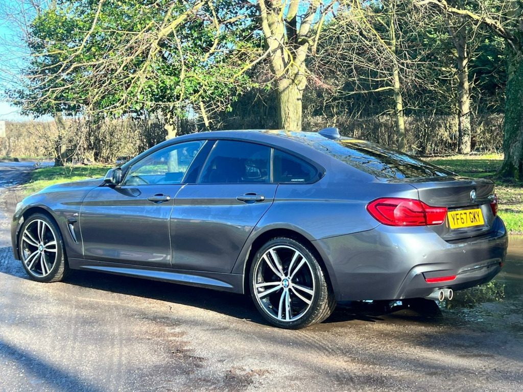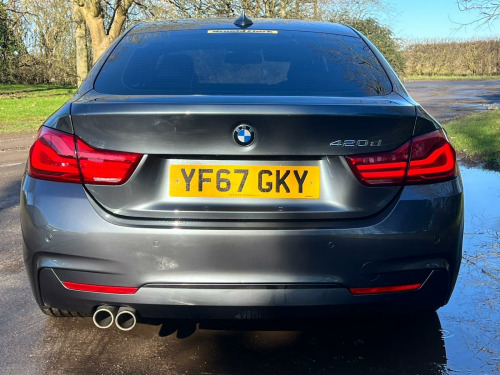 This 2017 BMW 4 Series Gran Coupe 420d M Sport offers a compelling blend of performance and practicality. Powered by a 2.0L Euro 6 diesel engine, this M Sport trim vehicle delivers an impressive 0-62mph acceleration in just 7.3 seconds. It comes equipped with a rain sensor that automatically activates the headlights, ensuring visibility in changing conditions. For comfort, it features automatic two zone climate control and seat heating for both the driver and front passenger. Connectivity is enhanced with Bluetooth hands-free facility, USB audio interface, and audio streaming, while LED headlights provide excellent illumination.The spacious boot offers ample room for luggage or shopping, making this Gran Coupe a versatile choice. The inclusion of features like automatic headlights and climate control demonstrates a higher level of specification compared to many similar vehicles. The responsive acceleration and efficient diesel engine further enhance its appeal, providing a dynamic yet economical driving experience., v power socket in front centre console and passenger footwell, 18in alloy wheels - m double spoke - 400m, air breather - black high gloss, air conditioning - automatic with two-zone control, air conditioning and radio control panel in high gloss black, airbags, alarm system - thatcham 1 with remote control and engine immobiliser, ambient lighting - switchable bmw classic orange - cold white - led, armrest - front - folding with storage compartment, bmw connecteddrive online services, bmw emergency call, bmw professional navigation, bmw teleservices, battery safety cut off, bluetooth hands-free facility with usb audio interface and audio streaming, bottle holders integrated into door trim storage compartments - front - up to 1 litre, brake pad wear indicator - front and rear, bumper system front and rear - replaceable deformation elements for impacts up to 9mph, central locking switch - doors - fuel filler cap - luggage compartment, centre armrest for rear seats - include two cup holders, centre console - panel highlight in chrome, check control warning system for monitoring of lights and door-luggage compartment open warning, child seat isofix attachment - rear with passenger airbag deactivation, condition based service, crash sensor, cruise control with brake function, cup holders - two in front with sliding lid, dab digital radio, dsc - dynamic stability control plus, direction indicator - side repeaters - integrated in exterior mirrors, direction indicator lenses - led, door sill finishers - m designation, dynamic brake lights, eps - electric power steering, electric windows - front with open-close fingertip control - anti-trap facility and comfort closing function, exhaust tailpipes - dual left - with chrome finisher, extended lighting, exterior mirrors - heated - electrically adjustable, exterior parts in body colour, exterior trim - high-gloss shadowline, first aid kit and warning triangle, floor mats - velour, full black panel display, glove compartment, glove compartment - opener with chrome trim, handbrake lever - gear knob in leather, headlining - anthracite, heat protection glazing with green tint, high level third brake light, incorrect fuelling protection system, instrument cluster, interior lighting - front centre over interior mirror with soft-light and rear centre, interior trim - aluminium hexagon trim finishers with estoril blue matt highlight, kidney grille - chrome with extra wide black - high gloss vertical slats, led front foglights, led headlights, led tailights, lights-on warning by audio warning signal when ignition is switched off, luggage compartment - lashing eyes, luggage compartment - light, m aerodynamic bodystyling, m sport instrument cluster, m sport multi-function leather steering wheel - three-spoke, m sport package, m sport suspension, media package - bmw professional, model designation, non smoker package, obc - on-board computer, oil sensor for level and grade - warning by check control system, optimum shift indicator, pdc - park distance control - front and rear, personal profile, rain sensor with automatic headlight activation, real time traffic information, rear seat headrests - two, rear suspension - five-link, remote control with integrated key with insert in blue, run flat tyres, seat belt security check for driver, seat heating for driver and front passenger, seats - 60-40 split folding rear, servotronic steering, shark fin, side armrests - front and rear integrated into door trim, side exterior m designation badges, side impact protection, sport seats - front, start-stop button with comfort go keyless engine start and auto start-stop deactivation button, steering column with manual reach and rake adjustment, storage compartment in rear centre console, sun visors with vanity mirrors and ticket holder, suspension - front aluminium, tailgate operation - automatic, three-point seat belts - all seats, toolkit located in luggage compartment, twin horns, tyre pressure monitor with a three-level warning strategy, tyres - reduced rolling resistance, visible vin, welcome light, windscreen washer jets - heated, windscreen wipers - two-speed with adjustable intervals, windscreen with grey shade band, idrive controller - 8 favourite buttons, interior trim - aluminium carbon trim finishers with pearl chrome highlight, dakota leather - black with black interior, 19in alloy wheels - m double spoke style 704m, 19in alloy wheels - m double spoke style 704m - bi-colour orbit grey
