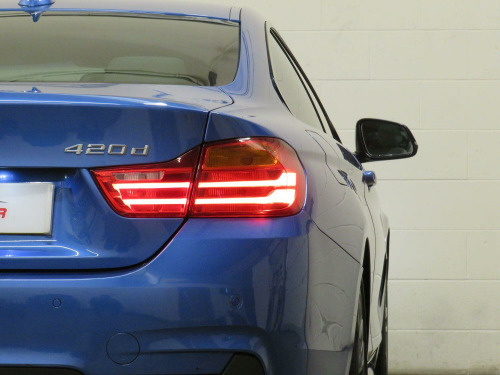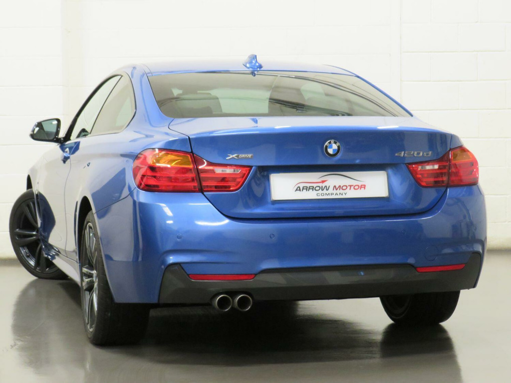 Arrow Motor Company are pleased to present this fantastic BMW 420d M-Sport xDrive Coupe, Finished in Estoril Blue Metallic Paintwork, with contrasting Oyster Dakota Leather. This car is equipped with BMWs award Winning 2.0-Litre Diesel Engine producing 187bhp whilst providing the most economical of drivers with a highly respectable 60.1mpg, with potential to rise to 68.9mpg in Extra-Urban environments. This particular example is complimented by a Comprehensive Service History. This vehicle also benefits from the following impressive list of features, , …↓ ↓ ↓ ↓ ↓ ↓ ↓ ↓ ↓ ↓ ↓ ↓ ↓ ↓ ↓ ↓ ↓ ↓ ↓ ↓ ↓…, , …Optional Extras…, , -M-Sport Plus Package consisting of 19-inch Alloy Wheels, M-Sport Braking System, Harman Kardon Surround Sound, and Rear Privacy Glass , -Seats - Front Electric Adjustment with Driver Memory, -Interior Trim - BMW Individual - Piano Black, -High-Beam Assistant, -Interior Comfort Package (Split Fold Rear Seats, Extended Storage, Sliding Armrest), , …Interior Features…, , Professional Media - Satellite Navigation | Keyless Start | Heated Front Sports Seats with Electric Width Adjustment | Fully electric Front Seats with Driver Memory Harman/Kardon Surround Sound System | Bluetooth with Media Streaming | Cruise Control With Brake Function | Speed Limiter | Air Conditioning With Dual Climate Control | DAB Digital Radio | CD Player | AUX & USB Connectivity | BMW Drive Performance Control (Eco Pro, Comfort, Sport, Sport+) | Sport Displays | Ambient Lighting - Switchable BMW Classic Orange / Cold White LED | SOS Emergency Button | Piano Black With Peral Chrom Dashboard Finisher | M Sport Multifunction Leather Steering Wheel With Paddle Shifters | Anthracite Headlining | Floor Mats Velour | Interior Mirror With Automatic-Dim | Tyre Pressure Monitor | Rear Armrest | M Designation Door Sills | ISOFIX | Intelligent Emergency Call | Central Locking | 2 Cupholders | 12V Plug |, , …Exterior Features…, , 19-inch Alloy Wheels Finished in Orbit Grey | M-Sport Braking System | Front & Rear Parking Sensors with iDrive Radar Display | Xenon Headlights with High Beam Assist| Gloss Black Side Air Breathers | Angel Eye Daytime Running Lights DRL | LED Taillights | Front Fog Lights | Electrically Adjustable Side Mirrors | M Aerodynamic Body-styling | M Sport Suspension | Side Mirror LED Indicators | Privacy Glass | Automatic Headlights | Automatic Window Wipers | Electric Boot Release | Shark Fin Aerial |