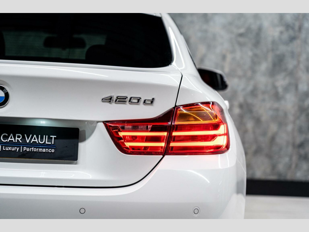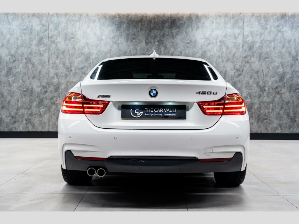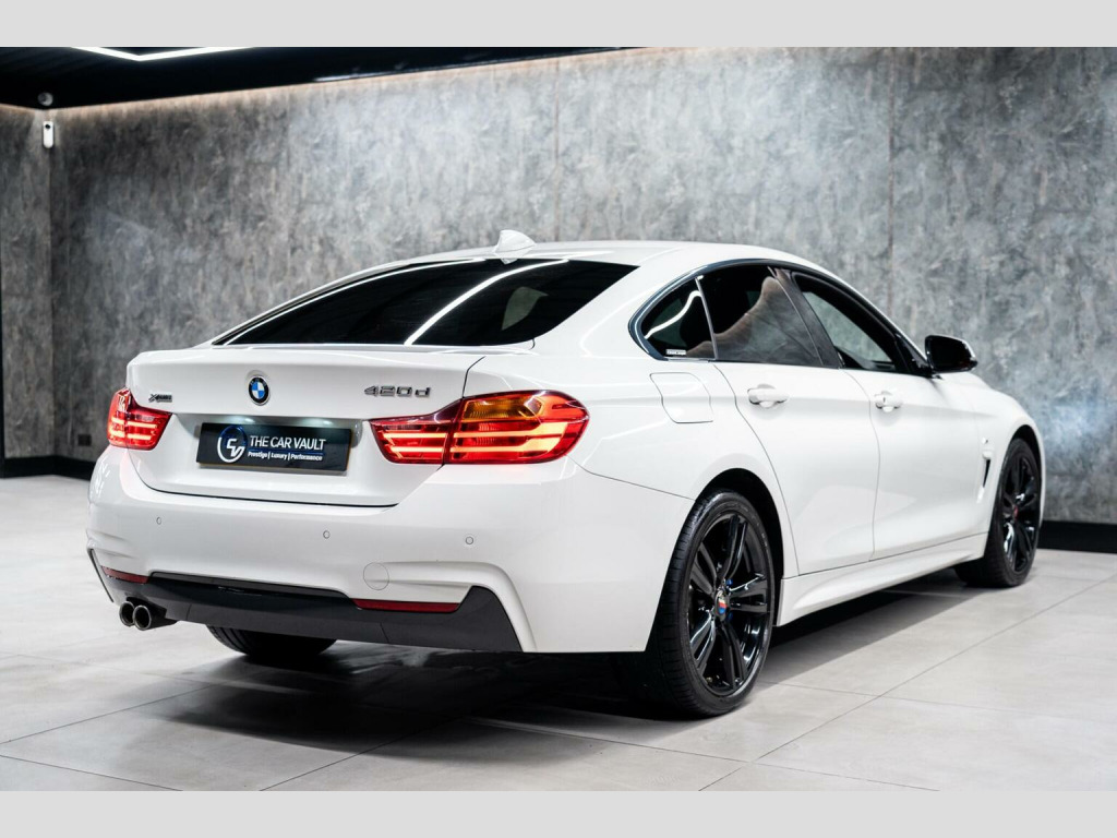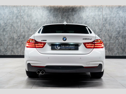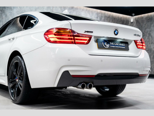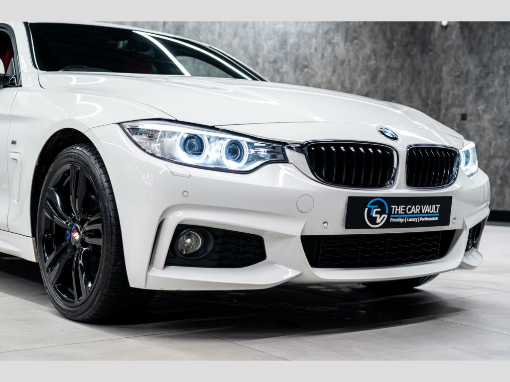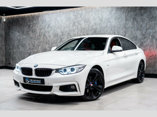 We At The Car Vault Are Proud To Offer This Stunning BMW 4 SERIES GRAN COUPE 2.0 420d M SPORT Auto xDrive EURO 6 Finished In ALPINE WHITE Paint, This BMW 4 SERIES GRAN COUPE Comes With The Following OPTIONAL SPECIFICATION : M Sport Plus Package, M Sport Braking System, Xenon Headlights, Headlight Wash, Sport Automatic Transmission, Comfort Go Keyless Engine Start, Drive Performance Control-ECO PRO/Comfort/Sport/Sport Plus, Harman Kardon Loudspeaker System, BMW Professional Media Package, 20GB Memory, Enhanced Bluetooth Telephone Preparation with USB Audio Interface and Voice Control, DAB Digital Radio, PDC/Park Distance Control-Front and Rear, Interior Comfort Package, Front Electric with Driver Memory Seat Adjustment, Coral Red with Black Highlight with Black Interior Dakota Leather, Front Heated Seats, Interior Trim-Brushed Aluminium with Black High Gloss Trim Finisher, Ambient Lighting-Switchable BMW Classic Orange/Cold White/LED, Front with Sliding Adjustment Armrest, Air Breather-Body Colour, Extended Storage, Door Mirrors-Folding and Automatically Dimming, Powered Tailgate Operation, Sun Protection Glazing, 19in Alloy Wheels-M Double Spoke Style 442M-Gloss Black