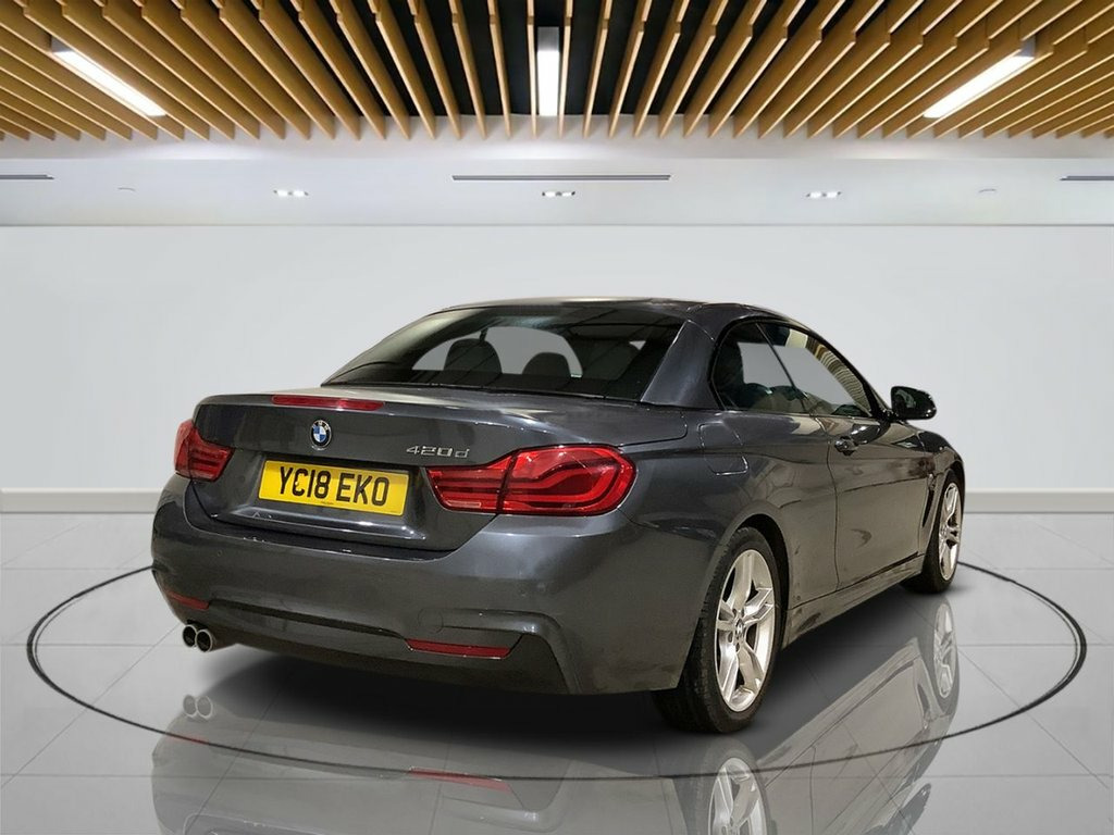 Why This BMW 4 Series Wins? This 2018 BMW 4 Series 420d M Sport Convertible delivers a refined open-top driving experience with the perfect balance of performance, comfort, and style. Powered by a smooth and efficient 2.0L Euro 6 diesel engine, it offers strong everyday usability while retaining the sporty character expected from the M Sport trim. Premium features include Park Distance Control with both front and rear sensors, ensuring confident manoeuvring, along with crisp LED headlights for excellent visibility. Inside, dual-zone automatic climate control keeps every journey comfortable, while the sought-after Convertible Comfort Package adds a heated steering wheel — a true benefit on cooler days or late-evening drives. The combination of the M Sport trim and the Comfort Package sets this 420d apart from similar convertibles, offering superior year-round usability and a more luxurious open-top experience. It blends a sporty aesthetic with practical convenience, making it an ideal choice for drivers who want style without sacrificing daily comfort. Your Peace of Mind? - Clear vehicle history check - Optional 3–36-month extendable warranties - Free 12-month AA roadside assistance - Fully prepared to showroom standard with its existing MOT and servicing, and we can organise any further MOT or service enhancements at your request. - Drive Away, Insurance Available - No hidden or extra costs, like admin fees Autotrader's 2024 Insights: Top 3 4 Serie 12V Power Socket in Front Centre Console, 6.5in Colour Display Screen, Access to BMW Connected Plus (12 Month S, BMW ConnectedDrive Online Services, BMW Emergency Call, BMW Professional Radio with Single CD Pl, BMW TeleServices, Bluetooth Hands-Free Facility with USB A, DAB Digital Radio, Full Black Panel Display, Media Package - BMW Professional, Real Time Traffic Information, Remote Services, Shark Fin, 18in Alloy Wheels - M Double Spoke - 400, Air Breather - Black High Gloss, Direction Indicator - Side Repeaters - I, Direction Indicator Lenses - LED, Electric Windows - Front with Open-Close, Exhaust Tailpipes - Dual Left - with Chr, Exterior Mirrors - Heated - Electrically, Exterior Parts